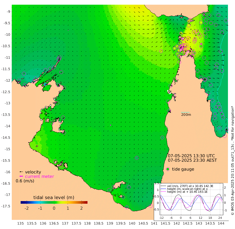 0cm/s -22T +3cm/s rms + 7cm/s -42T. ARA-GOC87 57m 20cm/s 18T +3cm/s rms + 2cm/s -2T. ARA-GOC87 60m 4cm/s 139T +2cm/s rms + 3cm/s 61T. ARA-GOC87 47m 14cm Daru 8cm Bobo Island -35cm Meer Island Barge -34cm Bramble Cay -8cm Unnamed Cay -8cm Pearce Cay -15cm Stephens Island -19cm Merrie England Shoals 7cm Mutacomal Reef -18cm Darnley Island Barge -42cm East Cay 1cm Yorke Island Barge 5cm Rennel Island 9cm Aureed Island 27cm Dungeness Reef 63cm Zagai Island 62cm Yam Island 60cm Dauan Island 58cm Saibai Island 57cm Phipi Reef 52cm Warrior Reef - West 66cm Mabuiag Island Barge 8cm Half Way Island 32cm Coconut Island 20cm Dugong Islet 47cm Poll Island 43cm Kirkcaldie Reef 80cm Suarji Island 45cm Sue Islet 31cm Hawkesbury Island 65cm Alert Patches 66cm Twin Island 46cm Badu Island 78cm St Pauls (Moa Island) 50cm Kubin (Moa Island) 64cm Ince Point 63cm Thursday Island 64cm Nardana Patches 48cm Turtle Head 55cm Round Island 36cm Goods Island 39cm Booby Island 42cm White Rocks Area 57cm Carpentaria 70cm Papou Point 64cm Bampfield Head 31cm Crab Island 35cm Red Wallis Island 36cm Packe Island 31cm Harrington Reef 45cm Herald Camp 26cm Sharp Point 38cm Red Island Point 67cm Possession Island 55cm Alpha Rock 48cm Frederick Point 21cm Wyborn Reef Light 29cm Tetley Island -24cm Triangle Reef 25cm Turtle Head Island -27cm Maclennan Cay -43cm Raine Island -9cm Mcsweeny Reef -19cm Collette Reef -34cm Shadwell Reef -23cm Hannibal Island -39cm Round Point 26cm Vrilya Point -34cm Cape Grenville -33cm Hicks Island -36cm Sir Charles Hardy Island -9cm Harvey Island -47cm Kay Reef -46cm Rocky Island -55cm Chapman Island -49cm Ham Reef -44cm Jubilee Reef -38cm Night Island -51cm Unnamed Reef No. 3 -47cm Morris Island -35cm 1st 3 Mile Opening -43cm Creech Reef -57cm Fife Island -62cm Eden Reef -51cm Stanley Island -57cm Normanby River -46cm Yabooma Island -46cm Hutchison River -43cm Elcho Island -43cm North West Crocodile Island -23cm Cape Wessel -45cm Stevens Island -26cm Guluwuru Island -51cm Hopeful Bay -26cm Auster Point -30cm Two Island Bay -63cm Cadell Strait -127cm Mallison Island -27cm Melville Bay (Gove Harbour) -23cm Truant Island -13cm Cape Arnhem -2cm Cape Grey -8cm Hawk Island 14cm Milner Bay (Groote Eylandt) 4cm Cape Beatrice 19cm West Island 27cm Centre Island -26cm Mornington Island -26cm West Wellesley Islands -40cm Bountiful Island -44cm Albert River Mouth -46cm Sweers Island -51cm Karumba -49cm Nassau River Offshore -42cm Christmas Creek -29cm Archer River -6cm Boyd Point -15cm Weipa (Humbug Point) 2cm Pennefather River 19cm Cullen Point