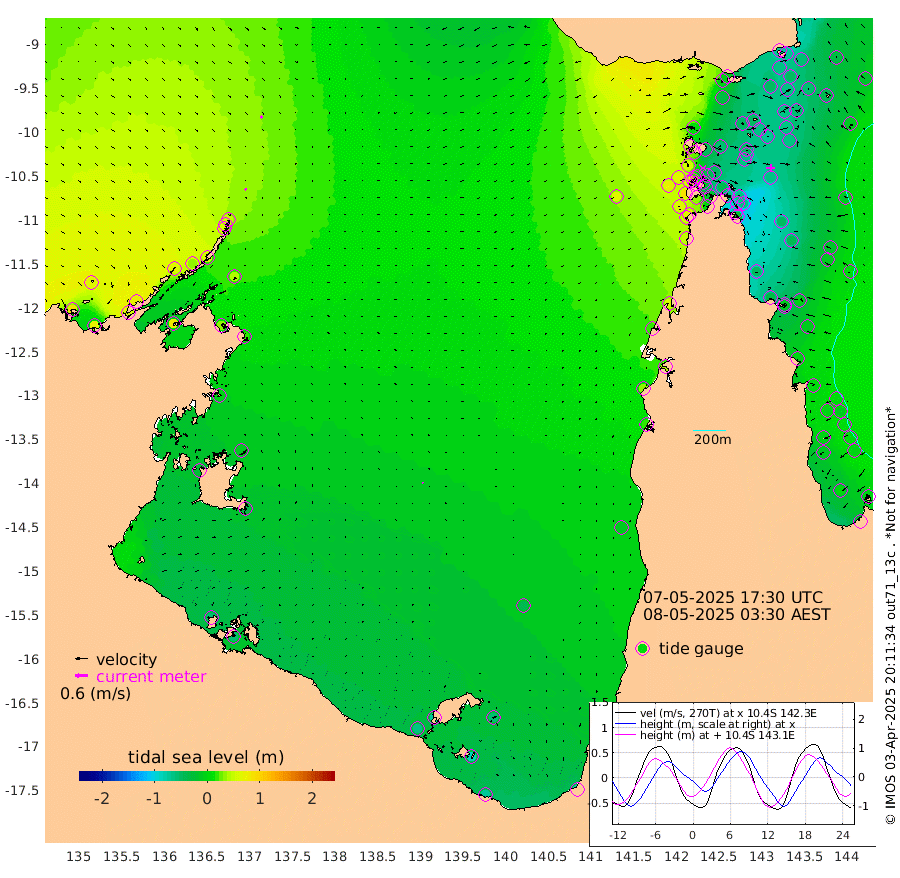 10cm/s 135T +3cm/s rms + 7cm/s -42T. ARA-GOC87 57m 4cm/s 139T +3cm/s rms + 2cm/s -2T. ARA-GOC87 60m 10cm/s 135T +2cm/s rms + 3cm/s 61T. ARA-GOC87 47m -68cm Daru -72cm Bobo Island -15cm Meer Island Barge -34cm Bramble Cay -50cm Unnamed Cay -67cm Pearce Cay -53cm Stephens Island -55cm Merrie England Shoals -64cm Mutacomal Reef -43cm Darnley Island Barge -21cm East Cay -54cm Yorke Island Barge -62cm Rennel Island -67cm Aureed Island -64cm Dungeness Reef -51cm Zagai Island -47cm Yam Island -3cm Dauan Island -1cm Saibai Island -31cm Phipi Reef -51cm Warrior Reef - West 3cm Mabuiag Island Barge -64cm Half Way Island -70cm Coconut Island -66cm Dugong Islet -62cm Poll Island -65cm Kirkcaldie Reef -58cm Suarji Island -52cm Sue Islet 58cm Hawkesbury Island -44cm Alert Patches -49cm Twin Island 43cm Badu Island -46cm St Pauls (Moa Island) 26cm Kubin (Moa Island) -21cm Ince Point -5cm Thursday Island -8cm Nardana Patches 17cm Turtle Head 41cm Round Island 54cm Goods Island 73cm Booby Island 62cm White Rocks Area 64cm Carpentaria -39cm Papou Point 87cm Bampfield Head 54cm Crab Island 62cm Red Wallis Island 34cm Packe Island -84cm Harrington Reef 73cm Herald Camp -20cm Sharp Point 5cm Red Island Point -18cm Possession Island -41cm Alpha Rock -62cm Frederick Point -62cm Wyborn Reef Light -62cm Tetley Island -16cm Triangle Reef -70cm Turtle Head Island -16cm Maclennan Cay 3cm Raine Island -52cm Mcsweeny Reef -42cm Collette Reef -12cm Shadwell Reef -47cm Hannibal Island -36cm Round Point 48cm Vrilya Point -28cm Cape Grenville -22cm Hicks Island -5cm Sir Charles Hardy Island -10cm Harvey Island -13cm Kay Reef -3cm Rocky Island 7cm Chapman Island 6cm Ham Reef 0cm Jubilee Reef -10cm Night Island 1cm Unnamed Reef No. 3 -6cm Morris Island 4cm 1st 3 Mile Opening -3cm Creech Reef -13cm Fife Island 1cm Eden Reef -3cm Stanley Island -11cm Normanby River 86cm Yabooma Island 74cm Hutchison River 68cm Elcho Island 62cm North West Crocodile Island 51cm Cape Wessel 64cm Stevens Island 37cm Guluwuru Island 67cm Hopeful Bay 54cm Auster Point 57cm Two Island Bay 55cm Cadell Strait 79cm Mallison Island 33cm Melville Bay (Gove Harbour) 39cm Truant Island 18cm Cape Arnhem -2cm Cape Grey -14cm Hawk Island -25cm Milner Bay (Groote Eylandt) -37cm Cape Beatrice -58cm West Island -59cm Centre Island -71cm Mornington Island -63cm West Wellesley Islands -55cm Bountiful Island -74cm Albert River Mouth -86cm Sweers Island -82cm Karumba -43cm Nassau River Offshore -12cm Christmas Creek 19cm Archer River 33cm Boyd Point 44cm Weipa (Humbug Point) 20cm Pennefather River 55cm Cullen Point