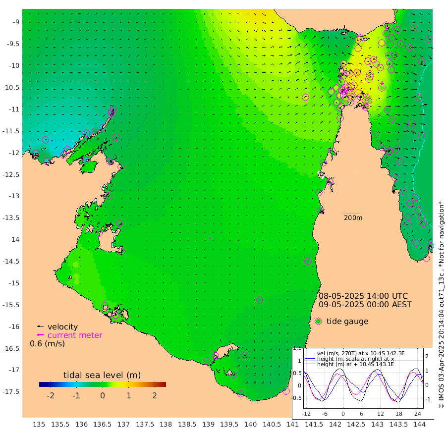 2cm/s -59T +3cm/s rms + 7cm/s -42T. ARA-GOC87 57m 14cm/s 27T +3cm/s rms + 2cm/s -2T. ARA-GOC87 60m 2cm/s -177T +2cm/s rms + 3cm/s 61T. ARA-GOC87 47m 22cm Daru 17cm Bobo Island -28cm Meer Island Barge -28cm Bramble Cay -2cm Unnamed Cay 2cm Pearce Cay -7cm Stephens Island -15cm Merrie England Shoals 13cm Mutacomal Reef -9cm Darnley Island Barge -34cm East Cay 11cm Yorke Island Barge 12cm Rennel Island 21cm Aureed Island 38cm Dungeness Reef 74cm Zagai Island 71cm Yam Island 75cm Dauan Island 74cm Saibai Island 71cm Phipi Reef 67cm Warrior Reef - West 72cm Mabuiag Island Barge 16cm Half Way Island 40cm Coconut Island 29cm Dugong Islet 56cm Poll Island 52cm Kirkcaldie Reef 90cm Suarji Island 55cm Sue Islet 29cm Hawkesbury Island 72cm Alert Patches 73cm Twin Island 48cm Badu Island 87cm St Pauls (Moa Island) 50cm Kubin (Moa Island) 70cm Ince Point 67cm Thursday Island 69cm Nardana Patches 52cm Turtle Head 50cm Round Island 36cm Goods Island 37cm Booby Island 39cm White Rocks Area 56cm Carpentaria 76cm Papou Point 56cm Bampfield Head 29cm Crab Island 34cm Red Wallis Island 37cm Packe Island 39cm Harrington Reef 42cm Herald Camp 30cm Sharp Point 42cm Red Island Point 69cm Possession Island 59cm Alpha Rock 56cm Frederick Point 25cm Wyborn Reef Light 33cm Tetley Island -16cm Triangle Reef 29cm Turtle Head Island -19cm Maclennan Cay -37cm Raine Island -1cm Mcsweeny Reef -11cm Collette Reef -27cm Shadwell Reef -16cm Hannibal Island -34cm Round Point 25cm Vrilya Point -28cm Cape Grenville -26cm Hicks Island -26cm Sir Charles Hardy Island -7cm Harvey Island -42cm Kay Reef -39cm Rocky Island -47cm Chapman Island -42cm Ham Reef -37cm Jubilee Reef -32cm Night Island -43cm Unnamed Reef No. 3 -41cm Morris Island -28cm 1st 3 Mile Opening -35cm Creech Reef -49cm Fife Island -54cm Eden Reef -45cm Stanley Island -51cm Normanby River -83cm Yabooma Island -85cm Hutchison River -79cm Elcho Island -78cm North West Crocodile Island -42cm Cape Wessel -78cm Stevens Island -35cm Guluwuru Island -81cm Hopeful Bay -50cm Auster Point -56cm Two Island Bay -87cm Cadell Strait -119cm Mallison Island -38cm Melville Bay (Gove Harbour) -35cm Truant Island -18cm Cape Arnhem -6cm Cape Grey -12cm Hawk Island 10cm Milner Bay (Groote Eylandt) 2cm Cape Beatrice 22cm West Island 29cm Centre Island -14cm Mornington Island -12cm West Wellesley Islands -26cm Bountiful Island -37cm Albert River Mouth -42cm Sweers Island -44cm Karumba -33cm Nassau River Offshore -24cm Christmas Creek -19cm Archer River 2cm Boyd Point -7cm Weipa (Humbug Point) 4cm Pennefather River 20cm Cullen Point