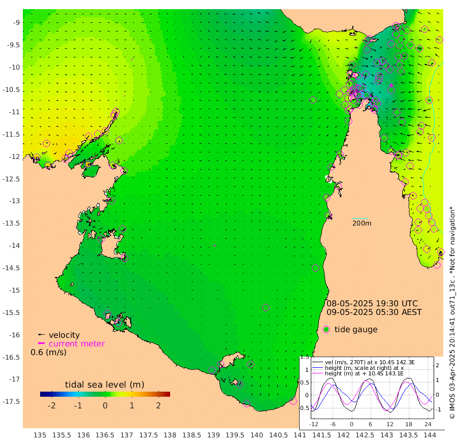 4cm/s 156T +3cm/s rms + 7cm/s -42T. ARA-GOC87 57m 11cm/s -179T +3cm/s rms + 2cm/s -2T. ARA-GOC87 60m 4cm/s 169T +2cm/s rms + 3cm/s 61T. ARA-GOC87 47m -17cm Daru -18cm Bobo Island 34cm Meer Island Barge 30cm Bramble Cay 11cm Unnamed Cay -8cm Pearce Cay 9cm Stephens Island 15cm Merrie England Shoals -5cm Mutacomal Reef 13cm Darnley Island Barge 39cm East Cay -5cm Yorke Island Barge -6cm Rennel Island -18cm Aureed Island -27cm Dungeness Reef -49cm Zagai Island -39cm Yam Island -36cm Dauan Island -34cm Saibai Island -50cm Phipi Reef -46cm Warrior Reef - West -28cm Mabuiag Island Barge -11cm Half Way Island -31cm Coconut Island -18cm Dugong Islet -38cm Poll Island -35cm Kirkcaldie Reef -56cm Suarji Island -35cm Sue Islet 28cm Hawkesbury Island -43cm Alert Patches -44cm Twin Island 7cm Badu Island -53cm St Pauls (Moa Island) 4cm Kubin (Moa Island) -31cm Ince Point -22cm Thursday Island -25cm Nardana Patches -2cm Turtle Head 13cm Round Island 26cm Goods Island 33cm Booby Island 32cm White Rocks Area 18cm Carpentaria -44cm Papou Point 41cm Bampfield Head 19cm Crab Island 30cm Red Wallis Island 18cm Packe Island -32cm Harrington Reef 39cm Herald Camp -25cm Sharp Point -9cm Red Island Point -30cm Possession Island -30cm Alpha Rock -37cm Frederick Point -13cm Wyborn Reef Light -19cm Tetley Island 24cm Triangle Reef -22cm Turtle Head Island 31cm Maclennan Cay 46cm Raine Island 6cm Mcsweeny Reef 15cm Collette Reef 34cm Shadwell Reef 18cm Hannibal Island 33cm Round Point 13cm Vrilya Point 34cm Cape Grenville 34cm Hicks Island 49cm Sir Charles Hardy Island 8cm Harvey Island 49cm Kay Reef 48cm Rocky Island 55cm Chapman Island 52cm Ham Reef 47cm Jubilee Reef 37cm Night Island 50cm Unnamed Reef No. 3 48cm Morris Island 45cm 1st 3 Mile Opening 45cm Creech Reef 48cm Fife Island 60cm Eden Reef 53cm Stanley Island 56cm Normanby River 101cm Yabooma Island 94cm Hutchison River 83cm Elcho Island 78cm North West Crocodile Island 60cm Cape Wessel 83cm Stevens Island 48cm Guluwuru Island 84cm Hopeful Bay 62cm Auster Point 66cm Two Island Bay 76cm Cadell Strait 122cm Mallison Island 46cm Melville Bay (Gove Harbour) 48cm Truant Island 24cm Cape Arnhem 3cm Cape Grey -5cm Hawk Island -23cm Milner Bay (Groote Eylandt) -26cm Cape Beatrice -48cm West Island -56cm Centre Island -41cm Mornington Island -34cm West Wellesley Islands -17cm Bountiful Island -38cm Albert River Mouth -49cm Sweers Island -41cm Karumba -7cm Nassau River Offshore 12cm Christmas Creek 23cm Archer River 23cm Boyd Point 37cm Weipa (Humbug Point) 3cm Pennefather River 26cm Cullen Point
