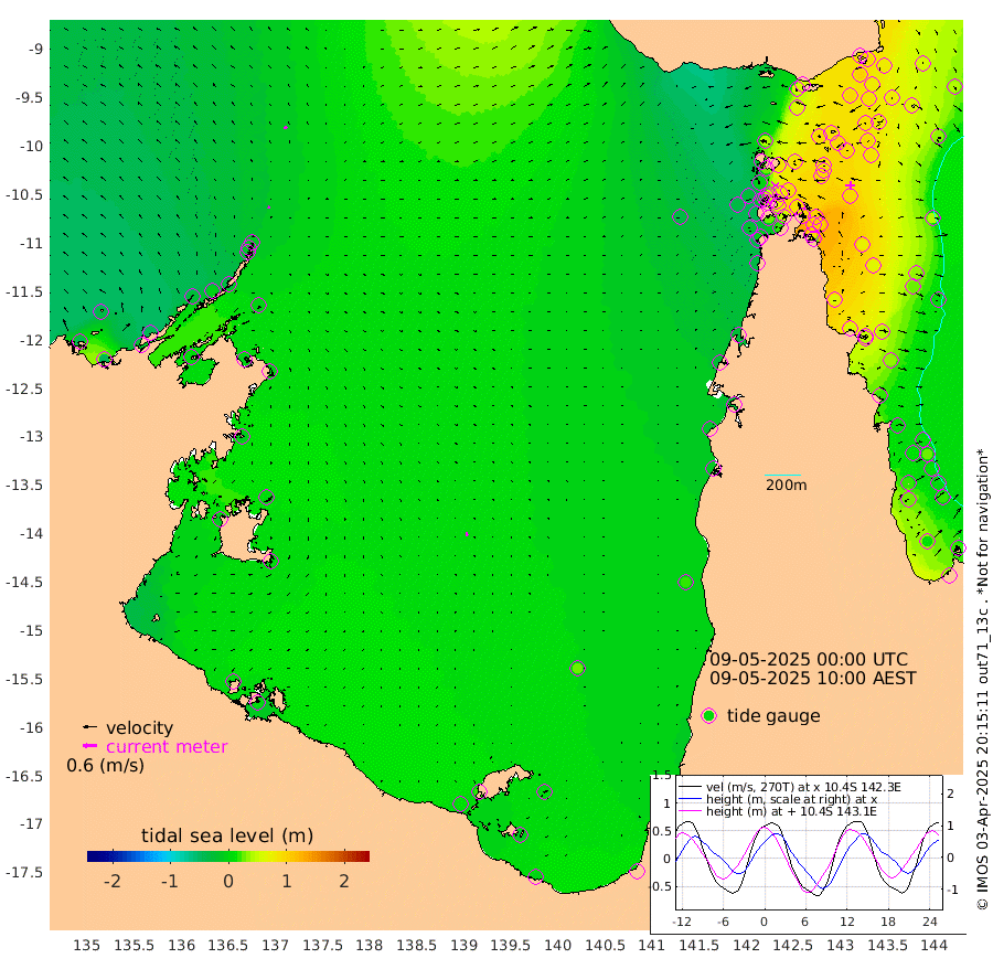 8cm/s -65T +3cm/s rms + 7cm/s -42T. ARA-GOC87 57m 15cm/s 176T +3cm/s rms + 2cm/s -2T. ARA-GOC87 60m 12cm/s -69T +2cm/s rms + 3cm/s 61T. ARA-GOC87 47m 96cm Daru 96cm Bobo Island 30cm Meer Island Barge 55cm Bramble Cay 78cm Unnamed Cay 89cm Pearce Cay 75cm Stephens Island 78cm Merrie England Shoals 99cm Mutacomal Reef 63cm Darnley Island Barge 39cm East Cay 78cm Yorke Island Barge 86cm Rennel Island 90cm Aureed Island 91cm Dungeness Reef 86cm Zagai Island 92cm Yam Island 55cm Dauan Island 53cm Saibai Island 63cm Phipi Reef 95cm Warrior Reef - West 38cm Mabuiag Island Barge 89cm Half Way Island 94cm Coconut Island 97cm Dugong Islet 96cm Poll Island 93cm Kirkcaldie Reef 87cm Suarji Island 84cm Sue Islet 0cm Hawkesbury Island 72cm Alert Patches 84cm Twin Island -4cm Badu Island 85cm St Pauls (Moa Island) 29cm Kubin (Moa Island) 58cm Ince Point 43cm Thursday Island 47cm Nardana Patches 21cm Turtle Head 9cm Round Island -13cm Goods Island -36cm Booby Island -24cm White Rocks Area -36cm Carpentaria 71cm Papou Point -41cm Bampfield Head -35cm Crab Island -17cm Red Wallis Island 24cm Packe Island 108cm Harrington Reef -3cm Herald Camp 29cm Sharp Point 21cm Red Island Point 48cm Possession Island 83cm Alpha Rock 95cm Frederick Point 98cm Wyborn Reef Light 100cm Tetley Island 39cm Triangle Reef 92cm Turtle Head Island 36cm Maclennan Cay 6cm Raine Island 74cm Mcsweeny Reef 61cm Collette Reef 28cm Shadwell Reef 67cm Hannibal Island 59cm Round Point -37cm Vrilya Point 49cm Cape Grenville 41cm Hicks Island 38cm Sir Charles Hardy Island 16cm Harvey Island 31cm Kay Reef 19cm Rocky Island 11cm Chapman Island 10cm Ham Reef 14cm Jubilee Reef 24cm Night Island 14cm Unnamed Reef No. 3 19cm Morris Island 4cm 1st 3 Mile Opening 15cm Creech Reef 27cm Fife Island 14cm Eden Reef 16cm Stanley Island 28cm Normanby River -43cm Yabooma Island -38cm Hutchison River -40cm Elcho Island -32cm North West Crocodile Island -11cm Cape Wessel -28cm Stevens Island -6cm Guluwuru Island -31cm Hopeful Bay -25cm Auster Point -12cm Two Island Bay -15cm Cadell Strait 6cm Mallison Island -6cm Melville Bay (Gove Harbour) -7cm Truant Island -3cm Cape Arnhem -10cm Cape Grey 3cm Hawk Island -9cm Milner Bay (Groote Eylandt) 0cm Cape Beatrice 7cm West Island 2cm Centre Island 18cm Mornington Island 10cm West Wellesley Islands 7cm Bountiful Island -5cm Albert River Mouth -9cm Sweers Island 7cm Karumba 24cm Nassau River Offshore 15cm Christmas Creek -14cm Archer River -15cm Boyd Point -24cm Weipa (Humbug Point) -26cm Pennefather River -25cm Cullen Point