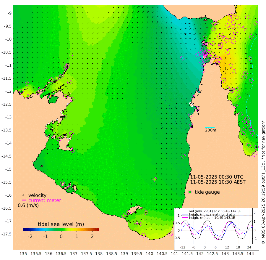 7cm/s 20T +3cm/s rms + 7cm/s -42T. ARA-GOC87 57m 7cm/s -159T +3cm/s rms + 2cm/s -2T. ARA-GOC87 60m 10cm/s 5T +2cm/s rms + 3cm/s 61T. ARA-GOC87 47m 74cm Daru 77cm Bobo Island 17cm Meer Island Barge 44cm Bramble Cay 61cm Unnamed Cay 67cm Pearce Cay 54cm Stephens Island 63cm Merrie England Shoals 81cm Mutacomal Reef 45cm Darnley Island Barge 24cm East Cay 58cm Yorke Island Barge 63cm Rennel Island 68cm Aureed Island 63cm Dungeness Reef 67cm Zagai Island 65cm Yam Island 34cm Dauan Island 37cm Saibai Island 36cm Phipi Reef 73cm Warrior Reef - West 10cm Mabuiag Island Barge 62cm Half Way Island 70cm Coconut Island 67cm Dugong Islet 68cm Poll Island 59cm Kirkcaldie Reef 56cm Suarji Island 58cm Sue Islet -59cm Hawkesbury Island 33cm Alert Patches 47cm Twin Island -47cm Badu Island 47cm St Pauls (Moa Island) -20cm Kubin (Moa Island) 18cm Ince Point -2cm Thursday Island 4cm Nardana Patches -25cm Turtle Head -42cm Round Island -64cm Goods Island -94cm Booby Island -75cm White Rocks Area -89cm Carpentaria 37cm Papou Point -102cm Bampfield Head -86cm Crab Island -71cm Red Wallis Island -27cm Packe Island 75cm Harrington Reef -68cm Herald Camp 20cm Sharp Point -26cm Red Island Point 2cm Possession Island 57cm Alpha Rock 61cm Frederick Point 78cm Wyborn Reef Light 79cm Tetley Island 27cm Triangle Reef 57cm Turtle Head Island 18cm Maclennan Cay -4cm Raine Island 55cm Mcsweeny Reef 46cm Collette Reef 16cm Shadwell Reef 52cm Hannibal Island 45cm Round Point -90cm Vrilya Point 33cm Cape Grenville 24cm Hicks Island 24cm Sir Charles Hardy Island 9cm Harvey Island 20cm Kay Reef 8cm Rocky Island 3cm Chapman Island 0cm Ham Reef 4cm Jubilee Reef 11cm Night Island 4cm Unnamed Reef No. 3 8cm Morris Island -10cm 1st 3 Mile Opening 2cm Creech Reef 15cm Fife Island 5cm Eden Reef 4cm Stanley Island 15cm Normanby River 7cm Yabooma Island 24cm Hutchison River 18cm Elcho Island 20cm North West Crocodile Island 34cm Cape Wessel 32cm Stevens Island 43cm Guluwuru Island 21cm Hopeful Bay 17cm Auster Point 26cm Two Island Bay 40cm Cadell Strait 100cm Mallison Island 38cm Melville Bay (Gove Harbour) 37cm Truant Island 29cm Cape Arnhem 16cm Cape Grey 27cm Hawk Island 16cm Milner Bay (Groote Eylandt) 21cm Cape Beatrice 19cm West Island 12cm Centre Island 34cm Mornington Island 29cm West Wellesley Islands 34cm Bountiful Island 49cm Albert River Mouth 43cm Sweers Island 42cm Karumba 23cm Nassau River Offshore -1cm Christmas Creek -41cm Archer River -48cm Boyd Point -56cm Weipa (Humbug Point) -65cm Pennefather River -72cm Cullen Point