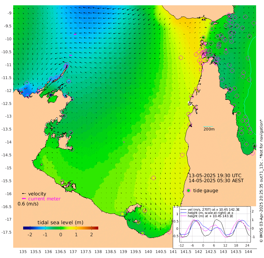 38cm/s -88T +3cm/s rms + 7cm/s -42T. ARA-GOC87 57m 13cm/s -170T +3cm/s rms + 2cm/s -2T. ARA-GOC87 60m 39cm/s -97T +2cm/s rms + 3cm/s 61T. ARA-GOC87 47m -40cm Daru -47cm Bobo Island -8cm Meer Island Barge -27cm Bramble Cay -37cm Unnamed Cay -37cm Pearce Cay -28cm Stephens Island -41cm Merrie England Shoals -46cm Mutacomal Reef -25cm Darnley Island Barge -7cm East Cay -32cm Yorke Island Barge -31cm Rennel Island -34cm Aureed Island -24cm Dungeness Reef -32cm Zagai Island -18cm Yam Island 10cm Dauan Island 3cm Saibai Island 12cm Phipi Reef -20cm Warrior Reef - West 16cm Mabuiag Island Barge -30cm Half Way Island -41cm Coconut Island -26cm Dugong Islet -29cm Poll Island -18cm Kirkcaldie Reef -8cm Suarji Island -24cm Sue Islet 69cm Hawkesbury Island -1cm Alert Patches -10cm Twin Island 53cm Badu Island -7cm St Pauls (Moa Island) 43cm Kubin (Moa Island) 14cm Ince Point 28cm Thursday Island 24cm Nardana Patches 48cm Turtle Head 51cm Round Island 73cm Goods Island 90cm Booby Island 80cm White Rocks Area 73cm Carpentaria -7cm Papou Point 79cm Bampfield Head 75cm Crab Island 80cm Red Wallis Island 56cm Packe Island -35cm Harrington Reef 91cm Herald Camp -4cm Sharp Point 49cm Red Island Point 17cm Possession Island -24cm Alpha Rock -23cm Frederick Point -53cm Wyborn Reef Light -51cm Tetley Island -12cm Triangle Reef -42cm Turtle Head Island 1cm Maclennan Cay 6cm Raine Island -31cm Mcsweeny Reef -28cm Collette Reef -9cm Shadwell Reef -34cm Hannibal Island -27cm Round Point 72cm Vrilya Point -15cm Cape Grenville -8cm Hicks Island 1cm Sir Charles Hardy Island -3cm Harvey Island -8cm Kay Reef 4cm Rocky Island 5cm Chapman Island 7cm Ham Reef 3cm Jubilee Reef 0cm Night Island 6cm Unnamed Reef No. 3 2cm Morris Island 10cm 1st 3 Mile Opening 7cm Creech Reef 0cm Fife Island 0cm Eden Reef 3cm Stanley Island -1cm Normanby River -83cm Yabooma Island -118cm Hutchison River -101cm Elcho Island -90cm North West Crocodile Island -103cm Cape Wessel -122cm Stevens Island -120cm Guluwuru Island -98cm Hopeful Bay -98cm Auster Point -99cm Two Island Bay -129cm Cadell Strait -215cm Mallison Island -102cm Melville Bay (Gove Harbour) -112cm Truant Island -76cm Cape Arnhem -44cm Cape Grey -41cm Hawk Island -17cm Milner Bay (Groote Eylandt) -4cm Cape Beatrice 31cm West Island 29cm Centre Island 42cm Mornington Island 46cm West Wellesley Islands 74cm Bountiful Island 37cm Albert River Mouth 35cm Sweers Island 55cm Karumba 68cm Nassau River Offshore 75cm Christmas Creek 69cm Archer River 65cm Boyd Point 80cm Weipa (Humbug Point) 50cm Pennefather River 75cm Cullen Point