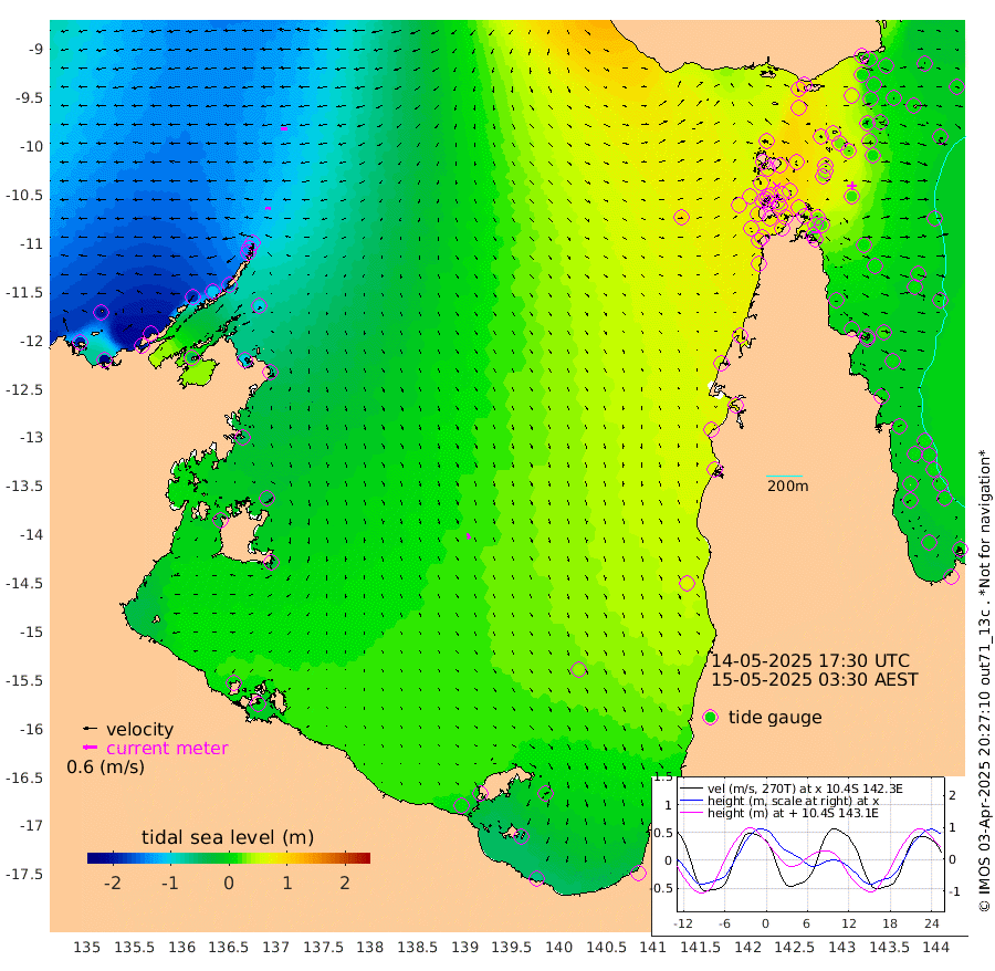 23cm/s -86T +3cm/s rms + 7cm/s -42T. ARA-GOC87 57m 24cm/s 162T +3cm/s rms + 2cm/s -2T. ARA-GOC87 60m 30cm/s -93T +2cm/s rms + 3cm/s 61T. ARA-GOC87 47m 18cm Daru 11cm Bobo Island 1cm Meer Island Barge -6cm Bramble Cay 4cm Unnamed Cay 7cm Pearce Cay 3cm Stephens Island -2cm Merrie England Shoals 14cm Mutacomal Reef 9cm Darnley Island Barge 2cm East Cay 17cm Yorke Island Barge 13cm Rennel Island 23cm Aureed Island 29cm Dungeness Reef 51cm Zagai Island 52cm Yam Island 87cm Dauan Island 92cm Saibai Island 77cm Phipi Reef 63cm Warrior Reef - West 76cm Mabuiag Island Barge 10cm Half Way Island 27cm Coconut Island 22cm Dugong Islet 39cm Poll Island 37cm Kirkcaldie Reef 68cm Suarji Island 49cm Sue Islet 76cm Hawkesbury Island 66cm Alert Patches 60cm Twin Island 72cm Badu Island 66cm St Pauls (Moa Island) 66cm Kubin (Moa Island) 68cm Ince Point 72cm Thursday Island 71cm Nardana Patches 74cm Turtle Head 72cm Round Island 72cm Goods Island 81cm Booby Island 71cm White Rocks Area 91cm Carpentaria 51cm Papou Point 94cm Bampfield Head 67cm Crab Island 81cm Red Wallis Island 76cm Packe Island 23cm Harrington Reef 99cm Herald Camp 24cm Sharp Point 66cm Red Island Point 65cm Possession Island 51cm Alpha Rock 45cm Frederick Point 17cm Wyborn Reef Light 24cm Tetley Island 15cm Triangle Reef 8cm Turtle Head Island 10cm Maclennan Cay 1cm Raine Island 10cm Mcsweeny Reef 10cm Collette Reef 8cm Shadwell Reef 3cm Hannibal Island -4cm Round Point 68cm Vrilya Point 4cm Cape Grenville 2cm Hicks Island 17cm Sir Charles Hardy Island 2cm Harvey Island 1cm Kay Reef 5cm Rocky Island 12cm Chapman Island 11cm Ham Reef 4cm Jubilee Reef 4cm Night Island 10cm Unnamed Reef No. 3 -1cm Morris Island 3cm 1st 3 Mile Opening 6cm Creech Reef 3cm Fife Island -6cm Eden Reef 1cm Stanley Island -8cm Normanby River -194cm Yabooma Island -232cm Hutchison River -207cm Elcho Island -201cm North West Crocodile Island -118cm Cape Wessel -185cm Stevens Island -109cm Guluwuru Island -159cm Hopeful Bay -138cm Auster Point -146cm Two Island Bay -191cm Cadell Strait -39cm Mallison Island -102cm Melville Bay (Gove Harbour) -103cm Truant Island -62cm Cape Arnhem -51cm Cape Grey -42cm Hawk Island -36cm Milner Bay (Groote Eylandt) -30cm Cape Beatrice 1cm West Island 6cm Centre Island 7cm Mornington Island 12cm West Wellesley Islands 1cm Bountiful Island -62cm Albert River Mouth -59cm Sweers Island -40cm Karumba 35cm Nassau River Offshore 61cm Christmas Creek 61cm Archer River 69cm Boyd Point 68cm Weipa (Humbug Point) 51cm Pennefather River 78cm Cullen Point