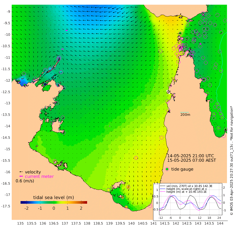 39cm/s -88T +3cm/s rms + 7cm/s -42T. ARA-GOC87 57m 14cm/s -144T +3cm/s rms + 2cm/s -2T. ARA-GOC87 60m 38cm/s -97T +2cm/s rms + 3cm/s 61T. ARA-GOC87 47m -22cm Daru -27cm Bobo Island 5cm Meer Island Barge -6cm Bramble Cay -16cm Unnamed Cay -15cm Pearce Cay -8cm Stephens Island -18cm Merrie England Shoals -26cm Mutacomal Reef -11cm Darnley Island Barge 11cm East Cay -19cm Yorke Island Barge -12cm Rennel Island -19cm Aureed Island -9cm Dungeness Reef -31cm Zagai Island -14cm Yam Island -2cm Dauan Island -14cm Saibai Island 16cm Phipi Reef -18cm Warrior Reef - West 3cm Mabuiag Island Barge -13cm Half Way Island -26cm Coconut Island -12cm Dugong Islet -20cm Poll Island -7cm Kirkcaldie Reef -7cm Suarji Island -23cm Sue Islet 60cm Hawkesbury Island -2cm Alert Patches -10cm Twin Island 44cm Badu Island -10cm St Pauls (Moa Island) 37cm Kubin (Moa Island) 8cm Ince Point 19cm Thursday Island 16cm Nardana Patches 40cm Turtle Head 44cm Round Island 62cm Goods Island 71cm Booby Island 65cm White Rocks Area 35cm Carpentaria -8cm Papou Point 57cm Bampfield Head 58cm Crab Island 61cm Red Wallis Island 49cm Packe Island -19cm Harrington Reef 76cm Herald Camp -7cm Sharp Point 45cm Red Island Point 15cm Possession Island -25cm Alpha Rock -16cm Frederick Point -36cm Wyborn Reef Light -37cm Tetley Island -2cm Triangle Reef -24cm Turtle Head Island 12cm Maclennan Cay 17cm Raine Island -14cm Mcsweeny Reef -12cm Collette Reef 2cm Shadwell Reef -14cm Hannibal Island -4cm Round Point 48cm Vrilya Point 3cm Cape Grenville 10cm Hicks Island 12cm Sir Charles Hardy Island 3cm Harvey Island 8cm Kay Reef 17cm Rocky Island 15cm Chapman Island 15cm Ham Reef 13cm Jubilee Reef 12cm Night Island 15cm Unnamed Reef No. 3 16cm Morris Island 19cm 1st 3 Mile Opening 17cm Creech Reef 14cm Fife Island 17cm Eden Reef 16cm Stanley Island 18cm Normanby River -18cm Yabooma Island -37cm Hutchison River -32cm Elcho Island -20cm North West Crocodile Island -76cm Cape Wessel -65cm Stevens Island -98cm Guluwuru Island -47cm Hopeful Bay -60cm Auster Point -59cm Two Island Bay -71cm Cadell Strait -234cm Mallison Island -76cm Melville Bay (Gove Harbour) -89cm Truant Island -63cm Cape Arnhem -31cm Cape Grey -24cm Hawk Island -8cm Milner Bay (Groote Eylandt) 8cm Cape Beatrice 33cm West Island 30cm Centre Island 64cm Mornington Island 62cm West Wellesley Islands 108cm Bountiful Island 88cm Albert River Mouth 86cm Sweers Island 108cm Karumba 87cm Nassau River Offshore 81cm Christmas Creek 65cm Archer River 51cm Boyd Point 71cm Weipa (Humbug Point) 36cm Pennefather River 53cm Cullen Point