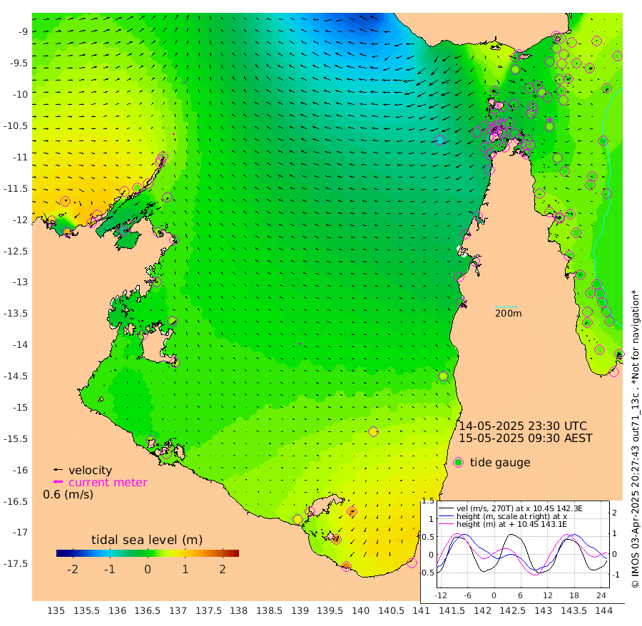 10cm/s -72T +3cm/s rms + 7cm/s -42T. ARA-GOC87 57m 14cm/s -97T +3cm/s rms + 2cm/s -2T. ARA-GOC87 60m 8cm/s -49T +2cm/s rms + 3cm/s 61T. ARA-GOC87 47m 29cm Daru 26cm Bobo Island 21cm Meer Island Barge 32cm Bramble Cay 32cm Unnamed Cay 31cm Pearce Cay 29cm Stephens Island 32cm Merrie England Shoals 29cm Mutacomal Reef 23cm Darnley Island Barge 25cm East Cay 22cm Yorke Island Barge 27cm Rennel Island 19cm Aureed Island 27cm Dungeness Reef 6cm Zagai Island 13cm Yam Island 4cm Dauan Island -8cm Saibai Island 32cm Phipi Reef 16cm Warrior Reef - West -14cm Mabuiag Island Barge 25cm Half Way Island 15cm Coconut Island 23cm Dugong Islet 12cm Poll Island 20cm Kirkcaldie Reef 3cm Suarji Island 5cm Sue Islet -22cm Hawkesbury Island -5cm Alert Patches -5cm Twin Island -15cm Badu Island -5cm St Pauls (Moa Island) -16cm Kubin (Moa Island) -12cm Ince Point -19cm Thursday Island -16cm Nardana Patches -15cm Turtle Head -23cm Round Island -23cm Goods Island -46cm Booby Island -37cm White Rocks Area -91cm Carpentaria -4cm Papou Point -67cm Bampfield Head -43cm Crab Island -48cm Red Wallis Island -25cm Packe Island 19cm Harrington Reef -35cm Herald Camp -2cm Sharp Point -7cm Red Island Point -13cm Possession Island -9cm Alpha Rock 5cm Frederick Point 17cm Wyborn Reef Light 12cm Tetley Island 11cm Triangle Reef 20cm Turtle Head Island 18cm Maclennan Cay 16cm Raine Island 23cm Mcsweeny Reef 22cm Collette Reef 17cm Shadwell Reef 28cm Hannibal Island 29cm Round Point -58cm Vrilya Point 24cm Cape Grenville 26cm Hicks Island 22cm Sir Charles Hardy Island 8cm Harvey Island 22cm Kay Reef 22cm Rocky Island 13cm Chapman Island 11cm Ham Reef 17cm Jubilee Reef 15cm Night Island 10cm Unnamed Reef No. 3 23cm Morris Island 16cm 1st 3 Mile Opening 16cm Creech Reef 15cm Fife Island 26cm Eden Reef 19cm Stanley Island 28cm Normanby River 103cm Yabooma Island 127cm Hutchison River 105cm Elcho Island 111cm North West Crocodile Island 24cm Cape Wessel 76cm Stevens Island 30cm Guluwuru Island 70cm Hopeful Bay 45cm Auster Point 49cm Two Island Bay 90cm Cadell Strait -64cm Mallison Island 35cm Melville Bay (Gove Harbour) 23cm Truant Island 13cm Cape Arnhem 29cm Cape Grey 30cm Hawk Island 28cm Milner Bay (Groote Eylandt) 38cm Cape Beatrice 32cm West Island 24cm Centre Island 82cm Mornington Island 75cm West Wellesley Islands 137cm Bountiful Island 164cm Albert River Mouth 161cm Sweers Island 163cm Karumba 78cm Nassau River Offshore 44cm Christmas Creek 5cm Archer River -22cm Boyd Point -6cm Weipa (Humbug Point) -35cm Pennefather River -50cm Cullen Point