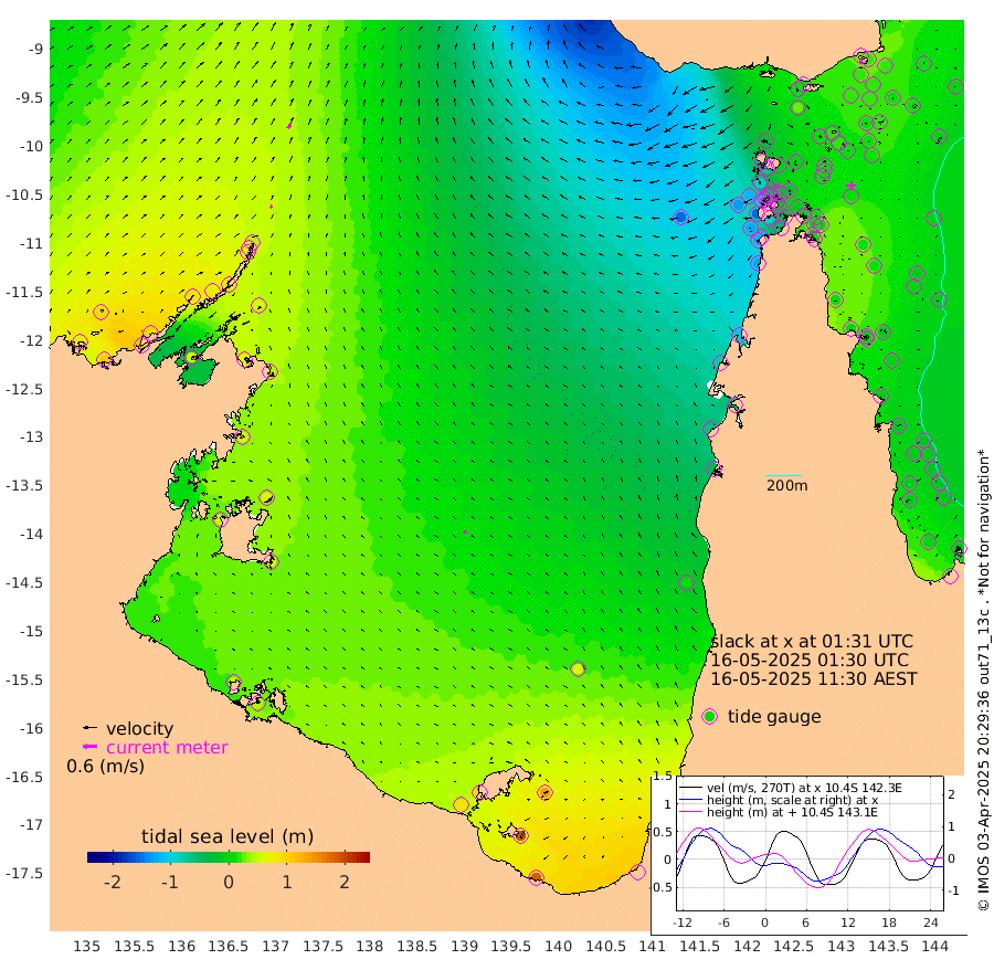 11cm/s 39T +3cm/s rms + 7cm/s -42T. ARA-GOC87 57m 14cm/s -68T +3cm/s rms + 2cm/s -2T. ARA-GOC87 60m 19cm/s 38T +2cm/s rms + 3cm/s 61T. ARA-GOC87 47m 23cm Daru 22cm Bobo Island -1cm Meer Island Barge 12cm Bramble Cay 18cm Unnamed Cay 18cm Pearce Cay 10cm Stephens Island 16cm Merrie England Shoals 20cm Mutacomal Reef 10cm Darnley Island Barge -4cm East Cay 16cm Yorke Island Barge 10cm Rennel Island 13cm Aureed Island 16cm Dungeness Reef 17cm Zagai Island 10cm Yam Island 8cm Dauan Island 5cm Saibai Island 29cm Phipi Reef 22cm Warrior Reef - West -25cm Mabuiag Island Barge 10cm Half Way Island 8cm Coconut Island 10cm Dugong Islet 7cm Poll Island 5cm Kirkcaldie Reef -4cm Suarji Island 8cm Sue Islet -95cm Hawkesbury Island -22cm Alert Patches -19cm Twin Island -71cm Badu Island -14cm St Pauls (Moa Island) -70cm Kubin (Moa Island) -38cm Ince Point -55cm Thursday Island -48cm Nardana Patches -67cm Turtle Head -84cm Round Island -98cm Goods Island -131cm Booby Island -120cm White Rocks Area -155cm Carpentaria -17cm Papou Point -154cm Bampfield Head -114cm Crab Island -127cm Red Wallis Island -92cm Packe Island 5cm Harrington Reef -119cm Herald Camp 3cm Sharp Point -57cm Red Island Point -45cm Possession Island -14cm Alpha Rock -7cm Frederick Point 12cm Wyborn Reef Light 9cm Tetley Island -6cm Triangle Reef 5cm Turtle Head Island -9cm Maclennan Cay -14cm Raine Island 9cm Mcsweeny Reef 8cm Collette Reef -3cm Shadwell Reef 13cm Hannibal Island 5cm Round Point -123cm Vrilya Point -2cm Cape Grenville -2cm Hicks Island -8cm Sir Charles Hardy Island -1cm Harvey Island -7cm Kay Reef -8cm Rocky Island -15cm Chapman Island -17cm Ham Reef -11cm Jubilee Reef -11cm Night Island -20cm Unnamed Reef No. 3 -9cm Morris Island -16cm 1st 3 Mile Opening -15cm Creech Reef -14cm Fife Island -7cm Eden Reef -13cm Stanley Island -6cm Normanby River 82cm Yabooma Island 112cm Hutchison River 93cm Elcho Island 97cm North West Crocodile Island 43cm Cape Wessel 84cm Stevens Island 69cm Guluwuru Island 72cm Hopeful Bay 55cm Auster Point 59cm Two Island Bay 108cm Cadell Strait 55cm Mallison Island 65cm Melville Bay (Gove Harbour) 55cm Truant Island 42cm Cape Arnhem 53cm Cape Grey 55cm Hawk Island 53cm Milner Bay (Groote Eylandt) 57cm Cape Beatrice 49cm West Island 43cm Centre Island 94cm Mornington Island 88cm West Wellesley Islands 139cm Bountiful Island 185cm Albert River Mouth 193cm Sweers Island 172cm Karumba 63cm Nassau River Offshore 12cm Christmas Creek -38cm Archer River -67cm Boyd Point -63cm Weipa (Humbug Point) -77cm Pennefather River -110cm Cullen Point