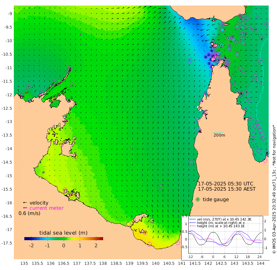 21cm/s 26T +3cm/s rms + 7cm/s -42T. ARA-GOC87 57m 24cm/s 3T +3cm/s rms + 2cm/s -2T. ARA-GOC87 60m 24cm/s 32T +2cm/s rms + 3cm/s 61T. ARA-GOC87 47m -54cm Daru -50cm Bobo Island -53cm Meer Island Barge -53cm Bramble Cay -55cm Unnamed Cay -62cm Pearce Cay -59cm Stephens Island -50cm Merrie England Shoals -51cm Mutacomal Reef -50cm Darnley Island Barge -59cm East Cay -48cm Yorke Island Barge -61cm Rennel Island -53cm Aureed Island -69cm Dungeness Reef -51cm Zagai Island -68cm Yam Island -78cm Dauan Island -50cm Saibai Island -90cm Phipi Reef -63cm Warrior Reef - West -74cm Mabuiag Island Barge -60cm Half Way Island -60cm Coconut Island -63cm Dugong Islet -64cm Poll Island -71cm Kirkcaldie Reef -76cm Suarji Island -47cm Sue Islet -169cm Hawkesbury Island -85cm Alert Patches -81cm Twin Island -148cm Badu Island -80cm St Pauls (Moa Island) -147cm Kubin (Moa Island) -98cm Ince Point -112cm Thursday Island -108cm Nardana Patches -139cm Turtle Head -154cm Round Island -169cm Goods Island -176cm Booby Island -169cm White Rocks Area -121cm Carpentaria -76cm Papou Point -190cm Bampfield Head -145cm Crab Island -166cm Red Wallis Island -163cm Packe Island -63cm Harrington Reef -189cm Herald Camp -8cm Sharp Point -119cm Red Island Point -108cm Possession Island -55cm Alpha Rock -71cm Frederick Point -52cm Wyborn Reef Light -53cm Tetley Island -53cm Triangle Reef -70cm Turtle Head Island -61cm Maclennan Cay -57cm Raine Island -52cm Mcsweeny Reef -47cm Collette Reef -48cm Shadwell Reef -50cm Hannibal Island -59cm Round Point -123cm Vrilya Point -56cm Cape Grenville -62cm Hicks Island -67cm Sir Charles Hardy Island -19cm Harvey Island -52cm Kay Reef -57cm Rocky Island -54cm Chapman Island -51cm Ham Reef -53cm Jubilee Reef -53cm Night Island -53cm Unnamed Reef No. 3 -59cm Morris Island -63cm 1st 3 Mile Opening -59cm Creech Reef -50cm Fife Island -64cm Eden Reef -57cm Stanley Island -58cm Normanby River -63cm Yabooma Island -72cm Hutchison River -50cm Elcho Island -49cm North West Crocodile Island 1cm Cape Wessel -19cm Stevens Island 13cm Guluwuru Island -22cm Hopeful Bay -15cm Auster Point -20cm Two Island Bay -27cm Cadell Strait 137cm Mallison Island 8cm Melville Bay (Gove Harbour) 7cm Truant Island 15cm Cape Arnhem 33cm Cape Grey 35cm Hawk Island 67cm Milner Bay (Groote Eylandt) 61cm Cape Beatrice 85cm West Island 81cm Centre Island 54cm Mornington Island 64cm West Wellesley Islands 50cm Bountiful Island 83cm Albert River Mouth 113cm Sweers Island 62cm Karumba -8cm Nassau River Offshore -54cm Christmas Creek -81cm Archer River -91cm Boyd Point -111cm Weipa (Humbug Point) -82cm Pennefather River -122cm Cullen Point