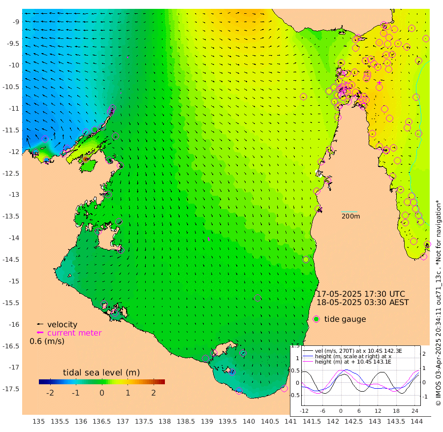 6cm/s 142T +3cm/s rms + 7cm/s -42T. ARA-GOC87 57m 35cm/s 162T +3cm/s rms + 2cm/s -2T. ARA-GOC87 60m 9cm/s -111T +2cm/s rms + 3cm/s 61T. ARA-GOC87 47m 93cm Daru 80cm Bobo Island 57cm Meer Island Barge 69cm Bramble Cay 88cm Unnamed Cay 73cm Pearce Cay 76cm Stephens Island 88cm Merrie England Shoals 99cm Mutacomal Reef 78cm Darnley Island Barge 59cm East Cay 85cm Yorke Island Barge 83cm Rennel Island 79cm Aureed Island 85cm Dungeness Reef 89cm Zagai Island 92cm Yam Island 100cm Dauan Island 101cm Saibai Island 86cm Phipi Reef 99cm Warrior Reef - West 80cm Mabuiag Island Barge 81cm Half Way Island 86cm Coconut Island 89cm Dugong Islet 87cm Poll Island 90cm Kirkcaldie Reef 83cm Suarji Island 95cm Sue Islet 78cm Hawkesbury Island 91cm Alert Patches 90cm Twin Island 72cm Badu Island 91cm St Pauls (Moa Island) 78cm Kubin (Moa Island) 85cm Ince Point 82cm Thursday Island 83cm Nardana Patches 80cm Turtle Head 75cm Round Island 69cm Goods Island 66cm Booby Island 59cm White Rocks Area 68cm Carpentaria 73cm Papou Point 83cm Bampfield Head 54cm Crab Island 70cm Red Wallis Island 85cm Packe Island 87cm Harrington Reef 90cm Herald Camp 28cm Sharp Point 59cm Red Island Point 73cm Possession Island 94cm Alpha Rock 91cm Frederick Point 97cm Wyborn Reef Light 99cm Tetley Island 62cm Triangle Reef 86cm Turtle Head Island 58cm Maclennan Cay 45cm Raine Island 82cm Mcsweeny Reef 80cm Collette Reef 65cm Shadwell Reef 83cm Hannibal Island 72cm Round Point 56cm Vrilya Point 70cm Cape Grenville 61cm Hicks Island 77cm Sir Charles Hardy Island 21cm Harvey Island 64cm Kay Reef 53cm Rocky Island 55cm Chapman Island 53cm Ham Reef 54cm Jubilee Reef 50cm Night Island 54cm Unnamed Reef No. 3 52cm Morris Island 50cm 1st 3 Mile Opening 54cm Creech Reef 56cm Fife Island 53cm Eden Reef 58cm Stanley Island 52cm Normanby River -121cm Yabooma Island -142cm Hutchison River -135cm Elcho Island -138cm North West Crocodile Island -47cm Cape Wessel -92cm Stevens Island -10cm Guluwuru Island -86cm Hopeful Bay -69cm Auster Point -70cm Two Island Bay -86cm Cadell Strait 188cm Mallison Island -23cm Melville Bay (Gove Harbour) -17cm Truant Island -8cm Cape Arnhem -29cm Cape Grey -31cm Hawk Island -56cm Milner Bay (Groote Eylandt) -54cm Cape Beatrice -58cm West Island -59cm Centre Island -46cm Mornington Island -39cm West Wellesley Islands -69cm Bountiful Island -126cm Albert River Mouth -142cm Sweers Island -115cm Karumba -1cm Nassau River Offshore 43cm Christmas Creek 48cm Archer River 60cm Boyd Point 55cm Weipa (Humbug Point) 46cm Pennefather River 63cm Cullen Point