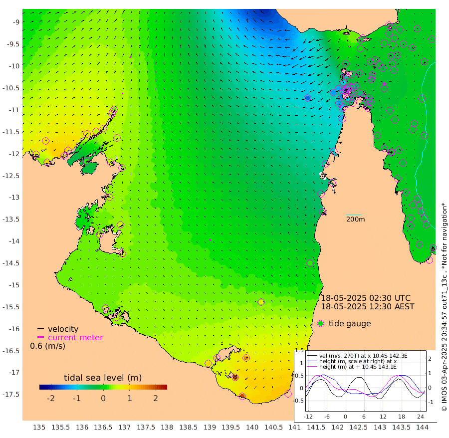 10cm/s 33T +3cm/s rms + 7cm/s -42T. ARA-GOC87 57m 17cm/s -66T +3cm/s rms + 2cm/s -2T. ARA-GOC87 60m 19cm/s 35T +2cm/s rms + 3cm/s 61T. ARA-GOC87 47m -20cm Daru -17cm Bobo Island -15cm Meer Island Barge -17cm Bramble Cay -22cm Unnamed Cay -15cm Pearce Cay -21cm Stephens Island -26cm Merrie England Shoals -28cm Mutacomal Reef -16cm Darnley Island Barge -22cm East Cay -16cm Yorke Island Barge -27cm Rennel Island -19cm Aureed Island -18cm Dungeness Reef -19cm Zagai Island -30cm Yam Island -10cm Dauan Island -19cm Saibai Island 10cm Phipi Reef -13cm Warrior Reef - West -48cm Mabuiag Island Barge -26cm Half Way Island -33cm Coconut Island -29cm Dugong Islet -31cm Poll Island -36cm Kirkcaldie Reef -37cm Suarji Island -30cm Sue Islet -104cm Hawkesbury Island -54cm Alert Patches -55cm Twin Island -85cm Badu Island -48cm St Pauls (Moa Island) -84cm Kubin (Moa Island) -65cm Ince Point -77cm Thursday Island -71cm Nardana Patches -82cm Turtle Head -92cm Round Island -104cm Goods Island -129cm Booby Island -125cm White Rocks Area -152cm Carpentaria -50cm Papou Point -149cm Bampfield Head -112cm Crab Island -130cm Red Wallis Island -104cm Packe Island -39cm Harrington Reef -117cm Herald Camp -9cm Sharp Point -75cm Red Island Point -62cm Possession Island -53cm Alpha Rock -47cm Frederick Point -35cm Wyborn Reef Light -38cm Tetley Island -22cm Triangle Reef -34cm Turtle Head Island -25cm Maclennan Cay -22cm Raine Island -25cm Mcsweeny Reef -22cm Collette Reef -18cm Shadwell Reef -19cm Hannibal Island -23cm Round Point -117cm Vrilya Point -26cm Cape Grenville -20cm Hicks Island -29cm Sir Charles Hardy Island -7cm Harvey Island -28cm Kay Reef -19cm Rocky Island -24cm Chapman Island -26cm Ham Reef -22cm Jubilee Reef -20cm Night Island -30cm Unnamed Reef No. 3 -22cm Morris Island -22cm 1st 3 Mile Opening -24cm Creech Reef -25cm Fife Island -16cm Eden Reef -24cm Stanley Island -21cm Normanby River 74cm Yabooma Island 99cm Hutchison River 84cm Elcho Island 86cm North West Crocodile Island 30cm Cape Wessel 69cm Stevens Island 52cm Guluwuru Island 66cm Hopeful Bay 49cm Auster Point 54cm Two Island Bay 96cm Cadell Strait 17cm Mallison Island 53cm Melville Bay (Gove Harbour) 44cm Truant Island 36cm Cape Arnhem 48cm Cape Grey 57cm Hawk Island 57cm Milner Bay (Groote Eylandt) 59cm Cape Beatrice 53cm West Island 51cm Centre Island 104cm Mornington Island 97cm West Wellesley Islands 148cm Bountiful Island 197cm Albert River Mouth 216cm Sweers Island 188cm Karumba 69cm Nassau River Offshore 16cm Christmas Creek -32cm Archer River -61cm Boyd Point -55cm Weipa (Humbug Point) -69cm Pennefather River -103cm Cullen Point