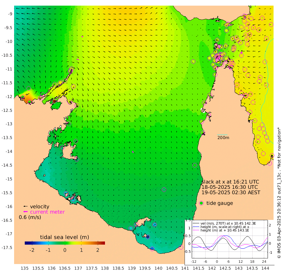 32cm/s 112T +3cm/s rms + 7cm/s -42T. ARA-GOC87 57m 28cm/s 159T +3cm/s rms + 2cm/s -2T. ARA-GOC87 60m 21cm/s 109T +2cm/s rms + 3cm/s 61T. ARA-GOC87 47m 87cm Daru 80cm Bobo Island 75cm Meer Island Barge 81cm Bramble Cay 90cm Unnamed Cay 81cm Pearce Cay 85cm Stephens Island 87cm Merrie England Shoals 87cm Mutacomal Reef 88cm Darnley Island Barge 73cm East Cay 87cm Yorke Island Barge 82cm Rennel Island 77cm Aureed Island 79cm Dungeness Reef 73cm Zagai Island 75cm Yam Island 78cm Dauan Island 72cm Saibai Island 59cm Phipi Reef 77cm Warrior Reef - West 55cm Mabuiag Island Barge 83cm Half Way Island 75cm Coconut Island 85cm Dugong Islet 73cm Poll Island 76cm Kirkcaldie Reef 55cm Suarji Island 77cm Sue Islet 70cm Hawkesbury Island 63cm Alert Patches 66cm Twin Island 65cm Badu Island 66cm St Pauls (Moa Island) 70cm Kubin (Moa Island) 62cm Ince Point 61cm Thursday Island 61cm Nardana Patches 64cm Turtle Head 60cm Round Island 65cm Goods Island 60cm Booby Island 53cm White Rocks Area 50cm Carpentaria 58cm Papou Point 72cm Bampfield Head 47cm Crab Island 57cm Red Wallis Island 68cm Packe Island 77cm Harrington Reef 72cm Herald Camp 13cm Sharp Point 44cm Red Island Point 52cm Possession Island 67cm Alpha Rock 72cm Frederick Point 87cm Wyborn Reef Light 85cm Tetley Island 68cm Triangle Reef 91cm Turtle Head Island 71cm Maclennan Cay 63cm Raine Island 83cm Mcsweeny Reef 80cm Collette Reef 73cm Shadwell Reef 87cm Hannibal Island 80cm Round Point 43cm Vrilya Point 75cm Cape Grenville 75cm Hicks Island 89cm Sir Charles Hardy Island 24cm Harvey Island 73cm Kay Reef 67cm Rocky Island 66cm Chapman Island 65cm Ham Reef 70cm Jubilee Reef 61cm Night Island 63cm Unnamed Reef No. 3 68cm Morris Island 71cm 1st 3 Mile Opening 69cm Creech Reef 66cm Fife Island 79cm Eden Reef 73cm Stanley Island 72cm Normanby River 18cm Yabooma Island 22cm Hutchison River 3cm Elcho Island -6cm North West Crocodile Island 46cm Cape Wessel 30cm Stevens Island 88cm Guluwuru Island 19cm Hopeful Bay 34cm Auster Point 42cm Two Island Bay 62cm Cadell Strait 231cm Mallison Island 60cm Melville Bay (Gove Harbour) 72cm Truant Island 46cm Cape Arnhem 5cm Cape Grey -17cm Hawk Island -58cm Milner Bay (Groote Eylandt) -65cm Cape Beatrice -101cm West Island -104cm Centre Island -94cm Mornington Island -86cm West Wellesley Islands -111cm Bountiful Island -152cm Albert River Mouth -180cm Sweers Island -154cm Karumba -46cm Nassau River Offshore 4cm Christmas Creek 24cm Archer River 42cm Boyd Point 40cm Weipa (Humbug Point) 31cm Pennefather River 44cm Cullen Point