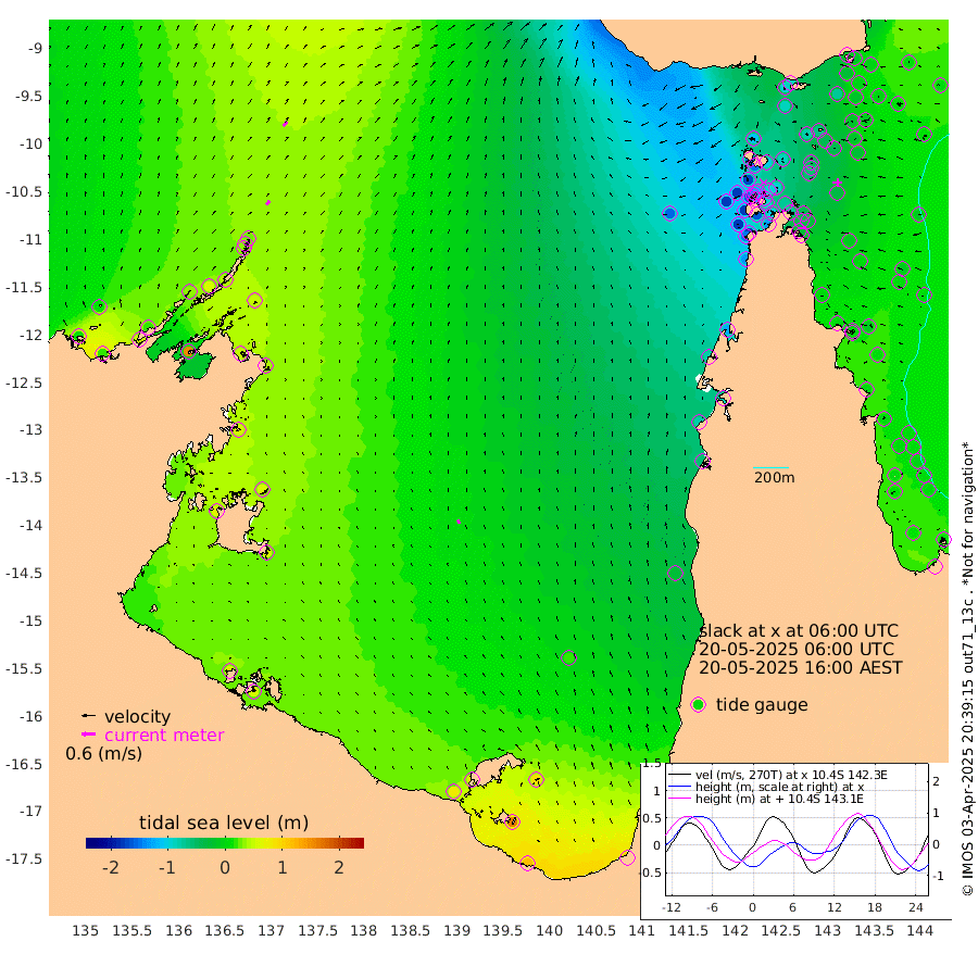 21cm/s 46T +3cm/s rms + 7cm/s -42T. ARA-GOC87 57m 18cm/s -19T +3cm/s rms + 2cm/s -2T. ARA-GOC87 60m 28cm/s 42T +2cm/s rms + 3cm/s 61T. ARA-GOC87 47m -22cm Daru -16cm Bobo Island 8cm Meer Island Barge 4cm Bramble Cay -7cm Unnamed Cay -15cm Pearce Cay -4cm Stephens Island -2cm Merrie England Shoals -25cm Mutacomal Reef 4cm Darnley Island Barge 3cm East Cay -8cm Yorke Island Barge -22cm Rennel Island -19cm Aureed Island -40cm Dungeness Reef -61cm Zagai Island -78cm Yam Island -96cm Dauan Island -87cm Saibai Island -83cm Phipi Reef -70cm Warrior Reef - West -106cm Mabuiag Island Barge -23cm Half Way Island -42cm Coconut Island -34cm Dugong Islet -60cm Poll Island -59cm Kirkcaldie Reef -86cm Suarji Island -49cm Sue Islet -169cm Hawkesbury Island -92cm Alert Patches -94cm Twin Island -157cm Badu Island -99cm St Pauls (Moa Island) -148cm Kubin (Moa Island) -113cm Ince Point -127cm Thursday Island -123cm Nardana Patches -139cm Turtle Head -144cm Round Island -163cm Goods Island -177cm Booby Island -176cm White Rocks Area -154cm Carpentaria -93cm Papou Point -174cm Bampfield Head -147cm Crab Island -179cm Red Wallis Island -164cm Packe Island -40cm Harrington Reef -174cm Herald Camp -23cm Sharp Point -128cm Red Island Point -102cm Possession Island -74cm Alpha Rock -69cm Frederick Point -31cm Wyborn Reef Light -41cm Tetley Island -11cm Triangle Reef -28cm Turtle Head Island -8cm Maclennan Cay 2cm Raine Island -8cm Mcsweeny Reef 0cm Collette Reef 6cm Shadwell Reef 5cm Hannibal Island 1cm Round Point -133cm Vrilya Point 1cm Cape Grenville 1cm Hicks Island -10cm Sir Charles Hardy Island 1cm Harvey Island 6cm Kay Reef 5cm Rocky Island 1cm Chapman Island 2cm Ham Reef 5cm Jubilee Reef 2cm Night Island -1cm Unnamed Reef No. 3 6cm Morris Island 3cm 1st 3 Mile Opening 3cm Creech Reef 12cm Fife Island 14cm Eden Reef 10cm Stanley Island 12cm Normanby River 12cm Yabooma Island 20cm Hutchison River 21cm Elcho Island 15cm North West Crocodile Island 28cm Cape Wessel 37cm Stevens Island 57cm Guluwuru Island 38cm Hopeful Bay 35cm Auster Point 32cm Two Island Bay 50cm Cadell Strait 152cm Mallison Island 52cm Melville Bay (Gove Harbour) 50cm Truant Island 43cm Cape Arnhem 54cm Cape Grey 56cm Hawk Island 65cm Milner Bay (Groote Eylandt) 59cm Cape Beatrice 60cm West Island 59cm Centre Island 74cm Mornington Island 76cm West Wellesley Islands 85cm Bountiful Island 119cm Albert River Mouth 159cm Sweers Island 108cm Karumba 19cm Nassau River Offshore -26cm Christmas Creek -59cm Archer River -80cm Boyd Point -89cm Weipa (Humbug Point) -75cm Pennefather River -127cm Cullen Point