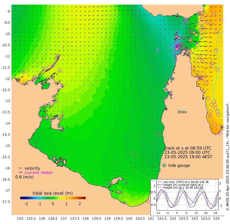 20cm/s 81T +3cm/s rms + 7cm/s -42T. ARA-GOC87 57m 8cm/s -8T +3cm/s rms + 2cm/s -2T. ARA-GOC87 60m 22cm/s 69T +2cm/s rms + 3cm/s 61T. ARA-GOC87 47m 76cm Daru 85cm Bobo Island 87cm Meer Island Barge 99cm Bramble Cay 96cm Unnamed Cay 89cm Pearce Cay 101cm Stephens Island 106cm Merrie England Shoals 77cm Mutacomal Reef 96cm Darnley Island Barge 93cm East Cay 82cm Yorke Island Barge 82cm Rennel Island 76cm Aureed Island 52cm Dungeness Reef -1cm Zagai Island -11cm Yam Island -78cm Dauan Island -77cm Saibai Island -46cm Phipi Reef -14cm Warrior Reef - West -74cm Mabuiag Island Barge 79cm Half Way Island 60cm Coconut Island 65cm Dugong Islet 23cm Poll Island 33cm Kirkcaldie Reef -9cm Suarji Island 19cm Sue Islet -95cm Hawkesbury Island -12cm Alert Patches -12cm Twin Island -91cm Badu Island -29cm St Pauls (Moa Island) -70cm Kubin (Moa Island) -41cm Ince Point -54cm Thursday Island -52cm Nardana Patches -62cm Turtle Head -63cm Round Island -81cm Goods Island -96cm Booby Island -90cm White Rocks Area -82cm Carpentaria -23cm Papou Point -68cm Bampfield Head -77cm Crab Island -98cm Red Wallis Island -76cm Packe Island 75cm Harrington Reef -90cm Herald Camp -13cm Sharp Point -60cm Red Island Point -22cm Possession Island -2cm Alpha Rock 24cm Frederick Point 72cm Wyborn Reef Light 58cm Tetley Island 61cm Triangle Reef 88cm Turtle Head Island 74cm Maclennan Cay 74cm Raine Island 90cm Mcsweeny Reef 92cm Collette Reef 80cm Shadwell Reef 106cm Hannibal Island 103cm Round Point -72cm Vrilya Point 95cm Cape Grenville 91cm Hicks Island 77cm Sir Charles Hardy Island 30cm Harvey Island 94cm Kay Reef 80cm Rocky Island 72cm Chapman Island 71cm Ham Reef 78cm Jubilee Reef 75cm Night Island 73cm Unnamed Reef No. 3 88cm Morris Island 80cm 1st 3 Mile Opening 81cm Creech Reef 91cm Fife Island 100cm Eden Reef 92cm Stanley Island 100cm Normanby River 28cm Yabooma Island 55cm Hutchison River 41cm Elcho Island 27cm North West Crocodile Island 44cm Cape Wessel 52cm Stevens Island 77cm Guluwuru Island 47cm Hopeful Bay 50cm Auster Point 44cm Two Island Bay 64cm Cadell Strait 140cm Mallison Island 66cm Melville Bay (Gove Harbour) 69cm Truant Island 51cm Cape Arnhem 45cm Cape Grey 39cm Hawk Island 24cm Milner Bay (Groote Eylandt) 19cm Cape Beatrice 2cm West Island 4cm Centre Island 19cm Mornington Island 15cm West Wellesley Islands 5cm Bountiful Island 15cm Albert River Mouth 37cm Sweers Island 13cm Karumba -8cm Nassau River Offshore -20cm Christmas Creek -29cm Archer River -40cm Boyd Point -47cm Weipa (Humbug Point) -31cm Pennefather River -74cm Cullen Point