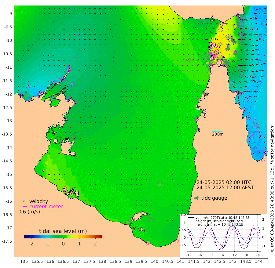 15cm/s -85T +3cm/s rms + 7cm/s -42T. ARA-GOC87 57m 3cm/s 143T +3cm/s rms + 2cm/s -2T. ARA-GOC87 60m 18cm/s -95T +2cm/s rms + 3cm/s 61T. ARA-GOC87 47m -32cm Daru -44cm Bobo Island -89cm Meer Island Barge -83cm Bramble Cay -62cm Unnamed Cay -57cm Pearce Cay -74cm Stephens Island -64cm Merrie England Shoals -29cm Mutacomal Reef -75cm Darnley Island Barge -97cm East Cay -52cm Yorke Island Barge -48cm Rennel Island -43cm Aureed Island -19cm Dungeness Reef 29cm Zagai Island 33cm Yam Island 64cm Dauan Island 65cm Saibai Island 48cm Phipi Reef 36cm Warrior Reef - West 60cm Mabuiag Island Barge -41cm Half Way Island -18cm Coconut Island -28cm Dugong Islet 12cm Poll Island 3cm Kirkcaldie Reef 30cm Suarji Island 13cm Sue Islet 24cm Hawkesbury Island 33cm Alert Patches 34cm Twin Island 36cm Badu Island 50cm St Pauls (Moa Island) 28cm Kubin (Moa Island) 42cm Ince Point 41cm Thursday Island 42cm Nardana Patches 26cm Turtle Head 10cm Round Island 13cm Goods Island 15cm Booby Island 14cm White Rocks Area 21cm Carpentaria 36cm Papou Point -25cm Bampfield Head 19cm Crab Island 27cm Red Wallis Island 27cm Packe Island -26cm Harrington Reef 1cm Herald Camp 29cm Sharp Point 26cm Red Island Point 15cm Possession Island 31cm Alpha Rock 10cm Frederick Point -26cm Wyborn Reef Light -12cm Tetley Island -62cm Triangle Reef -42cm Turtle Head Island -81cm Maclennan Cay -91cm Raine Island -60cm Mcsweeny Reef -66cm Collette Reef -79cm Shadwell Reef -76cm Hannibal Island -87cm Round Point 28cm Vrilya Point -84cm Cape Grenville -92cm Hicks Island -94cm Sir Charles Hardy Island -27cm Harvey Island -96cm Kay Reef -96cm Rocky Island -95cm Chapman Island -93cm Ham Reef -92cm Jubilee Reef -81cm Night Island -91cm Unnamed Reef No. 3 -100cm Morris Island -99cm 1st 3 Mile Opening -96cm Creech Reef -98cm Fife Island -119cm Eden Reef -103cm Stanley Island -112cm Normanby River -108cm Yabooma Island -127cm Hutchison River -101cm Elcho Island -87cm North West Crocodile Island -81cm Cape Wessel -92cm Stevens Island -93cm Guluwuru Island -95cm Hopeful Bay -90cm Auster Point -85cm Two Island Bay -108cm Cadell Strait -98cm Mallison Island -83cm Melville Bay (Gove Harbour) -88cm Truant Island -57cm Cape Arnhem -41cm Cape Grey -22cm Hawk Island 3cm Milner Bay (Groote Eylandt) 12cm Cape Beatrice 44cm West Island 43cm Centre Island 23cm Mornington Island 22cm West Wellesley Islands 4cm Bountiful Island 27cm Albert River Mouth 16cm Sweers Island 25cm Karumba 19cm Nassau River Offshore 6cm Christmas Creek -3cm Archer River -1cm Boyd Point -9cm Weipa (Humbug Point) 17cm Pennefather River 18cm Cullen Point
