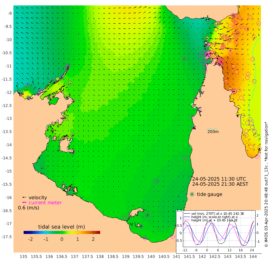 13cm/s 82T +3cm/s rms + 7cm/s -42T. ARA-GOC87 57m 5cm/s 75T +3cm/s rms + 2cm/s -2T. ARA-GOC87 60m 11cm/s 65T +2cm/s rms + 3cm/s 61T. ARA-GOC87 47m 150cm Daru 149cm Bobo Island 82cm Meer Island Barge 112cm Bramble Cay 144cm Unnamed Cay 137cm Pearce Cay 133cm Stephens Island 147cm Merrie England Shoals 153cm Mutacomal Reef 123cm Darnley Island Barge 88cm East Cay 134cm Yorke Island Barge 141cm Rennel Island 138cm Aureed Island 135cm Dungeness Reef 116cm Zagai Island 108cm Yam Island 42cm Dauan Island 44cm Saibai Island 74cm Phipi Reef 106cm Warrior Reef - West 38cm Mabuiag Island Barge 138cm Half Way Island 149cm Coconut Island 140cm Dugong Islet 127cm Poll Island 133cm Kirkcaldie Reef 122cm Suarji Island 122cm Sue Islet -16cm Hawkesbury Island 108cm Alert Patches 109cm Twin Island -1cm Badu Island 103cm St Pauls (Moa Island) 21cm Kubin (Moa Island) 72cm Ince Point 53cm Thursday Island 57cm Nardana Patches 30cm Turtle Head 24cm Round Island -11cm Goods Island -33cm Booby Island -23cm White Rocks Area -20cm Carpentaria 90cm Papou Point 9cm Bampfield Head -29cm Crab Island -31cm Red Wallis Island 8cm Packe Island 162cm Harrington Reef -11cm Herald Camp 31cm Sharp Point 22cm Red Island Point 81cm Possession Island 109cm Alpha Rock 130cm Frederick Point 156cm Wyborn Reef Light 151cm Tetley Island 76cm Triangle Reef 161cm Turtle Head Island 78cm Maclennan Cay 54cm Raine Island 132cm Mcsweeny Reef 123cm Collette Reef 83cm Shadwell Reef 136cm Hannibal Island 115cm Round Point -30cm Vrilya Point 105cm Cape Grenville 94cm Hicks Island 85cm Sir Charles Hardy Island 32cm Harvey Island 88cm Kay Reef 66cm Rocky Island 53cm Chapman Island 52cm Ham Reef 62cm Jubilee Reef 64cm Night Island 55cm Unnamed Reef No. 3 71cm Morris Island 64cm 1st 3 Mile Opening 65cm Creech Reef 65cm Fife Island 69cm Eden Reef 71cm Stanley Island 76cm Normanby River -69cm Yabooma Island -47cm Hutchison River -57cm Elcho Island -65cm North West Crocodile Island -10cm Cape Wessel -32cm Stevens Island 34cm Guluwuru Island -38cm Hopeful Bay -16cm Auster Point -27cm Two Island Bay -33cm Cadell Strait 86cm Mallison Island 20cm Melville Bay (Gove Harbour) 25cm Truant Island 24cm Cape Arnhem 23cm Cape Grey 20cm Hawk Island 7cm Milner Bay (Groote Eylandt) 3cm Cape Beatrice -1cm West Island 6cm Centre Island 4cm Mornington Island -1cm West Wellesley Islands -22cm Bountiful Island -38cm Albert River Mouth -29cm Sweers Island -35cm Karumba -17cm Nassau River Offshore -11cm Christmas Creek -18cm Archer River -15cm Boyd Point -30cm Weipa (Humbug Point) -10cm Pennefather River -33cm Cullen Point