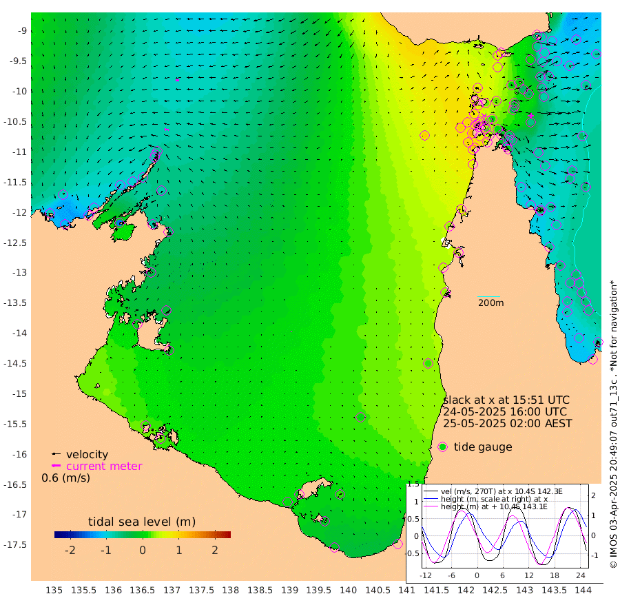 26cm/s -85T +3cm/s rms + 7cm/s -42T. ARA-GOC87 57m 4cm/s 26T +3cm/s rms + 2cm/s -2T. ARA-GOC87 60m 24cm/s -97T +2cm/s rms + 3cm/s 61T. ARA-GOC87 47m -72cm Daru -82cm Bobo Island -73cm Meer Island Barge -91cm Bramble Cay -85cm Unnamed Cay -89cm Pearce Cay -93cm Stephens Island -98cm Merrie England Shoals -75cm Mutacomal Reef -84cm Darnley Island Barge -80cm East Cay -73cm Yorke Island Barge -75cm Rennel Island -68cm Aureed Island -48cm Dungeness Reef 5cm Zagai Island 6cm Yam Island 75cm Dauan Island 77cm Saibai Island 55cm Phipi Reef 10cm Warrior Reef - West 76cm Mabuiag Island Barge -81cm Half Way Island -52cm Coconut Island -66cm Dugong Islet -24cm Poll Island -35cm Kirkcaldie Reef 28cm Suarji Island -13cm Sue Islet 86cm Hawkesbury Island 24cm Alert Patches 14cm Twin Island 87cm Badu Island 30cm St Pauls (Moa Island) 64cm Kubin (Moa Island) 43cm Ince Point 56cm Thursday Island 55cm Nardana Patches 66cm Turtle Head 84cm Round Island 83cm Goods Island 102cm Booby Island 93cm White Rocks Area 100cm Carpentaria 21cm Papou Point 123cm Bampfield Head 80cm Crab Island 93cm Red Wallis Island 68cm Packe Island -70cm Harrington Reef 109cm Herald Camp 12cm Sharp Point 54cm Red Island Point 46cm Possession Island 6cm Alpha Rock -21cm Frederick Point -65cm Wyborn Reef Light -53cm Tetley Island -51cm Triangle Reef -80cm Turtle Head Island -62cm Maclennan Cay -57cm Raine Island -80cm Mcsweeny Reef -76cm Collette Reef -62cm Shadwell Reef -92cm Hannibal Island -94cm Round Point 70cm Vrilya Point -81cm Cape Grenville -77cm Hicks Island -62cm Sir Charles Hardy Island -25cm Harvey Island -78cm Kay Reef -63cm Rocky Island -54cm Chapman Island -54cm Ham Reef -63cm Jubilee Reef -62cm Night Island -58cm Unnamed Reef No. 3 -72cm Morris Island -56cm 1st 3 Mile Opening -64cm Creech Reef -78cm Fife Island -84cm Eden Reef -74cm Stanley Island -89cm Normanby River -82cm Yabooma Island -113cm Hutchison River -94cm Elcho Island -89cm North West Crocodile Island -73cm Cape Wessel -99cm Stevens Island -97cm Guluwuru Island -80cm Hopeful Bay -75cm Auster Point -88cm Two Island Bay -134cm Cadell Strait -150cm Mallison Island -81cm Melville Bay (Gove Harbour) -82cm Truant Island -54cm Cape Arnhem -35cm Cape Grey -28cm Hawk Island -5cm Milner Bay (Groote Eylandt) -9cm Cape Beatrice 17cm West Island 24cm Centre Island -1cm Mornington Island 5cm West Wellesley Islands 16cm Bountiful Island -11cm Albert River Mouth -9cm Sweers Island -7cm Karumba 2cm Nassau River Offshore 18cm Christmas Creek 33cm Archer River 49cm Boyd Point 55cm Weipa (Humbug Point) 34cm Pennefather River 79cm Cullen Point