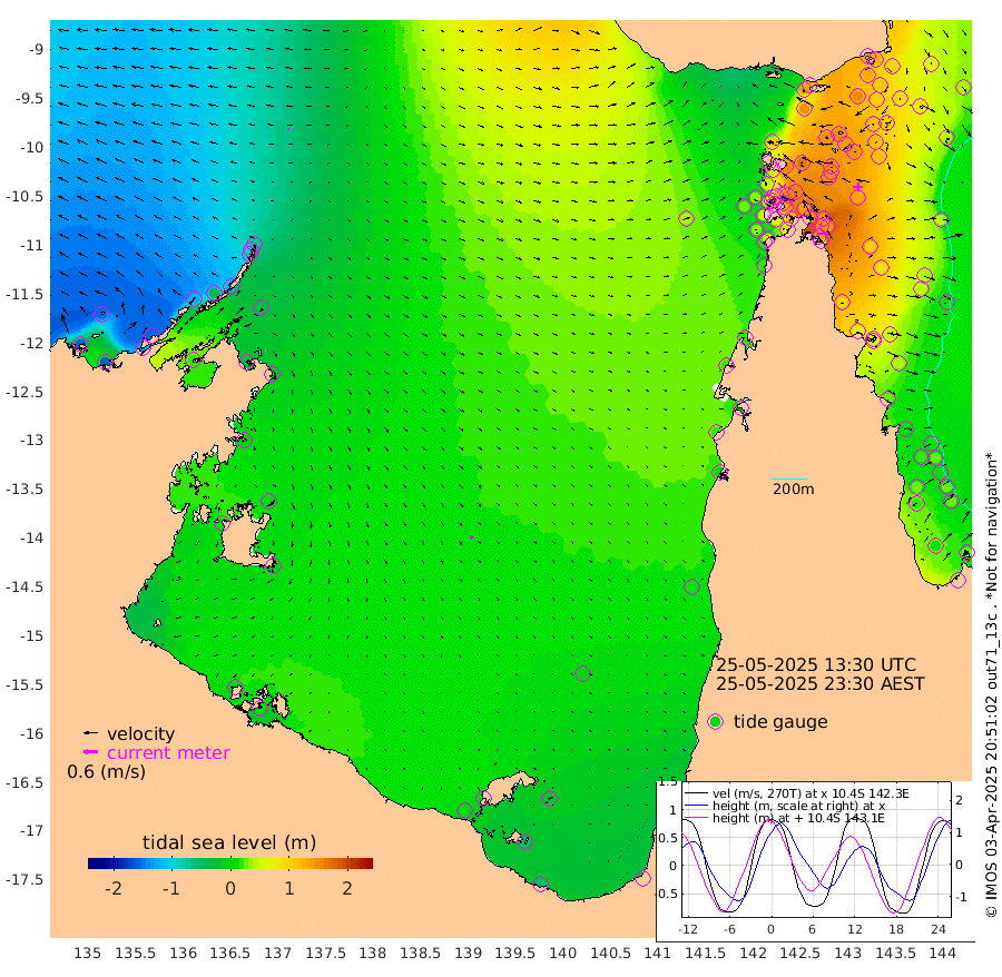 2cm/s -20T +3cm/s rms + 7cm/s -42T. ARA-GOC87 57m 11cm/s 135T +3cm/s rms + 2cm/s -2T. ARA-GOC87 60m 7cm/s -72T +2cm/s rms + 3cm/s 61T. ARA-GOC87 47m 134cm Daru 123cm Bobo Island 40cm Meer Island Barge 65cm Bramble Cay 111cm Unnamed Cay 104cm Pearce Cay 93cm Stephens Island 104cm Merrie England Shoals 135cm Mutacomal Reef 87cm Darnley Island Barge 40cm East Cay 112cm Yorke Island Barge 117cm Rennel Island 120cm Aureed Island 136cm Dungeness Reef 154cm Zagai Island 148cm Yam Island 128cm Dauan Island 127cm Saibai Island 143cm Phipi Reef 152cm Warrior Reef - West 111cm Mabuiag Island Barge 115cm Half Way Island 144cm Coconut Island 130cm Dugong Islet 146cm Poll Island 145cm Kirkcaldie Reef 168cm Suarji Island 146cm Sue Islet 46cm Hawkesbury Island 152cm Alert Patches 151cm Twin Island 66cm Badu Island 157cm St Pauls (Moa Island) 78cm Kubin (Moa Island) 126cm Ince Point 111cm Thursday Island 116cm Nardana Patches 88cm Turtle Head 79cm Round Island 47cm Goods Island 30cm Booby Island 35cm White Rocks Area 40cm Carpentaria 132cm Papou Point 66cm Bampfield Head 22cm Crab Island 32cm Red Wallis Island 66cm Packe Island 148cm Harrington Reef 56cm Herald Camp 53cm Sharp Point 69cm Red Island Point 124cm Possession Island 142cm Alpha Rock 148cm Frederick Point 142cm Wyborn Reef Light 147cm Tetley Island 52cm Triangle Reef 138cm Turtle Head Island 45cm Maclennan Cay 14cm Raine Island 101cm Mcsweeny Reef 89cm Collette Reef 48cm Shadwell Reef 93cm Hannibal Island 65cm Round Point 18cm Vrilya Point 61cm Cape Grenville 50cm Hicks Island 51cm Sir Charles Hardy Island 19cm Harvey Island 39cm Kay Reef 23cm Rocky Island 14cm Chapman Island 13cm Ham Reef 22cm Jubilee Reef 26cm Night Island 15cm Unnamed Reef No. 3 23cm Morris Island 25cm 1st 3 Mile Opening 24cm Creech Reef 15cm Fife Island 12cm Eden Reef 23cm Stanley Island 18cm Normanby River -159cm Yabooma Island -159cm Hutchison River -154cm Elcho Island -156cm North West Crocodile Island -75cm Cape Wessel -123cm Stevens Island -32cm Guluwuru Island -122cm Hopeful Bay -89cm Auster Point -102cm Two Island Bay -132cm Cadell Strait 21cm Mallison Island -41cm Melville Bay (Gove Harbour) -37cm Truant Island -15cm Cape Arnhem -9cm Cape Grey -6cm Hawk Island -7cm Milner Bay (Groote Eylandt) -9cm Cape Beatrice 6cm West Island 15cm Centre Island 4cm Mornington Island 5cm West Wellesley Islands -21cm Bountiful Island -54cm Albert River Mouth -54cm Sweers Island -48cm Karumba -3cm Nassau River Offshore 14cm Christmas Creek 7cm Archer River 20cm Boyd Point 6cm Weipa (Humbug Point) 18cm Pennefather River 18cm Cullen Point