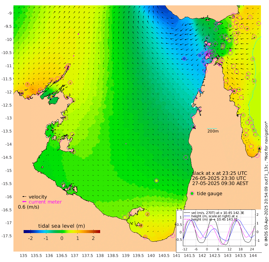 15cm/s 48T +3cm/s rms + 7cm/s -42T. ARA-GOC87 57m 11cm/s -70T +3cm/s rms + 2cm/s -2T. ARA-GOC87 60m 22cm/s 44T +2cm/s rms + 3cm/s 61T. ARA-GOC87 47m 66cm Daru 78cm Bobo Island 57cm Meer Island Barge 77cm Bramble Cay 75cm Unnamed Cay 79cm Pearce Cay 78cm Stephens Island 78cm Merrie England Shoals 69cm Mutacomal Reef 71cm Darnley Island Barge 66cm East Cay 66cm Yorke Island Barge 65cm Rennel Island 67cm Aureed Island 49cm Dungeness Reef 15cm Zagai Island 15cm Yam Island -41cm Dauan Island -39cm Saibai Island -15cm Phipi Reef 16cm Warrior Reef - West -64cm Mabuiag Island Barge 65cm Half Way Island 46cm Coconut Island 58cm Dugong Islet 28cm Poll Island 30cm Kirkcaldie Reef -4cm Suarji Island 19cm Sue Islet -115cm Hawkesbury Island -29cm Alert Patches -15cm Twin Island -112cm Badu Island -24cm St Pauls (Moa Island) -81cm Kubin (Moa Island) -50cm Ince Point -71cm Thursday Island -65cm Nardana Patches -87cm Turtle Head -94cm Round Island -120cm Goods Island -155cm Booby Island -136cm White Rocks Area -164cm Carpentaria -19cm Papou Point -158cm Bampfield Head -140cm Crab Island -144cm Red Wallis Island -97cm Packe Island 58cm Harrington Reef -120cm Herald Camp -7cm Sharp Point -73cm Red Island Point -46cm Possession Island -4cm Alpha Rock 17cm Frederick Point 58cm Wyborn Reef Light 48cm Tetley Island 42cm Triangle Reef 55cm Turtle Head Island 50cm Maclennan Cay 36cm Raine Island 65cm Mcsweeny Reef 62cm Collette Reef 46cm Shadwell Reef 76cm Hannibal Island 75cm Round Point -148cm Vrilya Point 64cm Cape Grenville 63cm Hicks Island 59cm Sir Charles Hardy Island 20cm Harvey Island 60cm Kay Reef 51cm Rocky Island 41cm Chapman Island 39cm Ham Reef 44cm Jubilee Reef 44cm Night Island 38cm Unnamed Reef No. 3 53cm Morris Island 35cm 1st 3 Mile Opening 43cm Creech Reef 53cm Fife Island 64cm Eden Reef 51cm Stanley Island 71cm Normanby River 117cm Yabooma Island 149cm Hutchison River 123cm Elcho Island 123cm North West Crocodile Island 89cm Cape Wessel 118cm Stevens Island 104cm Guluwuru Island 108cm Hopeful Bay 92cm Auster Point 104cm Two Island Bay 147cm Cadell Strait 105cm Mallison Island 95cm Melville Bay (Gove Harbour) 91cm Truant Island 62cm Cape Arnhem 56cm Cape Grey 57cm Hawk Island 42cm Milner Bay (Groote Eylandt) 43cm Cape Beatrice 27cm West Island 19cm Centre Island 65cm Mornington Island 58cm West Wellesley Islands 102cm Bountiful Island 124cm Albert River Mouth 133cm Sweers Island 118cm Karumba 42cm Nassau River Offshore -1cm Christmas Creek -53cm Archer River -78cm Boyd Point -76cm Weipa (Humbug Point) -101cm Pennefather River -124cm Cullen Point