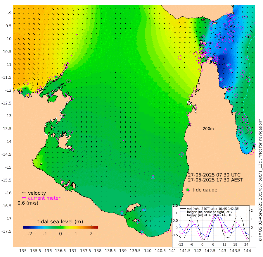 12cm/s 155T +3cm/s rms + 7cm/s -42T. ARA-GOC87 57m 18cm/s 9T +3cm/s rms + 2cm/s -2T. ARA-GOC87 60m 18cm/s 147T +2cm/s rms + 3cm/s 61T. ARA-GOC87 47m -157cm Daru -150cm Bobo Island -72cm Meer Island Barge -102cm Bramble Cay -139cm Unnamed Cay -137cm Pearce Cay -126cm Stephens Island -132cm Merrie England Shoals -156cm Mutacomal Reef -120cm Darnley Island Barge -77cm East Cay -139cm Yorke Island Barge -138cm Rennel Island -145cm Aureed Island -152cm Dungeness Reef -148cm Zagai Island -146cm Yam Island -116cm Dauan Island -111cm Saibai Island -140cm Phipi Reef -159cm Warrior Reef - West -65cm Mabuiag Island Barge -138cm Half Way Island -146cm Coconut Island -150cm Dugong Islet -144cm Poll Island -145cm Kirkcaldie Reef -147cm Suarji Island -141cm Sue Islet 31cm Hawkesbury Island -112cm Alert Patches -119cm Twin Island 11cm Badu Island -124cm St Pauls (Moa Island) -21cm Kubin (Moa Island) -79cm Ince Point -54cm Thursday Island -61cm Nardana Patches -27cm Turtle Head -5cm Round Island 33cm Goods Island 74cm Booby Island 60cm White Rocks Area 82cm Carpentaria -99cm Papou Point 58cm Bampfield Head 74cm Crab Island 63cm Red Wallis Island -2cm Packe Island -157cm Harrington Reef 18cm Herald Camp -44cm Sharp Point -14cm Red Island Point -72cm Possession Island -118cm Alpha Rock -135cm Frederick Point -149cm Wyborn Reef Light -148cm Tetley Island -73cm Triangle Reef -138cm Turtle Head Island -73cm Maclennan Cay -36cm Raine Island -125cm Mcsweeny Reef -114cm Collette Reef -72cm Shadwell Reef -124cm Hannibal Island -99cm Round Point 86cm Vrilya Point -91cm Cape Grenville -83cm Hicks Island -89cm Sir Charles Hardy Island -29cm Harvey Island -70cm Kay Reef -56cm Rocky Island -42cm Chapman Island -40cm Ham Reef -49cm Jubilee Reef -53cm Night Island -40cm Unnamed Reef No. 3 -54cm Morris Island -45cm 1st 3 Mile Opening -51cm Creech Reef -51cm Fife Island -53cm Eden Reef -54cm Stanley Island -62cm Normanby River 99cm Yabooma Island 91cm Hutchison River 99cm Elcho Island 96cm North West Crocodile Island 42cm Cape Wessel 75cm Stevens Island -12cm Guluwuru Island 73cm Hopeful Bay 57cm Auster Point 56cm Two Island Bay 55cm Cadell Strait -79cm Mallison Island -2cm Melville Bay (Gove Harbour) 2cm Truant Island -10cm Cape Arnhem -17cm Cape Grey -25cm Hawk Island -17cm Milner Bay (Groote Eylandt) -24cm Cape Beatrice -36cm West Island -35cm Centre Island -84cm Mornington Island -83cm West Wellesley Islands -106cm Bountiful Island -83cm Albert River Mouth -82cm Sweers Island -87cm Karumba -77cm Nassau River Offshore -59cm Christmas Creek 4cm Archer River 16cm Boyd Point 21cm Weipa (Humbug Point) 51cm Pennefather River 58cm Cullen Point