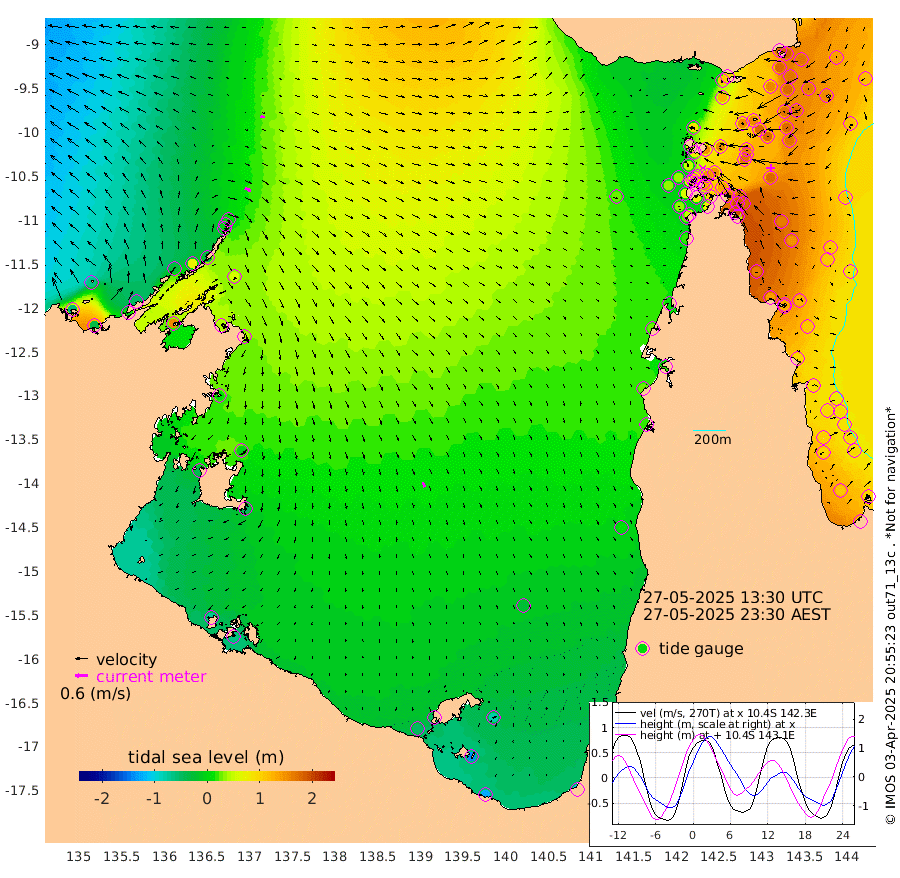 30cm/s 110T +3cm/s rms + 7cm/s -42T. ARA-GOC87 57m 25cm/s 160T +3cm/s rms + 2cm/s -2T. ARA-GOC87 60m 20cm/s 102T +2cm/s rms + 3cm/s 61T. ARA-GOC87 47m 180cm Daru 181cm Bobo Island 113cm Meer Island Barge 139cm Bramble Cay 169cm Unnamed Cay 177cm Pearce Cay 164cm Stephens Island 166cm Merrie England Shoals 177cm Mutacomal Reef 157cm Darnley Island Barge 118cm East Cay 168cm Yorke Island Barge 170cm Rennel Island 174cm Aureed Island 173cm Dungeness Reef 157cm Zagai Island 150cm Yam Island 111cm Dauan Island 103cm Saibai Island 127cm Phipi Reef 157cm Warrior Reef - West 83cm Mabuiag Island Barge 170cm Half Way Island 179cm Coconut Island 176cm Dugong Islet 164cm Poll Island 168cm Kirkcaldie Reef 156cm Suarji Island 157cm Sue Islet 52cm Hawkesbury Island 144cm Alert Patches 149cm Twin Island 65cm Badu Island 146cm St Pauls (Moa Island) 81cm Kubin (Moa Island) 117cm Ince Point 102cm Thursday Island 105cm Nardana Patches 87cm Turtle Head 66cm Round Island 56cm Goods Island 32cm Booby Island 37cm White Rocks Area 27cm Carpentaria 128cm Papou Point 55cm Bampfield Head 24cm Crab Island 35cm Red Wallis Island 72cm Packe Island 190cm Harrington Reef 48cm Herald Camp 38cm Sharp Point 70cm Red Island Point 112cm Possession Island 136cm Alpha Rock 165cm Frederick Point 179cm Wyborn Reef Light 176cm Tetley Island 109cm Triangle Reef 192cm Turtle Head Island 111cm Maclennan Cay 83cm Raine Island 160cm Mcsweeny Reef 148cm Collette Reef 109cm Shadwell Reef 161cm Hannibal Island 141cm Round Point 18cm Vrilya Point 128cm Cape Grenville 122cm Hicks Island 124cm Sir Charles Hardy Island 40cm Harvey Island 110cm Kay Reef 94cm Rocky Island 85cm Chapman Island 82cm Ham Reef 93cm Jubilee Reef 91cm Night Island 85cm Unnamed Reef No. 3 98cm Morris Island 95cm 1st 3 Mile Opening 97cm Creech Reef 94cm Fife Island 105cm Eden Reef 98cm Stanley Island 105cm Normanby River -57cm Yabooma Island -30cm Hutchison River -52cm Elcho Island -62cm North West Crocodile Island 11cm Cape Wessel -25cm Stevens Island 72cm Guluwuru Island -37cm Hopeful Bay -4cm Auster Point -8cm Two Island Bay 12cm Cadell Strait 155cm Mallison Island 43cm Melville Bay (Gove Harbour) 53cm Truant Island 41cm Cape Arnhem 13cm Cape Grey -3cm Hawk Island -43cm Milner Bay (Groote Eylandt) -45cm Cape Beatrice -72cm West Island -67cm Centre Island -50cm Mornington Island -50cm West Wellesley Islands -82cm Bountiful Island -120cm Albert River Mouth -138cm Sweers Island -115cm Karumba -24cm Nassau River Offshore 14cm Christmas Creek 18cm Archer River 29cm Boyd Point 19cm Weipa (Humbug Point) 23cm Pennefather River 15cm Cullen Point