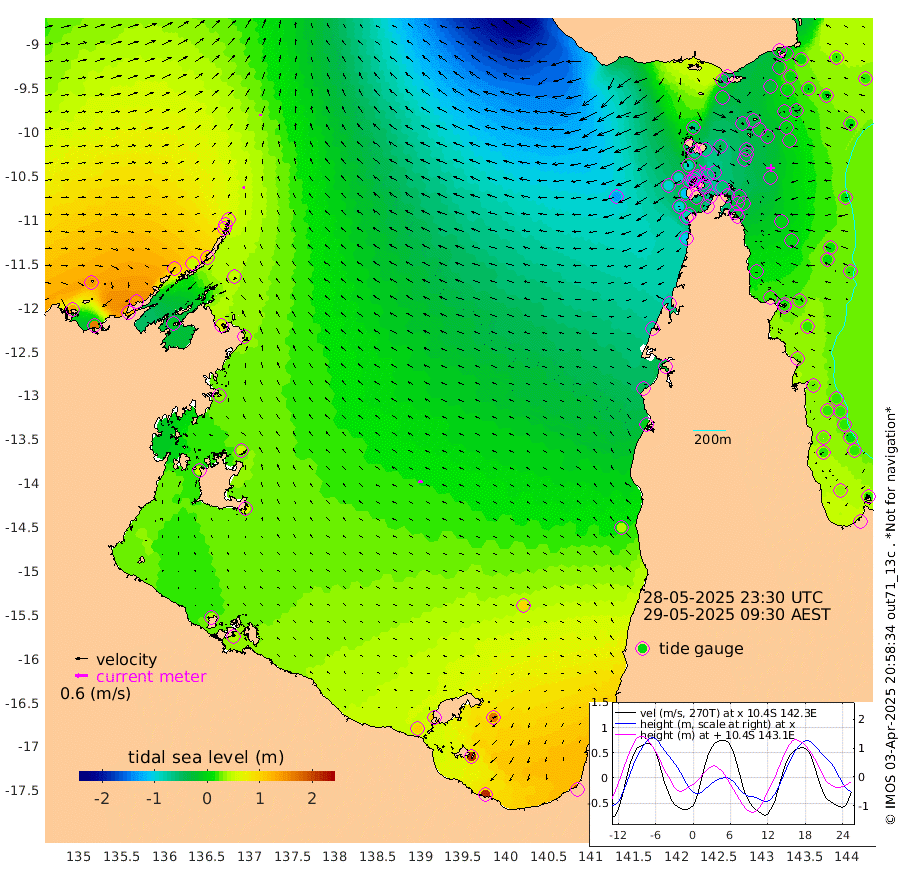 10cm/s -51T +3cm/s rms + 7cm/s -42T. ARA-GOC87 57m 20cm/s -78T +3cm/s rms + 2cm/s -2T. ARA-GOC87 60m 10cm/s -3T +2cm/s rms + 3cm/s 61T. ARA-GOC87 47m -10cm Daru -1cm Bobo Island 15cm Meer Island Barge 20cm Bramble Cay 2cm Unnamed Cay 6cm Pearce Cay 6cm Stephens Island 5cm Merrie England Shoals -8cm Mutacomal Reef 3cm Darnley Island Barge 21cm East Cay -8cm Yorke Island Barge -6cm Rennel Island -4cm Aureed Island -13cm Dungeness Reef -35cm Zagai Island -37cm Yam Island -41cm Dauan Island -49cm Saibai Island -13cm Phipi Reef -26cm Warrior Reef - West -66cm Mabuiag Island Barge -12cm Half Way Island -21cm Coconut Island -20cm Dugong Islet -32cm Poll Island -36cm Kirkcaldie Reef -41cm Suarji Island -44cm Sue Islet -83cm Hawkesbury Island -62cm Alert Patches -58cm Twin Island -72cm Badu Island -64cm St Pauls (Moa Island) -68cm Kubin (Moa Island) -67cm Ince Point -74cm Thursday Island -71cm Nardana Patches -66cm Turtle Head -68cm Round Island -73cm Goods Island -96cm Booby Island -83cm White Rocks Area -132cm Carpentaria -58cm Papou Point -108cm Bampfield Head -89cm Crab Island -92cm Red Wallis Island -66cm Packe Island -26cm Harrington Reef -79cm Herald Camp -21cm Sharp Point -62cm Red Island Point -61cm Possession Island -54cm Alpha Rock -44cm Frederick Point -21cm Wyborn Reef Light -28cm Tetley Island 7cm Triangle Reef -34cm Turtle Head Island 10cm Maclennan Cay 17cm Raine Island -3cm Mcsweeny Reef 2cm Collette Reef 9cm Shadwell Reef 9cm Hannibal Island 19cm Round Point -108cm Vrilya Point 13cm Cape Grenville 17cm Hicks Island 16cm Sir Charles Hardy Island 3cm Harvey Island 19cm Kay Reef 23cm Rocky Island 23cm Chapman Island 15cm Ham Reef 15cm Jubilee Reef 16cm Night Island 16cm Unnamed Reef No. 3 23cm Morris Island 12cm 1st 3 Mile Opening 15cm Creech Reef 20cm Fife Island 34cm Eden Reef 18cm Stanley Island 29cm Normanby River 133cm Yabooma Island 162cm Hutchison River 142cm Elcho Island 142cm North West Crocodile Island 56cm Cape Wessel 111cm Stevens Island 51cm Guluwuru Island 112cm Hopeful Bay 73cm Auster Point 75cm Two Island Bay 117cm Cadell Strait -11cm Mallison Island 60cm Melville Bay (Gove Harbour) 49cm Truant Island 34cm Cape Arnhem 37cm Cape Grey 51cm Hawk Island 46cm Milner Bay (Groote Eylandt) 53cm Cape Beatrice 41cm West Island 38cm Centre Island 108cm Mornington Island 99cm West Wellesley Islands 167cm Bountiful Island 213cm Albert River Mouth 216cm Sweers Island 204cm Karumba 93cm Nassau River Offshore 45cm Christmas Creek -6cm Archer River -42cm Boyd Point -22cm Weipa (Humbug Point) -69cm Pennefather River -80cm Cullen Point