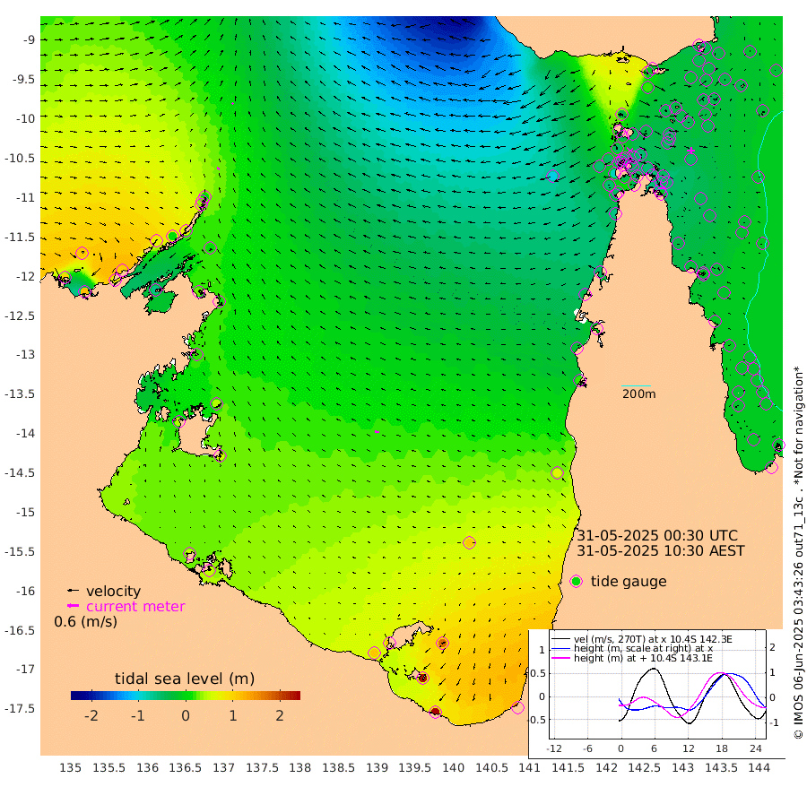 13cm/s -78T +3cm/s rms + 7cm/s -42T. ARA-GOC87 57m 20cm/s -85T +3cm/s rms + 2cm/s -2T. ARA-GOC87 60m 8cm/s -52T +2cm/s rms + 3cm/s 61T. ARA-GOC87 47m -39cm Daru -38cm Bobo Island -23cm Meer Island Barge -22cm Bramble Cay -36cm Unnamed Cay -30cm Pearce Cay -37cm Stephens Island -35cm Merrie England Shoals -38cm Mutacomal Reef -38cm Darnley Island Barge -23cm East Cay -42cm Yorke Island Barge -40cm Rennel Island -37cm Aureed Island -33cm Dungeness Reef -35cm Zagai Island -38cm Yam Island -8cm Dauan Island -22cm Saibai Island 15cm Phipi Reef -22cm Warrior Reef - West -37cm Mabuiag Island Barge -45cm Half Way Island -43cm Coconut Island -49cm Dugong Islet -41cm Poll Island -49cm Kirkcaldie Reef -37cm Suarji Island -52cm Sue Islet -51cm Hawkesbury Island -50cm Alert Patches -53cm Twin Island -30cm Badu Island -51cm St Pauls (Moa Island) -45cm Kubin (Moa Island) -48cm Ince Point -51cm Thursday Island -48cm Nardana Patches -38cm Turtle Head -48cm Round Island -38cm Goods Island -56cm Booby Island -47cm White Rocks Area -101cm Carpentaria -51cm Papou Point -85cm Bampfield Head -50cm Crab Island -53cm Red Wallis Island -39cm Packe Island -57cm Harrington Reef -59cm Herald Camp -14cm Sharp Point -38cm Red Island Point -52cm Possession Island -55cm Alpha Rock -54cm Frederick Point -49cm Wyborn Reef Light -52cm Tetley Island -21cm Triangle Reef -66cm Turtle Head Island -26cm Maclennan Cay -13cm Raine Island -39cm Mcsweeny Reef -33cm Collette Reef -21cm Shadwell Reef -32cm Hannibal Island -24cm Round Point -67cm Vrilya Point -28cm Cape Grenville -25cm Hicks Island -26cm Sir Charles Hardy Island -10cm Harvey Island -22cm Kay Reef -14cm Rocky Island -10cm Chapman Island -19cm Ham Reef -19cm Jubilee Reef -16cm Night Island -17cm Unnamed Reef No. 3 -16cm Morris Island -20cm 1st 3 Mile Opening -20cm Creech Reef -20cm Fife Island -10cm Eden Reef -21cm Stanley Island -19cm Normanby River 92cm Yabooma Island 116cm Hutchison River 105cm Elcho Island 107cm North West Crocodile Island 13cm Cape Wessel 72cm Stevens Island 8cm Guluwuru Island 73cm Hopeful Bay 34cm Auster Point 29cm Two Island Bay 70cm Cadell Strait -62cm Mallison Island 23cm Melville Bay (Gove Harbour) 9cm Truant Island 8cm Cape Arnhem 20cm Cape Grey 38cm Hawk Island 42cm Milner Bay (Groote Eylandt) 53cm Cape Beatrice 48cm West Island 48cm Centre Island 120cm Mornington Island 112cm West Wellesley Islands 174cm Bountiful Island 234cm Albert River Mouth 230cm Sweers Island 223cm Karumba 109cm Nassau River Offshore 62cm Christmas Creek 17cm Archer River -20cm Boyd Point 2cm Weipa (Humbug Point) -36cm Pennefather River -50cm Cullen Point