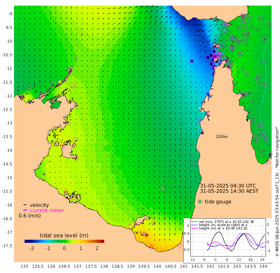 26cm/s 40T +3cm/s rms + 7cm/s -42T. ARA-GOC87 57m 22cm/s -10T +3cm/s rms + 2cm/s -2T. ARA-GOC87 60m 33cm/s 39T +2cm/s rms + 3cm/s 61T. ARA-GOC87 47m -18cm Daru -7cm Bobo Island -15cm Meer Island Barge -15cm Bramble Cay -18cm Unnamed Cay -13cm Pearce Cay -13cm Stephens Island -17cm Merrie England Shoals -23cm Mutacomal Reef -6cm Darnley Island Barge -21cm East Cay -8cm Yorke Island Barge -23cm Rennel Island -6cm Aureed Island -31cm Dungeness Reef -32cm Zagai Island -55cm Yam Island -77cm Dauan Island -66cm Saibai Island -79cm Phipi Reef -42cm Warrior Reef - West -102cm Mabuiag Island Barge -20cm Half Way Island -30cm Coconut Island -25cm Dugong Islet -39cm Poll Island -51cm Kirkcaldie Reef -57cm Suarji Island -35cm Sue Islet -223cm Hawkesbury Island -87cm Alert Patches -77cm Twin Island -197cm Badu Island -77cm St Pauls (Moa Island) -170cm Kubin (Moa Island) -110cm Ince Point -133cm Thursday Island -126cm Nardana Patches -163cm Turtle Head -184cm Round Island -211cm Goods Island -234cm Booby Island -220cm White Rocks Area -186cm Carpentaria -79cm Papou Point -239cm Bampfield Head -201cm Crab Island -220cm Red Wallis Island -191cm Packe Island -26cm Harrington Reef -226cm Herald Camp -12cm Sharp Point -157cm Red Island Point -113cm Possession Island -55cm Alpha Rock -55cm Frederick Point -25cm Wyborn Reef Light -30cm Tetley Island -24cm Triangle Reef -34cm Turtle Head Island -26cm Maclennan Cay -31cm Raine Island -14cm Mcsweeny Reef -14cm Collette Reef -21cm Shadwell Reef -11cm Hannibal Island -21cm Round Point -185cm Vrilya Point -22cm Cape Grenville -24cm Hicks Island -32cm Sir Charles Hardy Island -6cm Harvey Island -25cm Kay Reef -26cm Rocky Island -29cm Chapman Island -28cm Ham Reef -26cm Jubilee Reef -20cm Night Island -30cm Unnamed Reef No. 3 -26cm Morris Island -31cm 1st 3 Mile Opening -27cm Creech Reef -12cm Fife Island -23cm Eden Reef -25cm Stanley Island -20cm Normanby River -23cm Yabooma Island -16cm Hutchison River -8cm Elcho Island -13cm North West Crocodile Island 34cm Cape Wessel 18cm Stevens Island 59cm Guluwuru Island 13cm Hopeful Bay 22cm Auster Point 24cm Two Island Bay 32cm Cadell Strait 154cm Mallison Island 52cm Melville Bay (Gove Harbour) 53cm Truant Island 50cm Cape Arnhem 57cm Cape Grey 63cm Hawk Island 85cm Milner Bay (Groote Eylandt) 78cm Cape Beatrice 93cm West Island 89cm Centre Island 88cm Mornington Island 95cm West Wellesley Islands 93cm Bountiful Island 136cm Albert River Mouth 172cm Sweers Island 111cm Karumba 17cm Nassau River Offshore -45cm Christmas Creek -100cm Archer River -115cm Boyd Point -133cm Weipa (Humbug Point) -121cm Pennefather River -168cm Cullen Point