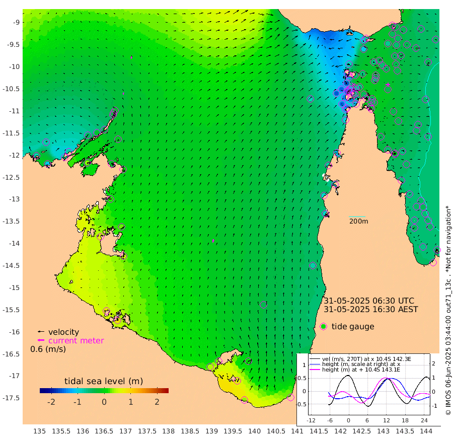 20cm/s 6T +3cm/s rms + 7cm/s -42T. ARA-GOC87 57m 32cm/s 10T +3cm/s rms + 2cm/s -2T. ARA-GOC87 60m 19cm/s 18T +2cm/s rms + 3cm/s 61T. ARA-GOC87 47m -46cm Daru -43cm Bobo Island -45cm Meer Island Barge -51cm Bramble Cay -47cm Unnamed Cay -54cm Pearce Cay -44cm Stephens Island -45cm Merrie England Shoals -48cm Mutacomal Reef -40cm Darnley Island Barge -52cm East Cay -39cm Yorke Island Barge -48cm Rennel Island -42cm Aureed Island -57cm Dungeness Reef -52cm Zagai Island -64cm Yam Island -101cm Dauan Island -82cm Saibai Island -111cm Phipi Reef -73cm Warrior Reef - West -84cm Mabuiag Island Barge -42cm Half Way Island -50cm Coconut Island -44cm Dugong Islet -54cm Poll Island -57cm Kirkcaldie Reef -62cm Suarji Island -44cm Sue Islet -165cm Hawkesbury Island -74cm Alert Patches -68cm Twin Island -158cm Badu Island -67cm St Pauls (Moa Island) -132cm Kubin (Moa Island) -87cm Ince Point -99cm Thursday Island -97cm Nardana Patches -130cm Turtle Head -132cm Round Island -160cm Goods Island -158cm Booby Island -153cm White Rocks Area -86cm Carpentaria -64cm Papou Point -148cm Bampfield Head -131cm Crab Island -151cm Red Wallis Island -149cm Packe Island -39cm Harrington Reef -158cm Herald Camp -8cm Sharp Point -120cm Red Island Point -83cm Possession Island -47cm Alpha Rock -57cm Frederick Point -44cm Wyborn Reef Light -45cm Tetley Island -51cm Triangle Reef -44cm Turtle Head Island -50cm Maclennan Cay -54cm Raine Island -41cm Mcsweeny Reef -42cm Collette Reef -47cm Shadwell Reef -44cm Hannibal Island -55cm Round Point -105cm Vrilya Point -47cm Cape Grenville -51cm Hicks Island -63cm Sir Charles Hardy Island -13cm Harvey Island -51cm Kay Reef -54cm Rocky Island -61cm Chapman Island -52cm Ham Reef -51cm Jubilee Reef -45cm Night Island -54cm Unnamed Reef No. 3 -53cm Morris Island -52cm 1st 3 Mile Opening -51cm Creech Reef -42cm Fife Island -62cm Eden Reef -50cm Stanley Island -51cm Normanby River -87cm Yabooma Island -106cm Hutchison River -78cm Elcho Island -79cm North West Crocodile Island -18cm Cape Wessel -52cm Stevens Island -17cm Guluwuru Island -52cm Hopeful Bay -30cm Auster Point -29cm Two Island Bay -69cm Cadell Strait 30cm Mallison Island -17cm Melville Bay (Gove Harbour) -14cm Truant Island 0cm Cape Arnhem 22cm Cape Grey 26cm Hawk Island 69cm Milner Bay (Groote Eylandt) 60cm Cape Beatrice 97cm West Island 95cm Centre Island 35cm Mornington Island 42cm West Wellesley Islands 12cm Bountiful Island 32cm Albert River Mouth 72cm Sweers Island 18cm Karumba -38cm Nassau River Offshore -78cm Christmas Creek -97cm Archer River -92cm Boyd Point -117cm Weipa (Humbug Point) -76cm Pennefather River -106cm Cullen Point