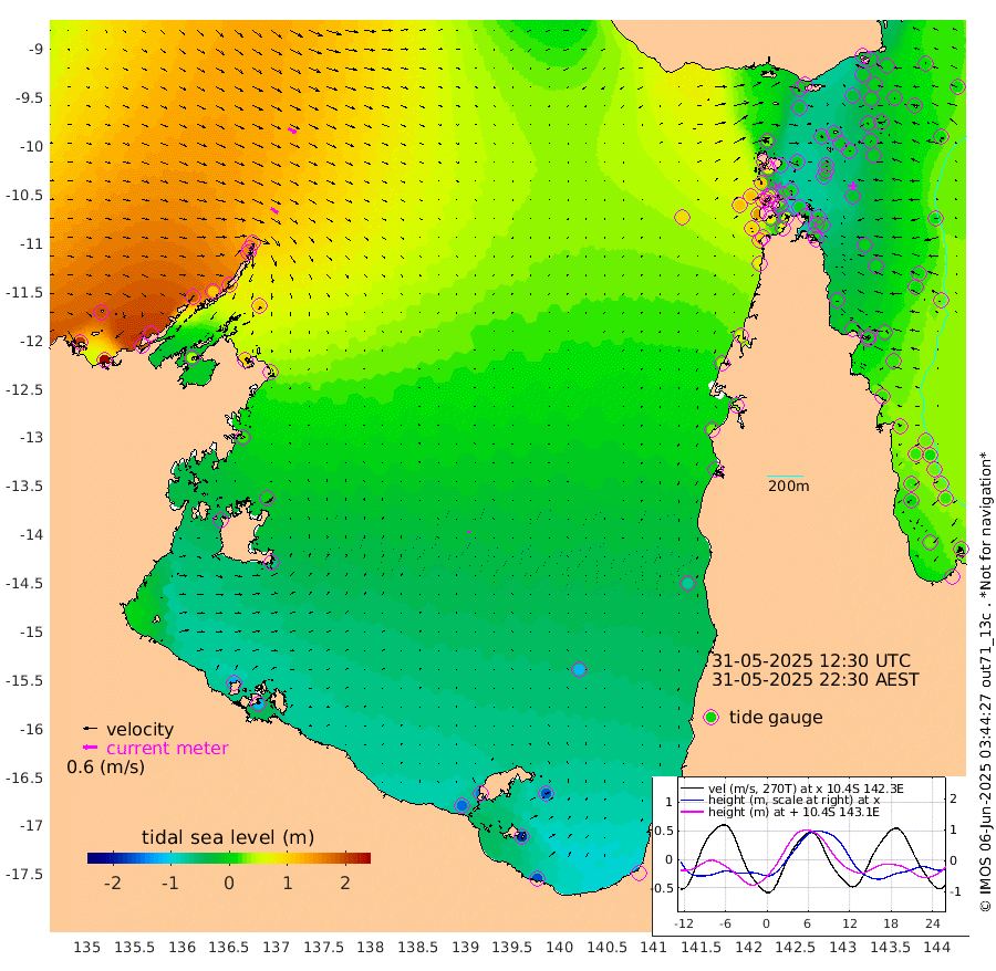 36cm/s 123T +3cm/s rms + 7cm/s -42T. ARA-GOC87 57m 9cm/s 27T +3cm/s rms + 2cm/s -2T. ARA-GOC87 60m 38cm/s 118T +2cm/s rms + 3cm/s 61T. ARA-GOC87 47m -18cm Daru -8cm Bobo Island 13cm Meer Island Barge 11cm Bramble Cay -2cm Unnamed Cay -1cm Pearce Cay -3cm Stephens Island -3cm Merrie England Shoals -11cm Mutacomal Reef -4cm Darnley Island Barge 15cm East Cay -11cm Yorke Island Barge -7cm Rennel Island -14cm Aureed Island -14cm Dungeness Reef -14cm Zagai Island -11cm Yam Island -6cm Dauan Island -6cm Saibai Island -16cm Phipi Reef -24cm Warrior Reef - West 23cm Mabuiag Island Barge -11cm Half Way Island -6cm Coconut Island -16cm Dugong Islet -11cm Poll Island -16cm Kirkcaldie Reef -11cm Suarji Island -16cm Sue Islet 111cm Hawkesbury Island 5cm Alert Patches 4cm Twin Island 92cm Badu Island -2cm St Pauls (Moa Island) 73cm Kubin (Moa Island) 23cm Ince Point 37cm Thursday Island 34cm Nardana Patches 58cm Turtle Head 90cm Round Island 101cm Goods Island 116cm Booby Island 113cm White Rocks Area 92cm Carpentaria 15cm Papou Point 144cm Bampfield Head 92cm Crab Island 104cm Red Wallis Island 77cm Packe Island -16cm Harrington Reef 101cm Herald Camp -17cm Sharp Point 56cm Red Island Point 38cm Possession Island -1cm Alpha Rock -4cm Frederick Point 0cm Wyborn Reef Light 0cm Tetley Island 15cm Triangle Reef 9cm Turtle Head Island 13cm Maclennan Cay 25cm Raine Island -6cm Mcsweeny Reef -2cm Collette Reef 11cm Shadwell Reef -1cm Hannibal Island 14cm Round Point 78cm Vrilya Point 8cm Cape Grenville 13cm Hicks Island 17cm Sir Charles Hardy Island 1cm Harvey Island 18cm Kay Reef 20cm Rocky Island 28cm Chapman Island 24cm Ham Reef 21cm Jubilee Reef 12cm Night Island 23cm Unnamed Reef No. 3 21cm Morris Island 24cm 1st 3 Mile Opening 19cm Creech Reef 7cm Fife Island 29cm Eden Reef 18cm Stanley Island 20cm Normanby River 209cm Yabooma Island 239cm Hutchison River 205cm Elcho Island 192cm North West Crocodile Island 139cm Cape Wessel 182cm Stevens Island 109cm Guluwuru Island 167cm Hopeful Bay 153cm Auster Point 152cm Two Island Bay 180cm Cadell Strait 39cm Mallison Island 98cm Melville Bay (Gove Harbour) 111cm Truant Island 57cm Cape Arnhem 17cm Cape Grey -4cm Hawk Island -45cm Milner Bay (Groote Eylandt) -64cm Cape Beatrice -123cm West Island -117cm Centre Island -148cm Mornington Island -152cm West Wellesley Islands -158cm Bountiful Island -168cm Albert River Mouth -182cm Sweers Island -170cm Karumba -118cm Nassau River Offshore -70cm Christmas Creek 2cm Archer River 25cm Boyd Point 33cm Weipa (Humbug Point) 35cm Pennefather River 65cm Cullen Point