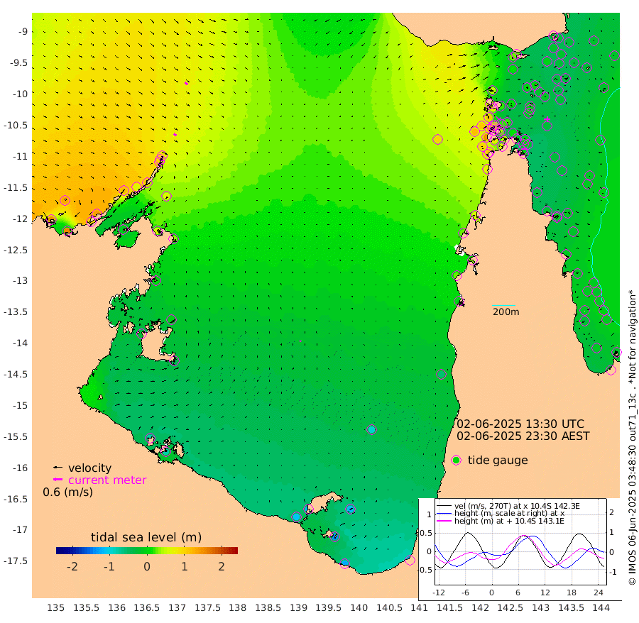 20cm/s 130T +3cm/s rms + 7cm/s -42T. ARA-GOC87 57m 11cm/s 17T +3cm/s rms + 2cm/s -2T. ARA-GOC87 60m 23cm/s 124T +2cm/s rms + 3cm/s 61T. ARA-GOC87 47m -28cm Daru -29cm Bobo Island -17cm Meer Island Barge -22cm Bramble Cay -21cm Unnamed Cay -29cm Pearce Cay -30cm Stephens Island -28cm Merrie England Shoals -22cm Mutacomal Reef -29cm Darnley Island Barge -21cm East Cay -27cm Yorke Island Barge -23cm Rennel Island -30cm Aureed Island -18cm Dungeness Reef 3cm Zagai Island 7cm Yam Island 30cm Dauan Island 27cm Saibai Island 14cm Phipi Reef -5cm Warrior Reef - West 50cm Mabuiag Island Barge -27cm Half Way Island -15cm Coconut Island -24cm Dugong Islet -5cm Poll Island -13cm Kirkcaldie Reef 12cm Suarji Island -6cm Sue Islet 109cm Hawkesbury Island 21cm Alert Patches 17cm Twin Island 96cm Badu Island 20cm St Pauls (Moa Island) 80cm Kubin (Moa Island) 39cm Ince Point 52cm Thursday Island 50cm Nardana Patches 67cm Turtle Head 98cm Round Island 100cm Goods Island 114cm Booby Island 112cm White Rocks Area 95cm Carpentaria 27cm Papou Point 145cm Bampfield Head 88cm Crab Island 102cm Red Wallis Island 79cm Packe Island -27cm Harrington Reef 110cm Herald Camp -4cm Sharp Point 54cm Red Island Point 49cm Possession Island 13cm Alpha Rock -2cm Frederick Point -11cm Wyborn Reef Light -6cm Tetley Island -9cm Triangle Reef -9cm Turtle Head Island -14cm Maclennan Cay -7cm Raine Island -27cm Mcsweeny Reef -25cm Collette Reef -15cm Shadwell Reef -28cm Hannibal Island -22cm Round Point 73cm Vrilya Point -21cm Cape Grenville -18cm Hicks Island -11cm Sir Charles Hardy Island -8cm Harvey Island -17cm Kay Reef -13cm Rocky Island -8cm Chapman Island -9cm Ham Reef -11cm Jubilee Reef -17cm Night Island -12cm Unnamed Reef No. 3 -14cm Morris Island -4cm 1st 3 Mile Opening -14cm Creech Reef -30cm Fife Island -14cm Eden Reef -16cm Stanley Island -21cm Normanby River 145cm Yabooma Island 157cm Hutchison River 136cm Elcho Island 128cm North West Crocodile Island 87cm Cape Wessel 118cm Stevens Island 60cm Guluwuru Island 108cm Hopeful Bay 100cm Auster Point 98cm Two Island Bay 101cm Cadell Strait -14cm Mallison Island 56cm Melville Bay (Gove Harbour) 66cm Truant Island 31cm Cape Arnhem 7cm Cape Grey -7cm Hawk Island -28cm Milner Bay (Groote Eylandt) -45cm Cape Beatrice -81cm West Island -75cm Centre Island -113cm Mornington Island -111cm West Wellesley Islands -114cm Bountiful Island -122cm Albert River Mouth -137cm Sweers Island -130cm Karumba -96cm Nassau River Offshore -57cm Christmas Creek -1cm Archer River 25cm Boyd Point 32cm Weipa (Humbug Point) 29cm Pennefather River 66cm Cullen Point