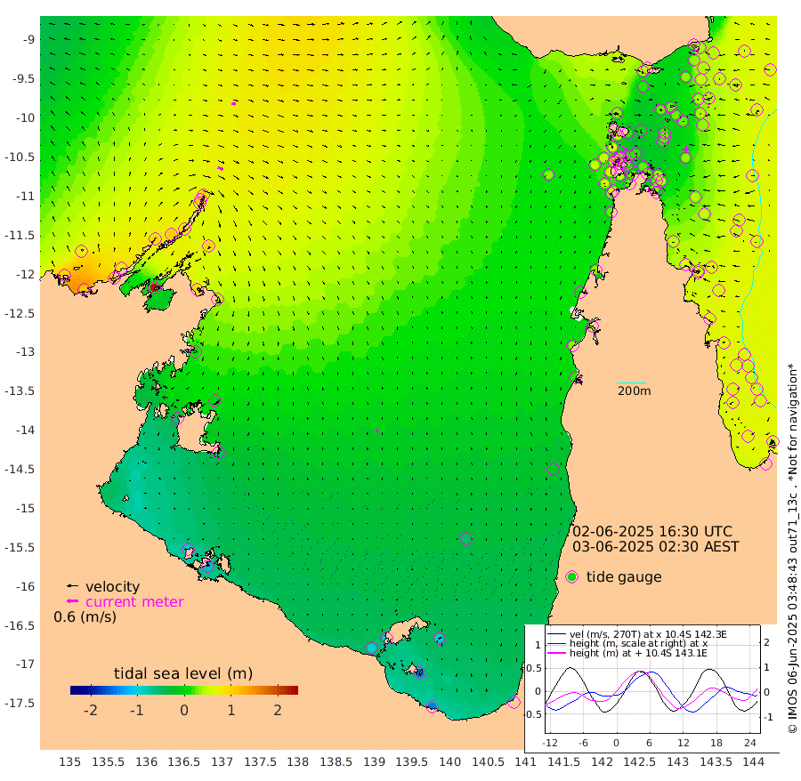 28cm/s 110T +3cm/s rms + 7cm/s -42T. ARA-GOC87 57m 20cm/s 163T +3cm/s rms + 2cm/s -2T. ARA-GOC87 60m 22cm/s 101T +2cm/s rms + 3cm/s 61T. ARA-GOC87 47m 35cm Daru 40cm Bobo Island 54cm Meer Island Barge 54cm Bramble Cay 45cm Unnamed Cay 45cm Pearce Cay 46cm Stephens Island 41cm Merrie England Shoals 37cm Mutacomal Reef 50cm Darnley Island Barge 58cm East Cay 44cm Yorke Island Barge 38cm Rennel Island 39cm Aureed Island 29cm Dungeness Reef 27cm Zagai Island 27cm Yam Island 45cm Dauan Island 46cm Saibai Island 21cm Phipi Reef 33cm Warrior Reef - West 30cm Mabuiag Island Barge 32cm Half Way Island 29cm Coconut Island 31cm Dugong Islet 24cm Poll Island 19cm Kirkcaldie Reef 13cm Suarji Island 28cm Sue Islet 66cm Hawkesbury Island 17cm Alert Patches 21cm Twin Island 50cm Badu Island 17cm St Pauls (Moa Island) 49cm Kubin (Moa Island) 24cm Ince Point 27cm Thursday Island 26cm Nardana Patches 39cm Turtle Head 50cm Round Island 53cm Goods Island 51cm Booby Island 49cm White Rocks Area 36cm Carpentaria 19cm Papou Point 74cm Bampfield Head 35cm Crab Island 51cm Red Wallis Island 51cm Packe Island 23cm Harrington Reef 70cm Herald Camp -6cm Sharp Point 30cm Red Island Point 24cm Possession Island 25cm Alpha Rock 25cm Frederick Point 40cm Wyborn Reef Light 39cm Tetley Island 53cm Triangle Reef 36cm Turtle Head Island 52cm Maclennan Cay 54cm Raine Island 43cm Mcsweeny Reef 46cm Collette Reef 51cm Shadwell Reef 48cm Hannibal Island 57cm Round Point 24cm Vrilya Point 49cm Cape Grenville 54cm Hicks Island 71cm Sir Charles Hardy Island 15cm Harvey Island 57cm Kay Reef 58cm Rocky Island 67cm Chapman Island 62cm Ham Reef 58cm Jubilee Reef 47cm Night Island 60cm Unnamed Reef No. 3 56cm Morris Island 53cm 1st 3 Mile Opening 55cm Creech Reef 59cm Fife Island 69cm Eden Reef 57cm Stanley Island 62cm Normanby River 99cm Yabooma Island 107cm Hutchison River 82cm Elcho Island 72cm North West Crocodile Island 99cm Cape Wessel 96cm Stevens Island 107cm Guluwuru Island 91cm Hopeful Bay 90cm Auster Point 95cm Two Island Bay 122cm Cadell Strait 218cm Mallison Island 89cm Melville Bay (Gove Harbour) 102cm Truant Island 61cm Cape Arnhem 14cm Cape Grey -4cm Hawk Island -54cm Milner Bay (Groote Eylandt) -64cm Cape Beatrice -112cm West Island -115cm Centre Island -102cm Mornington Island -97cm West Wellesley Islands -102cm Bountiful Island -145cm Albert River Mouth -160cm Sweers Island -142cm Karumba -56cm Nassau River Offshore -11cm Christmas Creek 16cm Archer River 31cm Boyd Point 35cm Weipa (Humbug Point) 7cm Pennefather River 36cm Cullen Point