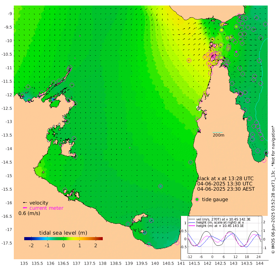 6cm/s -147T +3cm/s rms + 7cm/s -42T. ARA-GOC87 57m 12cm/s 17T +3cm/s rms + 2cm/s -2T. ARA-GOC87 60m 8cm/s -176T +2cm/s rms + 3cm/s 61T. ARA-GOC87 47m -8cm Daru -16cm Bobo Island -27cm Meer Island Barge -31cm Bramble Cay -15cm Unnamed Cay -21cm Pearce Cay -23cm Stephens Island -25cm Merrie England Shoals -8cm Mutacomal Reef -25cm Darnley Island Barge -34cm East Cay -13cm Yorke Island Barge -8cm Rennel Island -12cm Aureed Island 10cm Dungeness Reef 36cm Zagai Island 41cm Yam Island 56cm Dauan Island 50cm Saibai Island 46cm Phipi Reef 29cm Warrior Reef - West 69cm Mabuiag Island Barge -7cm Half Way Island 8cm Coconut Island 4cm Dugong Islet 26cm Poll Island 23cm Kirkcaldie Reef 57cm Suarji Island 24cm Sue Islet 87cm Hawkesbury Island 55cm Alert Patches 51cm Twin Island 87cm Badu Island 61cm St Pauls (Moa Island) 80cm Kubin (Moa Island) 65cm Ince Point 73cm Thursday Island 72cm Nardana Patches 76cm Turtle Head 90cm Round Island 88cm Goods Island 100cm Booby Island 99cm White Rocks Area 96cm Carpentaria 56cm Papou Point 122cm Bampfield Head 77cm Crab Island 90cm Red Wallis Island 74cm Packe Island 5cm Harrington Reef 97cm Herald Camp 15cm Sharp Point 59cm Red Island Point 68cm Possession Island 40cm Alpha Rock 28cm Frederick Point 2cm Wyborn Reef Light 9cm Tetley Island -18cm Triangle Reef 8cm Turtle Head Island -20cm Maclennan Cay -25cm Raine Island -18cm Mcsweeny Reef -23cm Collette Reef -25cm Shadwell Reef -28cm Hannibal Island -35cm Round Point 68cm Vrilya Point -28cm Cape Grenville -27cm Hicks Island -23cm Sir Charles Hardy Island -8cm Harvey Island -34cm Kay Reef -31cm Rocky Island -34cm Chapman Island -31cm Ham Reef -29cm Jubilee Reef -28cm Night Island -33cm Unnamed Reef No. 3 -32cm Morris Island -16cm 1st 3 Mile Opening -28cm Creech Reef -47cm Fife Island -40cm Eden Reef -33cm Stanley Island -41cm Normanby River 15cm Yabooma Island 12cm Hutchison River 9cm Elcho Island 7cm North West Crocodile Island -4cm Cape Wessel -5cm Stevens Island -18cm Guluwuru Island -10cm Hopeful Bay 2cm Auster Point -3cm Two Island Bay -28cm Cadell Strait -133cm Mallison Island -18cm Melville Bay (Gove Harbour) -14cm Truant Island -14cm Cape Arnhem -10cm Cape Grey -18cm Hawk Island -7cm Milner Bay (Groote Eylandt) -16cm Cape Beatrice -15cm West Island -9cm Centre Island -53cm Mornington Island -47cm West Wellesley Islands -56cm Bountiful Island -64cm Albert River Mouth -78cm Sweers Island -73cm Karumba -55cm Nassau River Offshore -31cm Christmas Creek -1cm Archer River 25cm Boyd Point 26cm Weipa (Humbug Point) 28cm Pennefather River 59cm Cullen Point