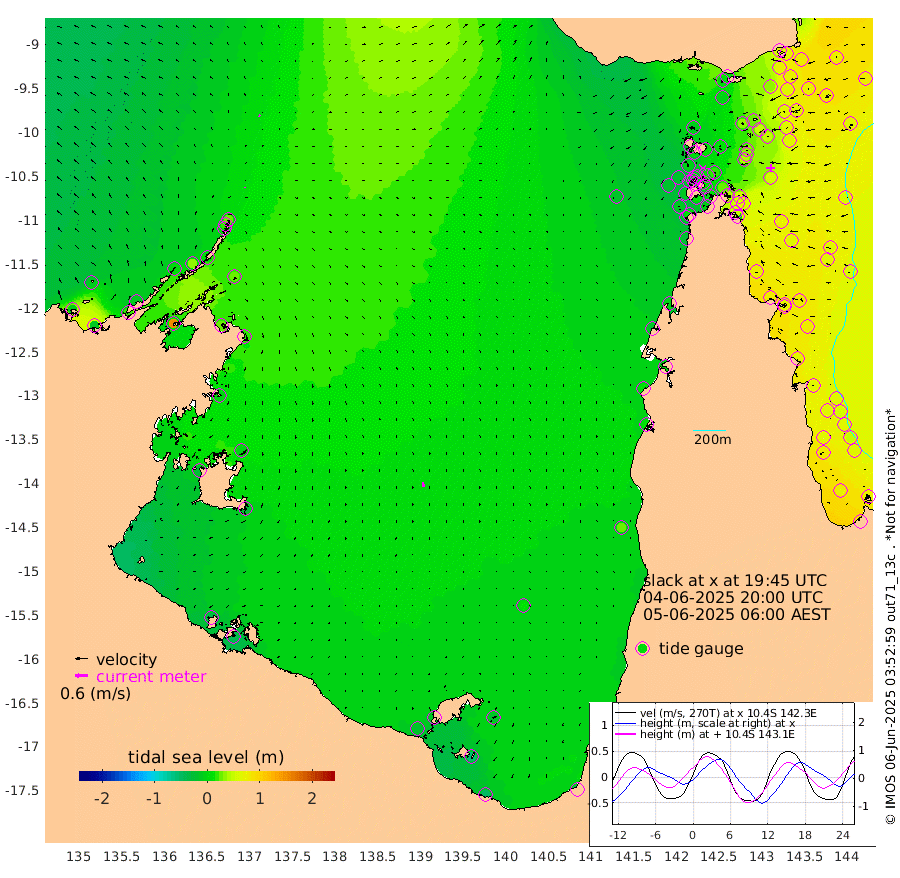 3cm/s -20T +3cm/s rms + 7cm/s -42T. ARA-GOC87 57m 21cm/s 172T +3cm/s rms + 2cm/s -2T. ARA-GOC87 60m 7cm/s -59T +2cm/s rms + 3cm/s 61T. ARA-GOC87 47m 64cm Daru 67cm Bobo Island 64cm Meer Island Barge 75cm Bramble Cay 72cm Unnamed Cay 66cm Pearce Cay 74cm Stephens Island 76cm Merrie England Shoals 69cm Mutacomal Reef 71cm Darnley Island Barge 76cm East Cay 64cm Yorke Island Barge 65cm Rennel Island 62cm Aureed Island 46cm Dungeness Reef 23cm Zagai Island 31cm Yam Island 2cm Dauan Island 8cm Saibai Island -2cm Phipi Reef 32cm Warrior Reef - West -9cm Mabuiag Island Barge 61cm Half Way Island 49cm Coconut Island 59cm Dugong Islet 36cm Poll Island 41cm Kirkcaldie Reef 11cm Suarji Island 35cm Sue Islet -3cm Hawkesbury Island 9cm Alert Patches 18cm Twin Island -20cm Badu Island 8cm St Pauls (Moa Island) 3cm Kubin (Moa Island) 4cm Ince Point -2cm Thursday Island -2cm Nardana Patches -4cm Turtle Head -2cm Round Island -12cm Goods Island -22cm Booby Island -18cm White Rocks Area -18cm Carpentaria 10cm Papou Point -11cm Bampfield Head -21cm Crab Island -10cm Red Wallis Island 10cm Packe Island 58cm Harrington Reef 13cm Herald Camp 0cm Sharp Point -1cm Red Island Point 2cm Possession Island 29cm Alpha Rock 38cm Frederick Point 62cm Wyborn Reef Light 57cm Tetley Island 57cm Triangle Reef 52cm Turtle Head Island 64cm Maclennan Cay 55cm Raine Island 68cm Mcsweeny Reef 67cm Collette Reef 60cm Shadwell Reef 74cm Hannibal Island 80cm Round Point -23cm Vrilya Point 74cm Cape Grenville 71cm Hicks Island 81cm Sir Charles Hardy Island 23cm Harvey Island 76cm Kay Reef 66cm Rocky Island 67cm Chapman Island 65cm Ham Reef 63cm Jubilee Reef 60cm Night Island 67cm Unnamed Reef No. 3 67cm Morris Island 52cm 1st 3 Mile Opening 63cm Creech Reef 77cm Fife Island 75cm Eden Reef 70cm Stanley Island 80cm Normanby River -4cm Yabooma Island -9cm Hutchison River -14cm Elcho Island -14cm North West Crocodile Island 23cm Cape Wessel 5cm Stevens Island 32cm Guluwuru Island 9cm Hopeful Bay 5cm Auster Point 16cm Two Island Bay 19cm Cadell Strait 151cm Mallison Island 24cm Melville Bay (Gove Harbour) 27cm Truant Island 16cm Cape Arnhem -5cm Cape Grey -5cm Hawk Island -30cm Milner Bay (Groote Eylandt) -25cm Cape Beatrice -35cm West Island -42cm Centre Island -14cm Mornington Island -16cm West Wellesley Islands -16cm Bountiful Island -50cm Albert River Mouth -59cm Sweers Island -38cm Karumba 14cm Nassau River Offshore 27cm Christmas Creek 11cm Archer River 9cm Boyd Point 9cm Weipa (Humbug Point) -16cm Pennefather River -3cm Cullen Point