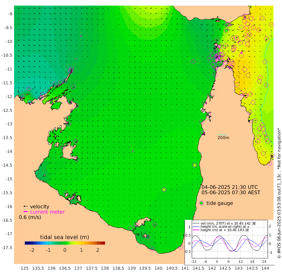 13cm/s -71T +3cm/s rms + 7cm/s -42T. ARA-GOC87 57m 19cm/s 172T +3cm/s rms + 2cm/s -2T. ARA-GOC87 60m 17cm/s -79T +2cm/s rms + 3cm/s 61T. ARA-GOC87 47m 79cm Daru 80cm Bobo Island 50cm Meer Island Barge 67cm Bramble Cay 76cm Unnamed Cay 77cm Pearce Cay 78cm Stephens Island 80cm Merrie England Shoals 84cm Mutacomal Reef 70cm Darnley Island Barge 62cm East Cay 72cm Yorke Island Barge 77cm Rennel Island 75cm Aureed Island 68cm Dungeness Reef 47cm Zagai Island 59cm Yam Island 14cm Dauan Island 17cm Saibai Island 22cm Phipi Reef 55cm Warrior Reef - West 7cm Mabuiag Island Barge 79cm Half Way Island 70cm Coconut Island 80cm Dugong Islet 63cm Poll Island 71cm Kirkcaldie Reef 44cm Suarji Island 57cm Sue Islet 1cm Hawkesbury Island 39cm Alert Patches 49cm Twin Island -16cm Badu Island 43cm St Pauls (Moa Island) 16cm Kubin (Moa Island) 30cm Ince Point 21cm Thursday Island 22cm Nardana Patches 9cm Turtle Head 6cm Round Island -10cm Goods Island -22cm Booby Island -17cm White Rocks Area -15cm Carpentaria 39cm Papou Point -21cm Bampfield Head -18cm Crab Island -7cm Red Wallis Island 21cm Packe Island 86cm Harrington Reef 15cm Herald Camp 15cm Sharp Point 16cm Red Island Point 27cm Possession Island 53cm Alpha Rock 66cm Frederick Point 77cm Wyborn Reef Light 75cm Tetley Island 49cm Triangle Reef 73cm Turtle Head Island 54cm Maclennan Cay 34cm Raine Island 72cm Mcsweeny Reef 66cm Collette Reef 46cm Shadwell Reef 73cm Hannibal Island 71cm Round Point -16cm Vrilya Point 67cm Cape Grenville 60cm Hicks Island 63cm Sir Charles Hardy Island 21cm Harvey Island 59cm Kay Reef 47cm Rocky Island 41cm Chapman Island 41cm Ham Reef 42cm Jubilee Reef 46cm Night Island 44cm Unnamed Reef No. 3 48cm Morris Island 32cm 1st 3 Mile Opening 44cm Creech Reef 55cm Fife Island 49cm Eden Reef 49cm Stanley Island 61cm Normanby River -67cm Yabooma Island -76cm Hutchison River -71cm Elcho Island -63cm North West Crocodile Island -29cm Cape Wessel -56cm Stevens Island -24cm Guluwuru Island -50cm Hopeful Bay -47cm Auster Point -33cm Two Island Bay -46cm Cadell Strait 32cm Mallison Island -26cm Melville Bay (Gove Harbour) -27cm Truant Island -18cm Cape Arnhem -23cm Cape Grey -12cm Hawk Island -23cm Milner Bay (Groote Eylandt) -12cm Cape Beatrice -1cm West Island -5cm Centre Island 14cm Mornington Island 8cm West Wellesley Islands 4cm Bountiful Island -25cm Albert River Mouth -32cm Sweers Island -6cm Karumba 34cm Nassau River Offshore 36cm Christmas Creek 10cm Archer River 6cm Boyd Point 1cm Weipa (Humbug Point) -9cm Pennefather River -2cm Cullen Point