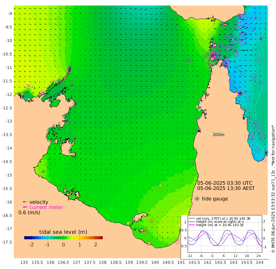 3cm/s 179T +3cm/s rms + 7cm/s -42T. ARA-GOC87 57m 9cm/s -56T +3cm/s rms + 2cm/s -2T. ARA-GOC87 60m 3cm/s 114T +2cm/s rms + 3cm/s 61T. ARA-GOC87 47m -96cm Daru -102cm Bobo Island -75cm Meer Island Barge -90cm Bramble Cay -101cm Unnamed Cay -96cm Pearce Cay -102cm Stephens Island -102cm Merrie England Shoals -101cm Mutacomal Reef -94cm Darnley Island Barge -87cm East Cay -94cm Yorke Island Barge -100cm Rennel Island -98cm Aureed Island -84cm Dungeness Reef -63cm Zagai Island -67cm Yam Island -8cm Dauan Island -18cm Saibai Island -10cm Phipi Reef -58cm Warrior Reef - West -14cm Mabuiag Island Barge -97cm Half Way Island -95cm Coconut Island -98cm Dugong Islet -77cm Poll Island -83cm Kirkcaldie Reef -70cm Suarji Island -72cm Sue Islet -2cm Hawkesbury Island -55cm Alert Patches -65cm Twin Island 4cm Badu Island -54cm St Pauls (Moa Island) -23cm Kubin (Moa Island) -41cm Ince Point -33cm Thursday Island -34cm Nardana Patches -22cm Turtle Head -22cm Round Island -7cm Goods Island 1cm Booby Island -10cm White Rocks Area -26cm Carpentaria -54cm Papou Point -34cm Bampfield Head 8cm Crab Island -7cm Red Wallis Island -24cm Packe Island -110cm Harrington Reef -24cm Herald Camp -12cm Sharp Point -18cm Red Island Point -45cm Possession Island -70cm Alpha Rock -83cm Frederick Point -101cm Wyborn Reef Light -96cm Tetley Island -69cm Triangle Reef -98cm Turtle Head Island -79cm Maclennan Cay -61cm Raine Island -96cm Mcsweeny Reef -90cm Collette Reef -69cm Shadwell Reef -98cm Hannibal Island -94cm Round Point 11cm Vrilya Point -91cm Cape Grenville -85cm Hicks Island -94cm Sir Charles Hardy Island -28cm Harvey Island -86cm Kay Reef -71cm Rocky Island -66cm Chapman Island -67cm Ham Reef -69cm Jubilee Reef -66cm Night Island -70cm Unnamed Reef No. 3 -75cm Morris Island -65cm 1st 3 Mile Opening -72cm Creech Reef -75cm Fife Island -78cm Eden Reef -76cm Stanley Island -86cm Normanby River 42cm Yabooma Island 37cm Hutchison River 42cm Elcho Island 47cm North West Crocodile Island -14cm Cape Wessel 28cm Stevens Island -26cm Guluwuru Island 27cm Hopeful Bay 9cm Auster Point 10cm Two Island Bay 29cm Cadell Strait -68cm Mallison Island -12cm Melville Bay (Gove Harbour) -19cm Truant Island -14cm Cape Arnhem -2cm Cape Grey 8cm Hawk Island 18cm Milner Bay (Groote Eylandt) 20cm Cape Beatrice 21cm West Island 22cm Centre Island 35cm Mornington Island 32cm West Wellesley Islands 49cm Bountiful Island 90cm Albert River Mouth 102cm Sweers Island 89cm Karumba 29cm Nassau River Offshore 8cm Christmas Creek 9cm Archer River -5cm Boyd Point 3cm Weipa (Humbug Point) 17cm Pennefather River 1cm Cullen Point
