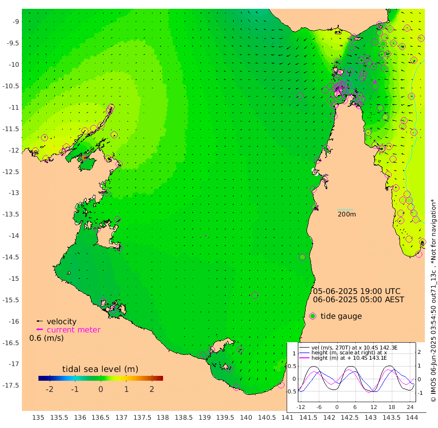 2cm/s 65T +3cm/s rms + 7cm/s -42T. ARA-GOC87 57m 13cm/s -177T +3cm/s rms + 2cm/s -2T. ARA-GOC87 60m 2cm/s -11T +2cm/s rms + 3cm/s 61T. ARA-GOC87 47m 13cm Daru 10cm Bobo Island 37cm Meer Island Barge 39cm Bramble Cay 27cm Unnamed Cay 12cm Pearce Cay 25cm Stephens Island 29cm Merrie England Shoals 18cm Mutacomal Reef 27cm Darnley Island Barge 44cm East Cay 16cm Yorke Island Barge 15cm Rennel Island 7cm Aureed Island -2cm Dungeness Reef -12cm Zagai Island -6cm Yam Island -1cm Dauan Island 1cm Saibai Island -16cm Phipi Reef -4cm Warrior Reef - West -13cm Mabuiag Island Barge 8cm Half Way Island -2cm Coconut Island 4cm Dugong Islet -10cm Poll Island -8cm Kirkcaldie Reef -27cm Suarji Island -7cm Sue Islet 7cm Hawkesbury Island -24cm Alert Patches -21cm Twin Island -4cm Badu Island -27cm St Pauls (Moa Island) 0cm Kubin (Moa Island) -18cm Ince Point -18cm Thursday Island -18cm Nardana Patches -6cm Turtle Head 3cm Round Island 3cm Goods Island -1cm Booby Island 0cm White Rocks Area -12cm Carpentaria -22cm Papou Point 10cm Bampfield Head -6cm Crab Island 2cm Red Wallis Island 7cm Packe Island -6cm Harrington Reef 22cm Herald Camp -12cm Sharp Point -11cm Red Island Point -21cm Possession Island -7cm Alpha Rock -11cm Frederick Point 12cm Wyborn Reef Light 8cm Tetley Island 31cm Triangle Reef -4cm Turtle Head Island 35cm Maclennan Cay 42cm Raine Island 22cm Mcsweeny Reef 28cm Collette Reef 37cm Shadwell Reef 31cm Hannibal Island 41cm Round Point -15cm Vrilya Point 38cm Cape Grenville 39cm Hicks Island 54cm Sir Charles Hardy Island 11cm Harvey Island 48cm Kay Reef 47cm Rocky Island 52cm Chapman Island 49cm Ham Reef 45cm Jubilee Reef 37cm Night Island 48cm Unnamed Reef No. 3 46cm Morris Island 39cm 1st 3 Mile Opening 42cm Creech Reef 51cm Fife Island 54cm Eden Reef 48cm Stanley Island 52cm Normanby River 66cm Yabooma Island 63cm Hutchison River 53cm Elcho Island 49cm North West Crocodile Island 52cm Cape Wessel 61cm Stevens Island 55cm Guluwuru Island 61cm Hopeful Bay 45cm Auster Point 50cm Two Island Bay 65cm Cadell Strait 162cm Mallison Island 48cm Melville Bay (Gove Harbour) 51cm Truant Island 31cm Cape Arnhem 8cm Cape Grey 1cm Hawk Island -21cm Milner Bay (Groote Eylandt) -21cm Cape Beatrice -42cm West Island -51cm Centre Island -20cm Mornington Island -17cm West Wellesley Islands -1cm Bountiful Island -19cm Albert River Mouth -34cm Sweers Island -20cm Karumba 8cm Nassau River Offshore 21cm Christmas Creek 15cm Archer River 13cm Boyd Point 22cm Weipa (Humbug Point) -15cm Pennefather River 5cm Cullen Point
