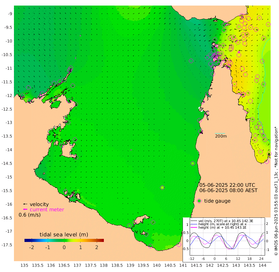 10cm/s -57T +3cm/s rms + 7cm/s -42T. ARA-GOC87 57m 13cm/s 178T +3cm/s rms + 2cm/s -2T. ARA-GOC87 60m 13cm/s -65T +2cm/s rms + 3cm/s 61T. ARA-GOC87 47m 71cm Daru 74cm Bobo Island 43cm Meer Island Barge 62cm Bramble Cay 70cm Unnamed Cay 70cm Pearce Cay 69cm Stephens Island 75cm Merrie England Shoals 78cm Mutacomal Reef 61cm Darnley Island Barge 55cm East Cay 63cm Yorke Island Barge 68cm Rennel Island 68cm Aureed Island 58cm Dungeness Reef 39cm Zagai Island 48cm Yam Island 1cm Dauan Island 6cm Saibai Island 9cm Phipi Reef 45cm Warrior Reef - West -8cm Mabuiag Island Barge 70cm Half Way Island 62cm Coconut Island 69cm Dugong Islet 53cm Poll Island 57cm Kirkcaldie Reef 33cm Suarji Island 46cm Sue Islet -27cm Hawkesbury Island 23cm Alert Patches 35cm Twin Island -38cm Badu Island 28cm St Pauls (Moa Island) -6cm Kubin (Moa Island) 13cm Ince Point 1cm Thursday Island 3cm Nardana Patches -13cm Turtle Head -17cm Round Island -35cm Goods Island -51cm Booby Island -41cm White Rocks Area -42cm Carpentaria 25cm Papou Point -51cm Bampfield Head -44cm Crab Island -33cm Red Wallis Island -1cm Packe Island 75cm Harrington Reef -16cm Herald Camp 11cm Sharp Point -6cm Red Island Point 8cm Possession Island 43cm Alpha Rock 53cm Frederick Point 70cm Wyborn Reef Light 68cm Tetley Island 42cm Triangle Reef 60cm Turtle Head Island 46cm Maclennan Cay 27cm Raine Island 64cm Mcsweeny Reef 59cm Collette Reef 39cm Shadwell Reef 67cm Hannibal Island 66cm Round Point -44cm Vrilya Point 60cm Cape Grenville 52cm Hicks Island 55cm Sir Charles Hardy Island 18cm Harvey Island 53cm Kay Reef 40cm Rocky Island 35cm Chapman Island 34cm Ham Reef 35cm Jubilee Reef 40cm Night Island 38cm Unnamed Reef No. 3 41cm Morris Island 23cm 1st 3 Mile Opening 36cm Creech Reef 47cm Fife Island 43cm Eden Reef 42cm Stanley Island 54cm Normanby River -38cm Yabooma Island -41cm Hutchison River -38cm Elcho Island -32cm North West Crocodile Island -7cm Cape Wessel -24cm Stevens Island -4cm Guluwuru Island -22cm Hopeful Bay -24cm Auster Point -12cm Two Island Bay -19cm Cadell Strait 56cm Mallison Island -7cm Melville Bay (Gove Harbour) -8cm Truant Island -5cm Cape Arnhem -12cm Cape Grey 0cm Hawk Island -8cm Milner Bay (Groote Eylandt) 1cm Cape Beatrice 8cm West Island 4cm Centre Island 24cm Mornington Island 18cm West Wellesley Islands 19cm Bountiful Island 5cm Albert River Mouth -1cm Sweers Island 16cm Karumba 34cm Nassau River Offshore 26cm Christmas Creek -6cm Archer River -13cm Boyd Point -17cm Weipa (Humbug Point) -29cm Pennefather River -26cm Cullen Point