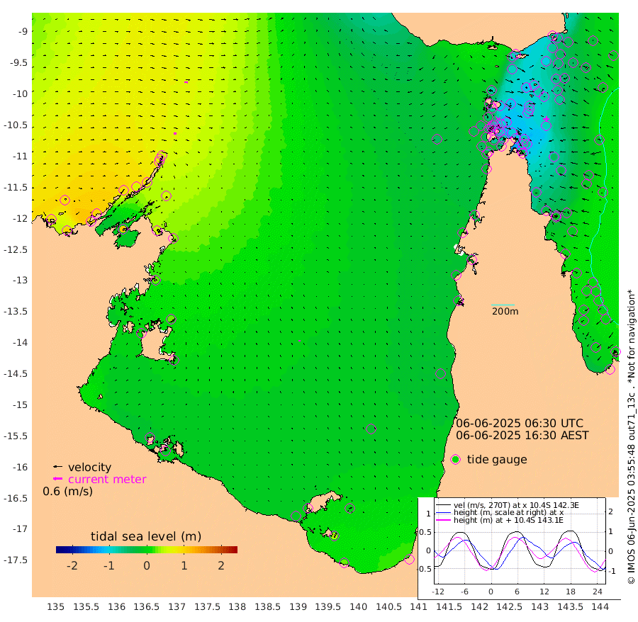 18cm/s 101T +3cm/s rms + 7cm/s -42T. ARA-GOC87 57m 9cm/s -21T +3cm/s rms + 2cm/s -2T. ARA-GOC87 60m 21cm/s 89T +2cm/s rms + 3cm/s 61T. ARA-GOC87 47m -70cm Daru -64cm Bobo Island -12cm Meer Island Barge -24cm Bramble Cay -52cm Unnamed Cay -55cm Pearce Cay -46cm Stephens Island -44cm Merrie England Shoals -72cm Mutacomal Reef -38cm Darnley Island Barge -15cm East Cay -56cm Yorke Island Barge -63cm Rennel Island -66cm Aureed Island -81cm Dungeness Reef -94cm Zagai Island -106cm Yam Island -87cm Dauan Island -83cm Saibai Island -85cm Phipi Reef -99cm Warrior Reef - West -76cm Mabuiag Island Barge -68cm Half Way Island -78cm Coconut Island -83cm Dugong Islet -93cm Poll Island -93cm Kirkcaldie Reef -111cm Suarji Island -85cm Sue Islet -54cm Hawkesbury Island -92cm Alert Patches -100cm Twin Island -51cm Badu Island -107cm St Pauls (Moa Island) -75cm Kubin (Moa Island) -90cm Ince Point -84cm Thursday Island -86cm Nardana Patches -70cm Turtle Head -65cm Round Island -51cm Goods Island -43cm Booby Island -51cm White Rocks Area -46cm Carpentaria -93cm Papou Point -50cm Bampfield Head -28cm Crab Island -52cm Red Wallis Island -72cm Packe Island -89cm Harrington Reef -73cm Herald Camp -35cm Sharp Point -59cm Red Island Point -81cm Possession Island -92cm Alpha Rock -93cm Frederick Point -72cm Wyborn Reef Light -78cm Tetley Island -22cm Triangle Reef -68cm Turtle Head Island -24cm Maclennan Cay 5cm Raine Island -47cm Mcsweeny Reef -35cm Collette Reef -10cm Shadwell Reef -35cm Hannibal Island -23cm Round Point -20cm Vrilya Point -25cm Cape Grenville -21cm Hicks Island -29cm Sir Charles Hardy Island -9cm Harvey Island -9cm Kay Reef -3cm Rocky Island 6cm Chapman Island 3cm Ham Reef 0cm Jubilee Reef -7cm Night Island 2cm Unnamed Reef No. 3 -1cm Morris Island -1cm 1st 3 Mile Opening -3cm Creech Reef 4cm Fife Island 7cm Eden Reef 0cm Stanley Island -4cm Normanby River 85cm Yabooma Island 98cm Hutchison River 92cm Elcho Island 84cm North West Crocodile Island 54cm Cape Wessel 90cm Stevens Island 54cm Guluwuru Island 88cm Hopeful Bay 69cm Auster Point 62cm Two Island Bay 96cm Cadell Strait 111cm Mallison Island 55cm Melville Bay (Gove Harbour) 55cm Truant Island 36cm Cape Arnhem 30cm Cape Grey 24cm Hawk Island 13cm Milner Bay (Groote Eylandt) 7cm Cape Beatrice -16cm West Island -17cm Centre Island -6cm Mornington Island -8cm West Wellesley Islands -4cm Bountiful Island 23cm Albert River Mouth 45cm Sweers Island 19cm Karumba -16cm Nassau River Offshore -24cm Christmas Creek -6cm Archer River -19cm Boyd Point -16cm Weipa (Humbug Point) 0cm Pennefather River -30cm Cullen Point