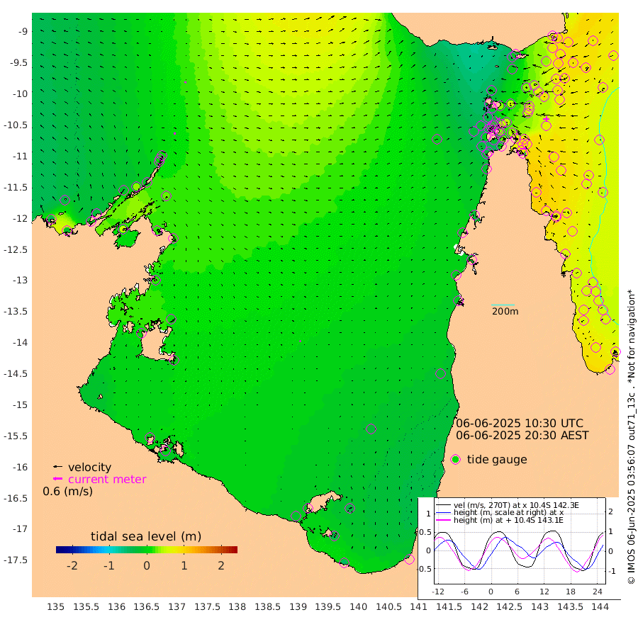 12cm/s 91T +3cm/s rms + 7cm/s -42T. ARA-GOC87 57m 7cm/s 49T +3cm/s rms + 2cm/s -2T. ARA-GOC87 60m 12cm/s 89T +2cm/s rms + 3cm/s 61T. ARA-GOC87 47m 78cm Daru 93cm Bobo Island 62cm Meer Island Barge 77cm Bramble Cay 82cm Unnamed Cay 91cm Pearce Cay 86cm Stephens Island 88cm Merrie England Shoals 80cm Mutacomal Reef 80cm Darnley Island Barge 72cm East Cay 79cm Yorke Island Barge 82cm Rennel Island 88cm Aureed Island 68cm Dungeness Reef 45cm Zagai Island 34cm Yam Island -23cm Dauan Island -9cm Saibai Island -2cm Phipi Reef 33cm Warrior Reef - West -8cm Mabuiag Island Barge 78cm Half Way Island 85cm Coconut Island 75cm Dugong Islet 58cm Poll Island 61cm Kirkcaldie Reef 52cm Suarji Island 54cm Sue Islet -32cm Hawkesbury Island 42cm Alert Patches 45cm Twin Island -22cm Badu Island 32cm St Pauls (Moa Island) -14cm Kubin (Moa Island) 18cm Ince Point 8cm Thursday Island 10cm Nardana Patches -4cm Turtle Head -14cm Round Island -20cm Goods Island -28cm Booby Island -19cm White Rocks Area -2cm Carpentaria 35cm Papou Point -7cm Bampfield Head -24cm Crab Island -26cm Red Wallis Island -16cm Packe Island 94cm Harrington Reef -38cm Herald Camp 6cm Sharp Point 5cm Red Island Point 27cm Possession Island 43cm Alpha Rock 64cm Frederick Point 82cm Wyborn Reef Light 76cm Tetley Island 56cm Triangle Reef 89cm Turtle Head Island 61cm Maclennan Cay 50cm Raine Island 82cm Mcsweeny Reef 78cm Collette Reef 58cm Shadwell Reef 87cm Hannibal Island 81cm Round Point -21cm Vrilya Point 74cm Cape Grenville 68cm Hicks Island 63cm Sir Charles Hardy Island 22cm Harvey Island 71cm Kay Reef 57cm Rocky Island 55cm Chapman Island 53cm Ham Reef 55cm Jubilee Reef 53cm Night Island 58cm Unnamed Reef No. 3 62cm Morris Island 53cm 1st 3 Mile Opening 58cm Creech Reef 60cm Fife Island 67cm Eden Reef 60cm Stanley Island 69cm Normanby River -43cm Yabooma Island -19cm Hutchison River -25cm Elcho Island -34cm North West Crocodile Island 12cm Cape Wessel -16cm Stevens Island 32cm Guluwuru Island -18cm Hopeful Bay 1cm Auster Point -14cm Two Island Bay -12cm Cadell Strait 47cm Mallison Island 19cm Melville Bay (Gove Harbour) 24cm Truant Island 21cm Cape Arnhem 19cm Cape Grey 10cm Hawk Island 1cm Milner Bay (Groote Eylandt) -2cm Cape Beatrice -7cm West Island -1cm Centre Island -14cm Mornington Island -16cm West Wellesley Islands -36cm Bountiful Island -52cm Albert River Mouth -44cm Sweers Island -52cm Karumba -29cm Nassau River Offshore -22cm Christmas Creek -14cm Archer River -12cm Boyd Point -24cm Weipa (Humbug Point) -9cm Pennefather River -28cm Cullen Point