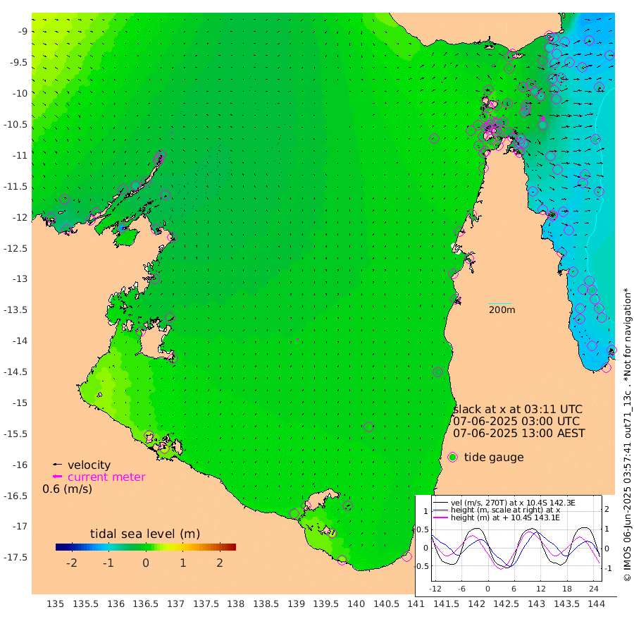 6cm/s -82T +3cm/s rms + 7cm/s -42T. ARA-GOC87 57m 9cm/s -10T +3cm/s rms + 2cm/s -2T. ARA-GOC87 60m 5cm/s -81T +2cm/s rms + 3cm/s 61T. ARA-GOC87 47m -78cm Daru -84cm Bobo Island -82cm Meer Island Barge -96cm Bramble Cay -93cm Unnamed Cay -83cm Pearce Cay -91cm Stephens Island -98cm Merrie England Shoals -85cm Mutacomal Reef -88cm Darnley Island Barge -95cm East Cay -79cm Yorke Island Barge -83cm Rennel Island -77cm Aureed Island -61cm Dungeness Reef -36cm Zagai Island -36cm Yam Island -1cm Dauan Island -12cm Saibai Island -11cm Phipi Reef -36cm Warrior Reef - West -4cm Mabuiag Island Barge -72cm Half Way Island -72cm Coconut Island -68cm Dugong Islet -46cm Poll Island -54cm Kirkcaldie Reef -35cm Suarji Island -47cm Sue Islet -8cm Hawkesbury Island -31cm Alert Patches -32cm Twin Island -12cm Badu Island -18cm St Pauls (Moa Island) -11cm Kubin (Moa Island) -18cm Ince Point -12cm Thursday Island -13cm Nardana Patches -18cm Turtle Head -16cm Round Island -16cm Goods Island -7cm Booby Island -14cm White Rocks Area -6cm Carpentaria -23cm Papou Point -33cm Bampfield Head -2cm Crab Island -6cm Red Wallis Island -15cm Packe Island -74cm Harrington Reef -14cm Herald Camp 2cm Sharp Point -19cm Red Island Point -22cm Possession Island -37cm Alpha Rock -51cm Frederick Point -79cm Wyborn Reef Light -71cm Tetley Island -72cm Triangle Reef -72cm Turtle Head Island -81cm Maclennan Cay -80cm Raine Island -86cm Mcsweeny Reef -89cm Collette Reef -81cm Shadwell Reef -98cm Hannibal Island -99cm Round Point 9cm Vrilya Point -93cm Cape Grenville -90cm Hicks Island -101cm Sir Charles Hardy Island -27cm Harvey Island -100cm Kay Reef -88cm Rocky Island -89cm Chapman Island -85cm Ham Reef -85cm Jubilee Reef -74cm Night Island -87cm Unnamed Reef No. 3 -91cm Morris Island -81cm 1st 3 Mile Opening -85cm Creech Reef -88cm Fife Island -101cm Eden Reef -92cm Stanley Island -99cm Normanby River -22cm Yabooma Island -41cm Hutchison River -25cm Elcho Island -16cm North West Crocodile Island -39cm Cape Wessel -31cm Stevens Island -62cm Guluwuru Island -30cm Hopeful Bay -29cm Auster Point -17cm Two Island Bay -34cm Cadell Strait -132cm Mallison Island -46cm Melville Bay (Gove Harbour) -50cm Truant Island -33cm Cape Arnhem -21cm Cape Grey -4cm Hawk Island 19cm Milner Bay (Groote Eylandt) 19cm Cape Beatrice 40cm West Island 42cm Centre Island 18cm Mornington Island 17cm West Wellesley Islands 9cm Bountiful Island 37cm Albert River Mouth 50cm Sweers Island 38cm Karumba 4cm Nassau River Offshore -16cm Christmas Creek -19cm Archer River -17cm Boyd Point -21cm Weipa (Humbug Point) 5cm Pennefather River 1cm Cullen Point