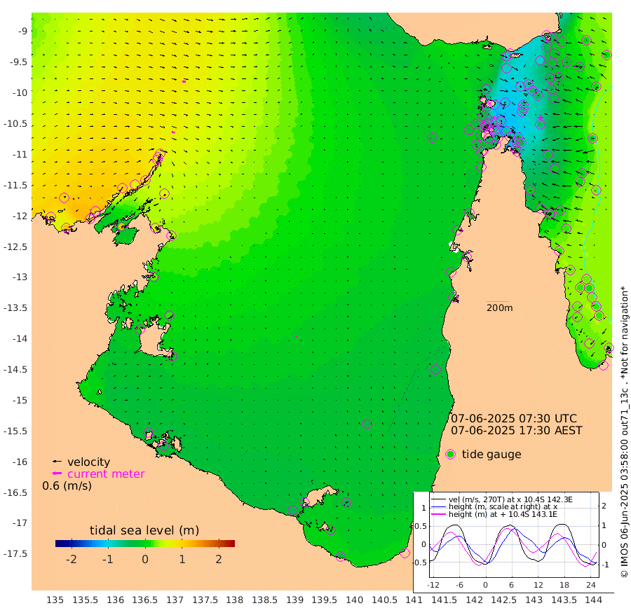 21cm/s 106T +3cm/s rms + 7cm/s -42T. ARA-GOC87 57m 7cm/s -6T +3cm/s rms + 2cm/s -2T. ARA-GOC87 60m 22cm/s 97T +2cm/s rms + 3cm/s 61T. ARA-GOC87 47m -44cm Daru -37cm Bobo Island 12cm Meer Island Barge 4cm Bramble Cay -22cm Unnamed Cay -28cm Pearce Cay -17cm Stephens Island -12cm Merrie England Shoals -43cm Mutacomal Reef -11cm Darnley Island Barge 12cm East Cay -30cm Yorke Island Barge -35cm Rennel Island -43cm Aureed Island -59cm Dungeness Reef -82cm Zagai Island -91cm Yam Island -92cm Dauan Island -86cm Saibai Island -85cm Phipi Reef -90cm Warrior Reef - West -71cm Mabuiag Island Barge -41cm Half Way Island -52cm Coconut Island -57cm Dugong Islet -74cm Poll Island -70cm Kirkcaldie Reef -96cm Suarji Island -68cm Sue Islet -32cm Hawkesbury Island -74cm Alert Patches -82cm Twin Island -38cm Badu Island -93cm St Pauls (Moa Island) -56cm Kubin (Moa Island) -74cm Ince Point -68cm Thursday Island -71cm Nardana Patches -54cm Turtle Head -41cm Round Island -31cm Goods Island -22cm Booby Island -30cm White Rocks Area -23cm Carpentaria -77cm Papou Point -16cm Bampfield Head -10cm Crab Island -33cm Red Wallis Island -52cm Packe Island -59cm Harrington Reef -47cm Herald Camp -34cm Sharp Point -43cm Red Island Point -59cm Possession Island -73cm Alpha Rock -70cm Frederick Point -43cm Wyborn Reef Light -51cm Tetley Island -2cm Triangle Reef -34cm Turtle Head Island 0cm Maclennan Cay 26cm Raine Island -20cm Mcsweeny Reef -8cm Collette Reef 13cm Shadwell Reef -5cm Hannibal Island 7cm Round Point -3cm Vrilya Point 4cm Cape Grenville 6cm Hicks Island -2cm Sir Charles Hardy Island 0cm Harvey Island 20cm Kay Reef 20cm Rocky Island 26cm Chapman Island 25cm Ham Reef 22cm Jubilee Reef 14cm Night Island 24cm Unnamed Reef No. 3 24cm Morris Island 22cm 1st 3 Mile Opening 20cm Creech Reef 26cm Fife Island 33cm Eden Reef 26cm Stanley Island 24cm Normanby River 97cm Yabooma Island 114cm Hutchison River 104cm Elcho Island 93cm North West Crocodile Island 65cm Cape Wessel 101cm Stevens Island 66cm Guluwuru Island 98cm Hopeful Bay 81cm Auster Point 75cm Two Island Bay 105cm Cadell Strait 119cm Mallison Island 64cm Melville Bay (Gove Harbour) 66cm Truant Island 41cm Cape Arnhem 29cm Cape Grey 20cm Hawk Island 1cm Milner Bay (Groote Eylandt) -7cm Cape Beatrice -37cm West Island -37cm Centre Island -33cm Mornington Island -38cm West Wellesley Islands -40cm Bountiful Island -25cm Albert River Mouth -5cm Sweers Island -24cm Karumba -37cm Nassau River Offshore -34cm Christmas Creek -4cm Archer River -11cm Boyd Point -9cm Weipa (Humbug Point) 10cm Pennefather River -17cm Cullen Point