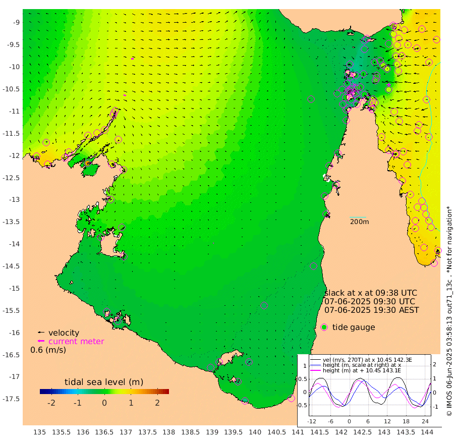 22cm/s 103T +3cm/s rms + 7cm/s -42T. ARA-GOC87 57m 4cm/s 54T +3cm/s rms + 2cm/s -2T. ARA-GOC87 60m 22cm/s 95T +2cm/s rms + 3cm/s 61T. ARA-GOC87 47m 51cm Daru 65cm Bobo Island 67cm Meer Island Barge 78cm Bramble Cay 68cm Unnamed Cay 69cm Pearce Cay 71cm Stephens Island 79cm Merrie England Shoals 57cm Mutacomal Reef 69cm Darnley Island Barge 76cm East Cay 57cm Yorke Island Barge 58cm Rennel Island 55cm Aureed Island 31cm Dungeness Reef -1cm Zagai Island -12cm Yam Island -57cm Dauan Island -43cm Saibai Island -36cm Phipi Reef -12cm Warrior Reef - West -37cm Mabuiag Island Barge 50cm Half Way Island 50cm Coconut Island 38cm Dugong Islet 15cm Poll Island 19cm Kirkcaldie Reef -7cm Suarji Island 15cm Sue Islet -27cm Hawkesbury Island 0cm Alert Patches -2cm Twin Island -26cm Badu Island -20cm St Pauls (Moa Island) -31cm Kubin (Moa Island) -19cm Ince Point -24cm Thursday Island -24cm Nardana Patches -23cm Turtle Head -21cm Round Island -23cm Goods Island -27cm Booby Island -24cm White Rocks Area -17cm Carpentaria -9cm Papou Point -5cm Bampfield Head -20cm Crab Island -30cm Red Wallis Island -28cm Packe Island 50cm Harrington Reef -41cm Herald Camp -12cm Sharp Point -12cm Red Island Point -4cm Possession Island 4cm Alpha Rock 22cm Frederick Point 57cm Wyborn Reef Light 47cm Tetley Island 55cm Triangle Reef 62cm Turtle Head Island 58cm Maclennan Cay 64cm Raine Island 66cm Mcsweeny Reef 70cm Collette Reef 65cm Shadwell Reef 80cm Hannibal Island 84cm Round Point -17cm Vrilya Point 74cm Cape Grenville 70cm Hicks Island 64cm Sir Charles Hardy Island 21cm Harvey Island 81cm Kay Reef 68cm Rocky Island 71cm Chapman Island 67cm Ham Reef 67cm Jubilee Reef 59cm Night Island 70cm Unnamed Reef No. 3 73cm Morris Island 62cm 1st 3 Mile Opening 67cm Creech Reef 72cm Fife Island 84cm Eden Reef 74cm Stanley Island 81cm Normanby River 41cm Yabooma Island 71cm Hutchison River 56cm Elcho Island 43cm North West Crocodile Island 59cm Cape Wessel 64cm Stevens Island 76cm Guluwuru Island 60cm Hopeful Bay 59cm Auster Point 45cm Two Island Bay 70cm Cadell Strait 144cm Mallison Island 64cm Melville Bay (Gove Harbour) 69cm Truant Island 46cm Cape Arnhem 31cm Cape Grey 20cm Hawk Island -8cm Milner Bay (Groote Eylandt) -14cm Cape Beatrice -43cm West Island -39cm Centre Island -35cm Mornington Island -41cm West Wellesley Islands -52cm Bountiful Island -61cm Albert River Mouth -47cm Sweers Island -57cm Karumba -39cm Nassau River Offshore -28cm Christmas Creek -5cm Archer River -10cm Boyd Point -15cm Weipa (Humbug Point) 0cm Pennefather River -26cm Cullen Point