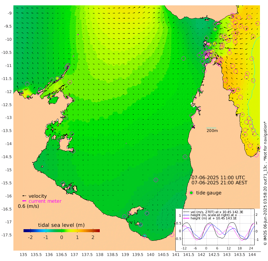 15cm/s 103T +3cm/s rms + 7cm/s -42T. ARA-GOC87 57m 6cm/s 102T +3cm/s rms + 2cm/s -2T. ARA-GOC87 60m 14cm/s 98T +2cm/s rms + 3cm/s 61T. ARA-GOC87 47m 94cm Daru 108cm Bobo Island 71cm Meer Island Barge 90cm Bramble Cay 97cm Unnamed Cay 106cm Pearce Cay 98cm Stephens Island 103cm Merrie England Shoals 98cm Mutacomal Reef 92cm Darnley Island Barge 82cm East Cay 93cm Yorke Island Barge 96cm Rennel Island 101cm Aureed Island 84cm Dungeness Reef 63cm Zagai Island 53cm Yam Island 1cm Dauan Island 14cm Saibai Island 24cm Phipi Reef 54cm Warrior Reef - West 14cm Mabuiag Island Barge 91cm Half Way Island 102cm Coconut Island 88cm Dugong Islet 75cm Poll Island 77cm Kirkcaldie Reef 70cm Suarji Island 71cm Sue Islet 0cm Hawkesbury Island 63cm Alert Patches 65cm Twin Island 7cm Badu Island 51cm St Pauls (Moa Island) 11cm Kubin (Moa Island) 39cm Ince Point 29cm Thursday Island 31cm Nardana Patches 20cm Turtle Head 13cm Round Island 5cm Goods Island -5cm Booby Island 4cm White Rocks Area 11cm Carpentaria 52cm Papou Point 21cm Bampfield Head -5cm Crab Island -3cm Red Wallis Island 10cm Packe Island 108cm Harrington Reef -9cm Herald Camp 11cm Sharp Point 26cm Red Island Point 48cm Possession Island 61cm Alpha Rock 82cm Frederick Point 101cm Wyborn Reef Light 96cm Tetley Island 68cm Triangle Reef 105cm Turtle Head Island 69cm Maclennan Cay 58cm Raine Island 94cm Mcsweeny Reef 91cm Collette Reef 69cm Shadwell Reef 101cm Hannibal Island 95cm Round Point -5cm Vrilya Point 85cm Cape Grenville 78cm Hicks Island 76cm Sir Charles Hardy Island 25cm Harvey Island 82cm Kay Reef 66cm Rocky Island 66cm Chapman Island 62cm Ham Reef 64cm Jubilee Reef 60cm Night Island 66cm Unnamed Reef No. 3 70cm Morris Island 60cm 1st 3 Mile Opening 66cm Creech Reef 66cm Fife Island 76cm Eden Reef 69cm Stanley Island 77cm Normanby River -30cm Yabooma Island -4cm Hutchison River -15cm Elcho Island -24cm North West Crocodile Island 21cm Cape Wessel -4cm Stevens Island 42cm Guluwuru Island -6cm Hopeful Bay 10cm Auster Point -5cm Two Island Bay 2cm Cadell Strait 74cm Mallison Island 28cm Melville Bay (Gove Harbour) 34cm Truant Island 26cm Cape Arnhem 17cm Cape Grey 8cm Hawk Island -13cm Milner Bay (Groote Eylandt) -16cm Cape Beatrice -30cm West Island -24cm Centre Island -30cm Mornington Island -33cm West Wellesley Islands -52cm Bountiful Island -76cm Albert River Mouth -70cm Sweers Island -71cm Karumba -33cm Nassau River Offshore -17cm Christmas Creek -2cm Archer River 1cm Boyd Point -9cm Weipa (Humbug Point) 2cm Pennefather River -12cm Cullen Point