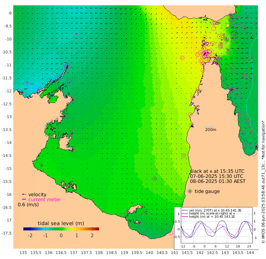 16cm/s -94T +3cm/s rms + 7cm/s -42T. ARA-GOC87 57m 6cm/s 155T +3cm/s rms + 2cm/s -2T. ARA-GOC87 60m 18cm/s -106T +2cm/s rms + 3cm/s 61T. ARA-GOC87 47m -1cm Daru -11cm Bobo Island -21cm Meer Island Barge -32cm Bramble Cay -18cm Unnamed Cay -14cm Pearce Cay -19cm Stephens Island -32cm Merrie England Shoals -12cm Mutacomal Reef -17cm Darnley Island Barge -27cm East Cay -5cm Yorke Island Barge -4cm Rennel Island 0cm Aureed Island 22cm Dungeness Reef 50cm Zagai Island 54cm Yam Island 96cm Dauan Island 86cm Saibai Island 82cm Phipi Reef 56cm Warrior Reef - West 85cm Mabuiag Island Barge -3cm Half Way Island 10cm Coconut Island 12cm Dugong Islet 34cm Poll Island 33cm Kirkcaldie Reef 71cm Suarji Island 37cm Sue Islet 91cm Hawkesbury Island 65cm Alert Patches 59cm Twin Island 96cm Badu Island 73cm St Pauls (Moa Island) 84cm Kubin (Moa Island) 75cm Ince Point 83cm Thursday Island 82cm Nardana Patches 89cm Turtle Head 84cm Round Island 94cm Goods Island 103cm Booby Island 98cm White Rocks Area 92cm Carpentaria 62cm Papou Point 107cm Bampfield Head 82cm Crab Island 94cm Red Wallis Island 80cm Packe Island 9cm Harrington Reef 104cm Herald Camp 21cm Sharp Point 74cm Red Island Point 69cm Possession Island 41cm Alpha Rock 35cm Frederick Point -5cm Wyborn Reef Light 3cm Tetley Island -12cm Triangle Reef 1cm Turtle Head Island -10cm Maclennan Cay -18cm Raine Island -14cm Mcsweeny Reef -20cm Collette Reef -19cm Shadwell Reef -28cm Hannibal Island -36cm Round Point 73cm Vrilya Point -28cm Cape Grenville -21cm Hicks Island -11cm Sir Charles Hardy Island -6cm Harvey Island -33cm Kay Reef -22cm Rocky Island -24cm Chapman Island -20cm Ham Reef -20cm Jubilee Reef -21cm Night Island -23cm Unnamed Reef No. 3 -26cm Morris Island -9cm 1st 3 Mile Opening -18cm Creech Reef -32cm Fife Island -34cm Eden Reef -27cm Stanley Island -36cm Normanby River -78cm Yabooma Island -98cm Hutchison River -91cm Elcho Island -86cm North West Crocodile Island -69cm Cape Wessel -100cm Stevens Island -68cm Guluwuru Island -93cm Hopeful Bay -71cm Auster Point -76cm Two Island Bay -102cm Cadell Strait -158cm Mallison Island -65cm Melville Bay (Gove Harbour) -65cm Truant Island -42cm Cape Arnhem -26cm Cape Grey -34cm Hawk Island -18cm Milner Bay (Groote Eylandt) -16cm Cape Beatrice 4cm West Island 5cm Centre Island -7cm Mornington Island 3cm West Wellesley Islands 4cm Bountiful Island -26cm Albert River Mouth -41cm Sweers Island -24cm Karumba 7cm Nassau River Offshore 28cm Christmas Creek 36cm Archer River 53cm Boyd Point 57cm Weipa (Humbug Point) 40cm Pennefather River 71cm Cullen Point