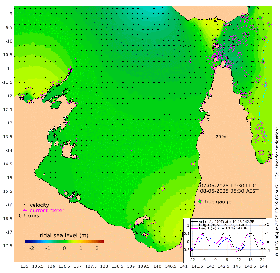 10cm/s -76T +3cm/s rms + 7cm/s -42T. ARA-GOC87 57m 10cm/s -145T +3cm/s rms + 2cm/s -2T. ARA-GOC87 60m 10cm/s -82T +2cm/s rms + 3cm/s 61T. ARA-GOC87 47m -10cm Daru -18cm Bobo Island 17cm Meer Island Barge 14cm Bramble Cay 3cm Unnamed Cay -16cm Pearce Cay 0cm Stephens Island 5cm Merrie England Shoals -7cm Mutacomal Reef 2cm Darnley Island Barge 20cm East Cay -9cm Yorke Island Barge -8cm Rennel Island -20cm Aureed Island -19cm Dungeness Reef -29cm Zagai Island -18cm Yam Island -7cm Dauan Island -9cm Saibai Island -12cm Phipi Reef -19cm Warrior Reef - West -16cm Mabuiag Island Barge -13cm Half Way Island -26cm Coconut Island -16cm Dugong Islet -29cm Poll Island -20cm Kirkcaldie Reef -39cm Suarji Island -25cm Sue Islet 5cm Hawkesbury Island -34cm Alert Patches -35cm Twin Island 1cm Badu Island -37cm St Pauls (Moa Island) -5cm Kubin (Moa Island) -25cm Ince Point -22cm Thursday Island -22cm Nardana Patches -6cm Turtle Head -2cm Round Island 6cm Goods Island 5cm Booby Island 4cm White Rocks Area -17cm Carpentaria -32cm Papou Point 1cm Bampfield Head 2cm Crab Island 2cm Red Wallis Island 0cm Packe Island -29cm Harrington Reef 16cm Herald Camp -13cm Sharp Point -8cm Red Island Point -30cm Possession Island -26cm Alpha Rock -31cm Frederick Point -17cm Wyborn Reef Light -21cm Tetley Island 7cm Triangle Reef -29cm Turtle Head Island 16cm Maclennan Cay 27cm Raine Island -3cm Mcsweeny Reef 4cm Collette Reef 18cm Shadwell Reef 5cm Hannibal Island 13cm Round Point -8cm Vrilya Point 15cm Cape Grenville 18cm Hicks Island 30cm Sir Charles Hardy Island 4cm Harvey Island 26cm Kay Reef 28cm Rocky Island 28cm Chapman Island 28cm Ham Reef 27cm Jubilee Reef 19cm Night Island 26cm Unnamed Reef No. 3 27cm Morris Island 26cm 1st 3 Mile Opening 24cm Creech Reef 27cm Fife Island 32cm Eden Reef 29cm Stanley Island 30cm Normanby River 60cm Yabooma Island 57cm Hutchison River 49cm Elcho Island 50cm North West Crocodile Island 18cm Cape Wessel 41cm Stevens Island 21cm Guluwuru Island 42cm Hopeful Bay 21cm Auster Point 25cm Two Island Bay 40cm Cadell Strait 57cm Mallison Island 20cm Melville Bay (Gove Harbour) 15cm Truant Island 7cm Cape Arnhem 6cm Cape Grey -1cm Hawk Island -4cm Milner Bay (Groote Eylandt) 1cm Cape Beatrice -7cm West Island -16cm Centre Island 23cm Mornington Island 25cm West Wellesley Islands 59cm Bountiful Island 59cm Albert River Mouth 40cm Sweers Island 55cm Karumba 41cm Nassau River Offshore 41cm Christmas Creek 25cm Archer River 15cm Boyd Point 30cm Weipa (Humbug Point) -8cm Pennefather River 5cm Cullen Point