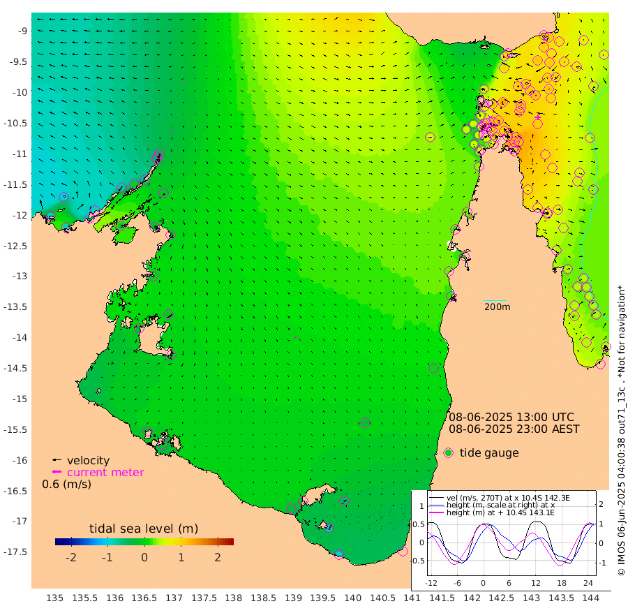 6cm/s 129T +3cm/s rms + 7cm/s -42T. ARA-GOC87 57m 12cm/s 144T +3cm/s rms + 2cm/s -2T. ARA-GOC87 60m 3cm/s 170T +2cm/s rms + 3cm/s 61T. ARA-GOC87 47m 102cm Daru 108cm Bobo Island 50cm Meer Island Barge 66cm Bramble Cay 89cm Unnamed Cay 102cm Pearce Cay 85cm Stephens Island 85cm Merrie England Shoals 102cm Mutacomal Reef 80cm Darnley Island Barge 57cm East Cay 94cm Yorke Island Barge 98cm Rennel Island 108cm Aureed Island 107cm Dungeness Reef 111cm Zagai Island 105cm Yam Island 85cm Dauan Island 90cm Saibai Island 96cm Phipi Reef 110cm Warrior Reef - West 82cm Mabuiag Island Barge 94cm Half Way Island 117cm Coconut Island 104cm Dugong Islet 111cm Poll Island 108cm Kirkcaldie Reef 129cm Suarji Island 108cm Sue Islet 60cm Hawkesbury Island 116cm Alert Patches 117cm Twin Island 68cm Badu Island 115cm St Pauls (Moa Island) 70cm Kubin (Moa Island) 98cm Ince Point 90cm Thursday Island 92cm Nardana Patches 79cm Turtle Head 69cm Round Island 60cm Goods Island 51cm Booby Island 57cm White Rocks Area 57cm Carpentaria 103cm Papou Point 76cm Bampfield Head 37cm Crab Island 53cm Red Wallis Island 67cm Packe Island 121cm Harrington Reef 57cm Herald Camp 32cm Sharp Point 75cm Red Island Point 99cm Possession Island 103cm Alpha Rock 117cm Frederick Point 109cm Wyborn Reef Light 111cm Tetley Island 60cm Triangle Reef 111cm Turtle Head Island 56cm Maclennan Cay 34cm Raine Island 87cm Mcsweeny Reef 79cm Collette Reef 51cm Shadwell Reef 82cm Hannibal Island 70cm Round Point 32cm Vrilya Point 63cm Cape Grenville 58cm Hicks Island 62cm Sir Charles Hardy Island 19cm Harvey Island 52cm Kay Reef 42cm Rocky Island 42cm Chapman Island 38cm Ham Reef 40cm Jubilee Reef 39cm Night Island 41cm Unnamed Reef No. 3 42cm Morris Island 39cm 1st 3 Mile Opening 43cm Creech Reef 37cm Fife Island 40cm Eden Reef 39cm Stanley Island 43cm Normanby River -92cm Yabooma Island -83cm Hutchison River -87cm Elcho Island -90cm North West Crocodile Island -27cm Cape Wessel -73cm Stevens Island -7cm Guluwuru Island -70cm Hopeful Bay -42cm Auster Point -57cm Two Island Bay -68cm Cadell Strait -1cm Mallison Island -17cm Melville Bay (Gove Harbour) -11cm Truant Island -4cm Cape Arnhem -7cm Cape Grey -11cm Hawk Island -27cm Milner Bay (Groote Eylandt) -28cm Cape Beatrice -28cm West Island -20cm Centre Island -29cm Mornington Island -28cm West Wellesley Islands -48cm Bountiful Island -91cm Albert River Mouth -93cm Sweers Island -82cm Karumba -20cm Nassau River Offshore 6cm Christmas Creek 18cm Archer River 30cm Boyd Point 21cm Weipa (Humbug Point) 22cm Pennefather River 30cm Cullen Point