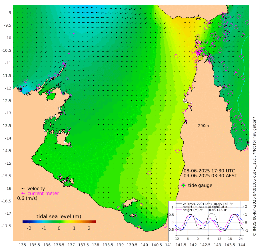 25cm/s -88T +3cm/s rms + 7cm/s -42T. ARA-GOC87 57m 10cm/s -167T +3cm/s rms + 2cm/s -2T. ARA-GOC87 60m 26cm/s -98T +2cm/s rms + 3cm/s 61T. ARA-GOC87 47m -35cm Daru -47cm Bobo Island -21cm Meer Island Barge -41cm Bramble Cay -42cm Unnamed Cay -45cm Pearce Cay -39cm Stephens Island -52cm Merrie England Shoals -46cm Mutacomal Reef -34cm Darnley Island Barge -26cm East Cay -33cm Yorke Island Barge -34cm Rennel Island -37cm Aureed Island -18cm Dungeness Reef -2cm Zagai Island 8cm Yam Island 59cm Dauan Island 47cm Saibai Island 46cm Phipi Reef 10cm Warrior Reef - West 47cm Mabuiag Island Barge -35cm Half Way Island -35cm Coconut Island -26cm Dugong Islet -15cm Poll Island -9cm Kirkcaldie Reef 11cm Suarji Island -8cm Sue Islet 75cm Hawkesbury Island 13cm Alert Patches 5cm Twin Island 72cm Badu Island 17cm St Pauls (Moa Island) 56cm Kubin (Moa Island) 30cm Ince Point 42cm Thursday Island 40cm Nardana Patches 59cm Turtle Head 60cm Round Island 77cm Goods Island 89cm Booby Island 79cm White Rocks Area 67cm Carpentaria 13cm Papou Point 83cm Bampfield Head 74cm Crab Island 77cm Red Wallis Island 57cm Packe Island -38cm Harrington Reef 93cm Herald Camp 4cm Sharp Point 51cm Red Island Point 27cm Possession Island -8cm Alpha Rock -15cm Frederick Point -47cm Wyborn Reef Light -42cm Tetley Island -21cm Triangle Reef -42cm Turtle Head Island -14cm Maclennan Cay -9cm Raine Island -37cm Mcsweeny Reef -36cm Collette Reef -20cm Shadwell Reef -45cm Hannibal Island -45cm Round Point 64cm Vrilya Point -34cm Cape Grenville -23cm Hicks Island -12cm Sir Charles Hardy Island -8cm Harvey Island -30cm Kay Reef -14cm Rocky Island -15cm Chapman Island -11cm Ham Reef -13cm Jubilee Reef -17cm Night Island -15cm Unnamed Reef No. 3 -18cm Morris Island -3cm 1st 3 Mile Opening -12cm Creech Reef -20cm Fife Island -23cm Eden Reef -18cm Stanley Island -26cm Normanby River -46cm Yabooma Island -70cm Hutchison River -64cm Elcho Island -56cm North West Crocodile Island -68cm Cape Wessel -80cm Stevens Island -70cm Guluwuru Island -69cm Hopeful Bay -63cm Auster Point -64cm Two Island Bay -79cm Cadell Strait -145cm Mallison Island -62cm Melville Bay (Gove Harbour) -68cm Truant Island -46cm Cape Arnhem -25cm Cape Grey -32cm Hawk Island -16cm Milner Bay (Groote Eylandt) -9cm Cape Beatrice 10cm West Island 6cm Centre Island 20cm Mornington Island 27cm West Wellesley Islands 50cm Bountiful Island 27cm Albert River Mouth 11cm Sweers Island 33cm Karumba 42cm Nassau River Offshore 54cm Christmas Creek 52cm Archer River 57cm Boyd Point 70cm Weipa (Humbug Point) 38cm Pennefather River 68cm Cullen Point