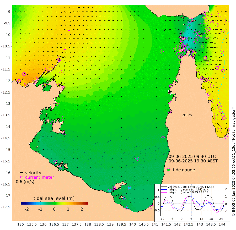 28cm/s 115T +3cm/s rms + 7cm/s -42T. ARA-GOC87 57m 3cm/s 60T +3cm/s rms + 2cm/s -2T. ARA-GOC87 60m 27cm/s 108T +2cm/s rms + 3cm/s 61T. ARA-GOC87 47m 30cm Daru 37cm Bobo Island 61cm Meer Island Barge 67cm Bramble Cay 55cm Unnamed Cay 44cm Pearce Cay 55cm Stephens Island 65cm Merrie England Shoals 37cm Mutacomal Reef 53cm Darnley Island Barge 66cm East Cay 37cm Yorke Island Barge 39cm Rennel Island 26cm Aureed Island 13cm Dungeness Reef -23cm Zagai Island -27cm Yam Island -60cm Dauan Island -57cm Saibai Island -44cm Phipi Reef -35cm Warrior Reef - West -34cm Mabuiag Island Barge 34cm Half Way Island 24cm Coconut Island 20cm Dugong Islet -4cm Poll Island 3cm Kirkcaldie Reef -30cm Suarji Island -5cm Sue Islet 23cm Hawkesbury Island -9cm Alert Patches -14cm Twin Island 9cm Badu Island -30cm St Pauls (Moa Island) 3cm Kubin (Moa Island) -16cm Ince Point -12cm Thursday Island -14cm Nardana Patches 0cm Turtle Head 21cm Round Island 21cm Goods Island 26cm Booby Island 21cm White Rocks Area 19cm Carpentaria -16cm Papou Point 54cm Bampfield Head 25cm Crab Island 14cm Red Wallis Island 8cm Packe Island 24cm Harrington Reef 15cm Herald Camp -20cm Sharp Point 2cm Red Island Point 5cm Possession Island -9cm Alpha Rock 3cm Frederick Point 38cm Wyborn Reef Light 29cm Tetley Island 46cm Triangle Reef 52cm Turtle Head Island 51cm Maclennan Cay 64cm Raine Island 48cm Mcsweeny Reef 55cm Collette Reef 60cm Shadwell Reef 65cm Hannibal Island 73cm Round Point 25cm Vrilya Point 65cm Cape Grenville 63cm Hicks Island 56cm Sir Charles Hardy Island 18cm Harvey Island 74cm Kay Reef 64cm Rocky Island 65cm Chapman Island 62cm Ham Reef 64cm Jubilee Reef 56cm Night Island 63cm Unnamed Reef No. 3 70cm Morris Island 66cm 1st 3 Mile Opening 64cm Creech Reef 63cm Fife Island 82cm Eden Reef 73cm Stanley Island 75cm Normanby River 115cm Yabooma Island 146cm Hutchison River 122cm Elcho Island 107cm North West Crocodile Island 85cm Cape Wessel 120cm Stevens Island 93cm Guluwuru Island 112cm Hopeful Bay 100cm Auster Point 95cm Two Island Bay 122cm Cadell Strait 134cm Mallison Island 82cm Melville Bay (Gove Harbour) 89cm Truant Island 53cm Cape Arnhem 26cm Cape Grey 13cm Hawk Island -24cm Milner Bay (Groote Eylandt) -35cm Cape Beatrice -80cm West Island -75cm Centre Island -78cm Mornington Island -87cm West Wellesley Islands -99cm Bountiful Island -103cm Albert River Mouth -95cm Sweers Island -98cm Karumba -68cm Nassau River Offshore -41cm Christmas Creek 3cm Archer River 6cm Boyd Point 7cm Weipa (Humbug Point) 26cm Pennefather River 11cm Cullen Point
