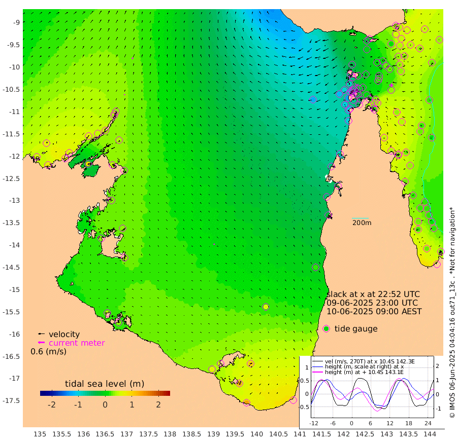 9cm/s 13T +3cm/s rms + 7cm/s -42T. ARA-GOC87 57m 9cm/s -75T +3cm/s rms + 2cm/s -2T. ARA-GOC87 60m 12cm/s 23T +2cm/s rms + 3cm/s 61T. ARA-GOC87 47m 43cm Daru 44cm Bobo Island 24cm Meer Island Barge 47cm Bramble Cay 50cm Unnamed Cay 40cm Pearce Cay 41cm Stephens Island 57cm Merrie England Shoals 55cm Mutacomal Reef 35cm Darnley Island Barge 31cm East Cay 35cm Yorke Island Barge 37cm Rennel Island 33cm Aureed Island 26cm Dungeness Reef 11cm Zagai Island 13cm Yam Island -24cm Dauan Island -17cm Saibai Island -5cm Phipi Reef 13cm Warrior Reef - West -38cm Mabuiag Island Barge 36cm Half Way Island 29cm Coconut Island 32cm Dugong Islet 17cm Poll Island 20cm Kirkcaldie Reef -8cm Suarji Island 13cm Sue Islet -87cm Hawkesbury Island -21cm Alert Patches -12cm Twin Island -73cm Badu Island -19cm St Pauls (Moa Island) -63cm Kubin (Moa Island) -35cm Ince Point -50cm Thursday Island -46cm Nardana Patches -62cm Turtle Head -76cm Round Island -87cm Goods Island -114cm Booby Island -97cm White Rocks Area -123cm Carpentaria -16cm Papou Point -133cm Bampfield Head -98cm Crab Island -101cm Red Wallis Island -69cm Packe Island 31cm Harrington Reef -101cm Herald Camp 0cm Sharp Point -50cm Red Island Point -46cm Possession Island 3cm Alpha Rock 8cm Frederick Point 40cm Wyborn Reef Light 34cm Tetley Island 18cm Triangle Reef 21cm Turtle Head Island 20cm Maclennan Cay 14cm Raine Island 37cm Mcsweeny Reef 38cm Collette Reef 24cm Shadwell Reef 48cm Hannibal Island 44cm Round Point -103cm Vrilya Point 37cm Cape Grenville 29cm Hicks Island 29cm Sir Charles Hardy Island 9cm Harvey Island 36cm Kay Reef 23cm Rocky Island 19cm Chapman Island 15cm Ham Reef 20cm Jubilee Reef 18cm Night Island 17cm Unnamed Reef No. 3 24cm Morris Island 9cm 1st 3 Mile Opening 16cm Creech Reef 21cm Fife Island 29cm Eden Reef 24cm Stanley Island 35cm Normanby River 57cm Yabooma Island 76cm Hutchison River 65cm Elcho Island 69cm North West Crocodile Island 37cm Cape Wessel 68cm Stevens Island 52cm Guluwuru Island 58cm Hopeful Bay 36cm Auster Point 39cm Two Island Bay 71cm Cadell Strait 103cm Mallison Island 46cm Melville Bay (Gove Harbour) 38cm Truant Island 27cm Cape Arnhem 31cm Cape Grey 36cm Hawk Island 37cm Milner Bay (Groote Eylandt) 43cm Cape Beatrice 40cm West Island 33cm Centre Island 75cm Mornington Island 72cm West Wellesley Islands 107cm Bountiful Island 139cm Albert River Mouth 132cm Sweers Island 126cm Karumba 60cm Nassau River Offshore 22cm Christmas Creek -26cm Archer River -53cm Boyd Point -50cm Weipa (Humbug Point) -67cm Pennefather River -89cm Cullen Point