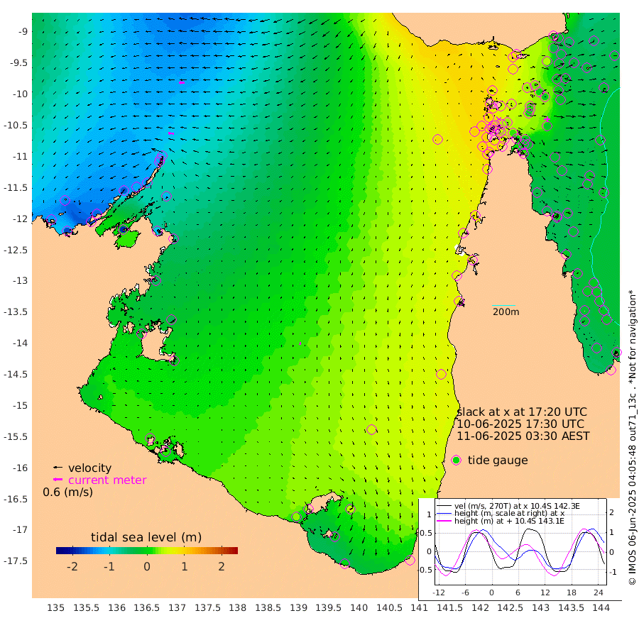 35cm/s -86T +3cm/s rms + 7cm/s -42T. ARA-GOC87 57m 17cm/s 180T +3cm/s rms + 2cm/s -2T. ARA-GOC87 60m 38cm/s -94T +2cm/s rms + 3cm/s 61T. ARA-GOC87 47m -17cm Daru -27cm Bobo Island -20cm Meer Island Barge -38cm Bramble Cay -34cm Unnamed Cay -27cm Pearce Cay -28cm Stephens Island -46cm Merrie England Shoals -31cm Mutacomal Reef -24cm Darnley Island Barge -20cm East Cay -18cm Yorke Island Barge -18cm Rennel Island -13cm Aureed Island 3cm Dungeness Reef 25cm Zagai Island 32cm Yam Island 85cm Dauan Island 77cm Saibai Island 77cm Phipi Reef 42cm Warrior Reef - West 70cm Mabuiag Island Barge -21cm Half Way Island -10cm Coconut Island -8cm Dugong Islet 10cm Poll Island 14cm Kirkcaldie Reef 47cm Suarji Island 17cm Sue Islet 91cm Hawkesbury Island 45cm Alert Patches 37cm Twin Island 86cm Badu Island 48cm St Pauls (Moa Island) 75cm Kubin (Moa Island) 57cm Ince Point 67cm Thursday Island 65cm Nardana Patches 80cm Turtle Head 81cm Round Island 90cm Goods Island 102cm Booby Island 90cm White Rocks Area 87cm Carpentaria 38cm Papou Point 103cm Bampfield Head 86cm Crab Island 95cm Red Wallis Island 81cm Packe Island -12cm Harrington Reef 117cm Herald Camp 16cm Sharp Point 75cm Red Island Point 57cm Possession Island 18cm Alpha Rock 15cm Frederick Point -29cm Wyborn Reef Light -21cm Tetley Island -11cm Triangle Reef -26cm Turtle Head Island -8cm Maclennan Cay -11cm Raine Island -25cm Mcsweeny Reef -26cm Collette Reef -17cm Shadwell Reef -37cm Hannibal Island -38cm Round Point 78cm Vrilya Point -28cm Cape Grenville -19cm Hicks Island -8cm Sir Charles Hardy Island -6cm Harvey Island -29cm Kay Reef -13cm Rocky Island -11cm Chapman Island -9cm Ham Reef -14cm Jubilee Reef -14cm Night Island -11cm Unnamed Reef No. 3 -19cm Morris Island -8cm 1st 3 Mile Opening -11cm Creech Reef -15cm Fife Island -27cm Eden Reef -20cm Stanley Island -28cm Normanby River -135cm Yabooma Island -170cm Hutchison River -151cm Elcho Island -141cm North West Crocodile Island -117cm Cape Wessel -160cm Stevens Island -122cm Guluwuru Island -136cm Hopeful Bay -122cm Auster Point -125cm Two Island Bay -159cm Cadell Strait -183cm Mallison Island -107cm Melville Bay (Gove Harbour) -113cm Truant Island -72cm Cape Arnhem -48cm Cape Grey -43cm Hawk Island -28cm Milner Bay (Groote Eylandt) -16cm Cape Beatrice 16cm West Island 17cm Centre Island 32cm Mornington Island 36cm West Wellesley Islands 50cm Bountiful Island 5cm Albert River Mouth 0cm Sweers Island 27cm Karumba 58cm Nassau River Offshore 75cm Christmas Creek 69cm Archer River 74cm Boyd Point 83cm Weipa (Humbug Point) 52cm Pennefather River 86cm Cullen Point